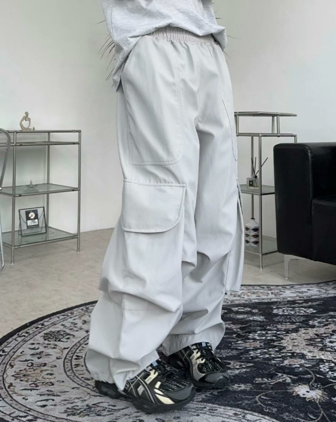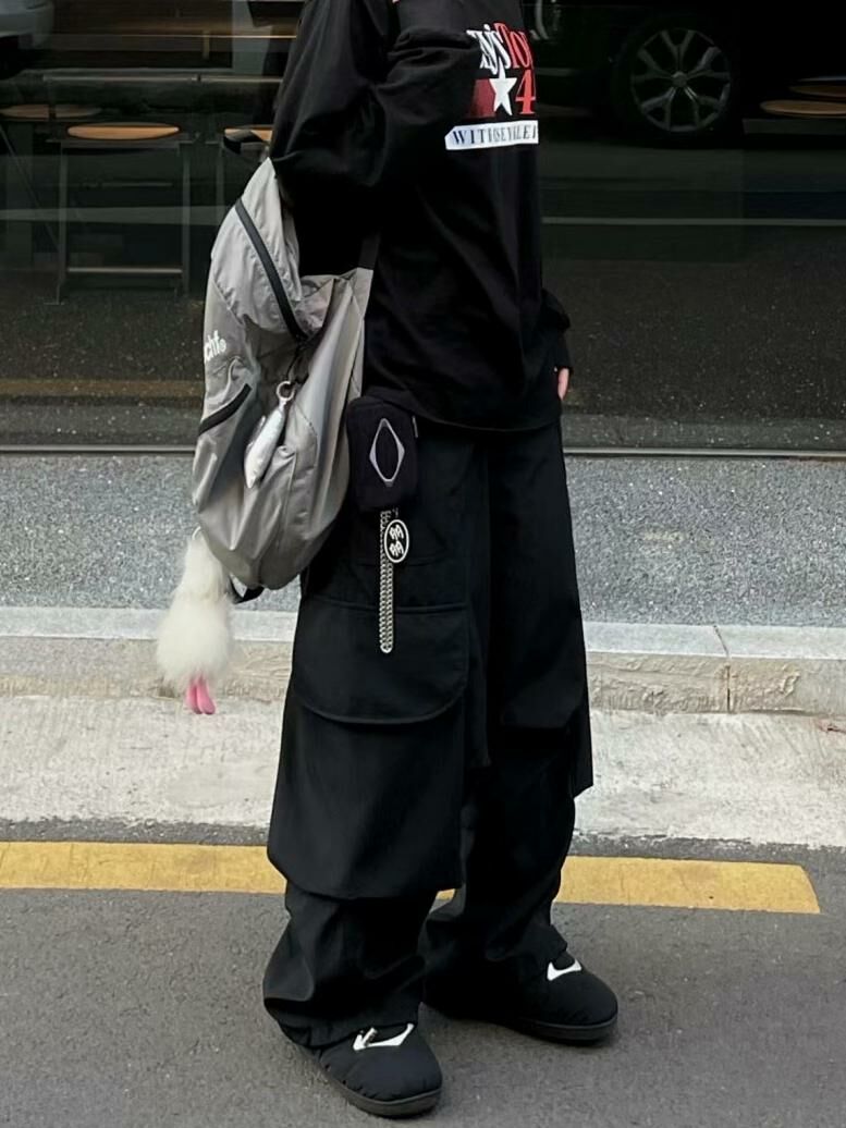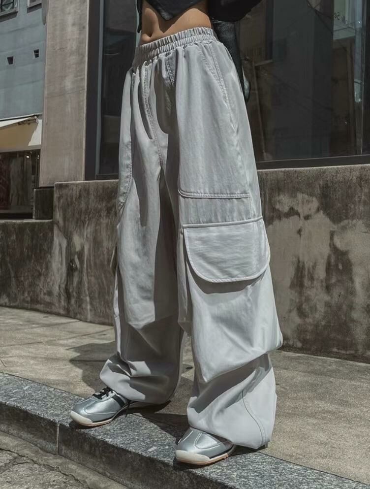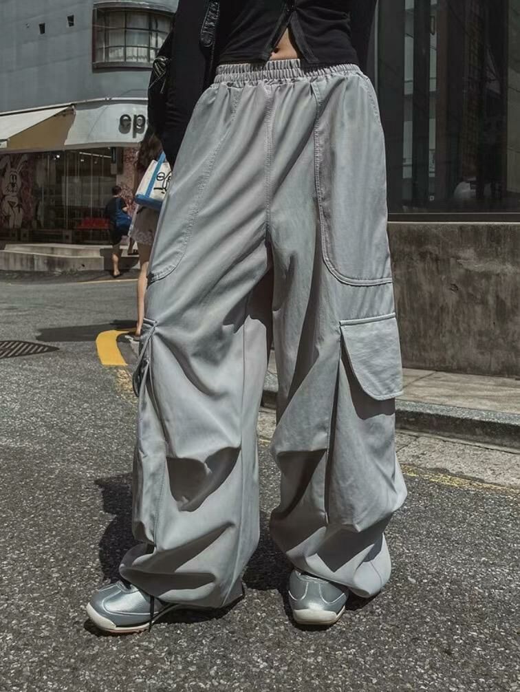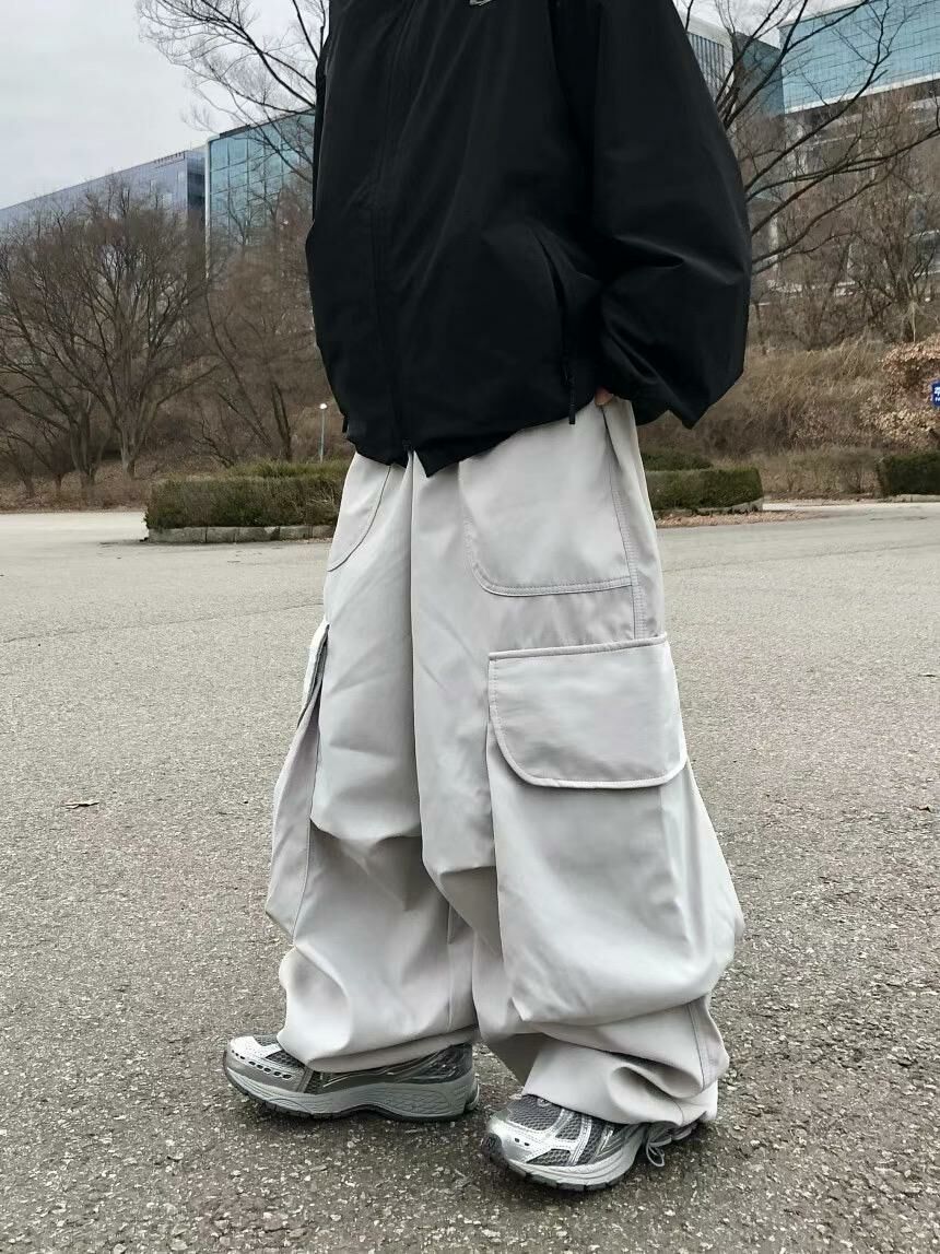 淨色可束腳工裝鬆身褲 P3023