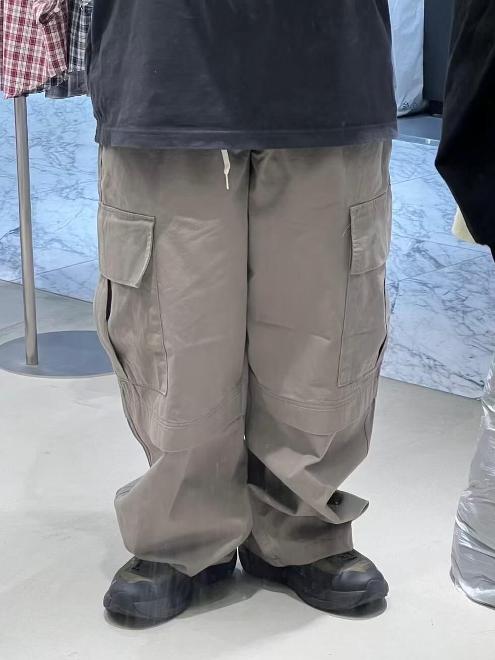 淨色可束腳工裝鬆身褲 P3070