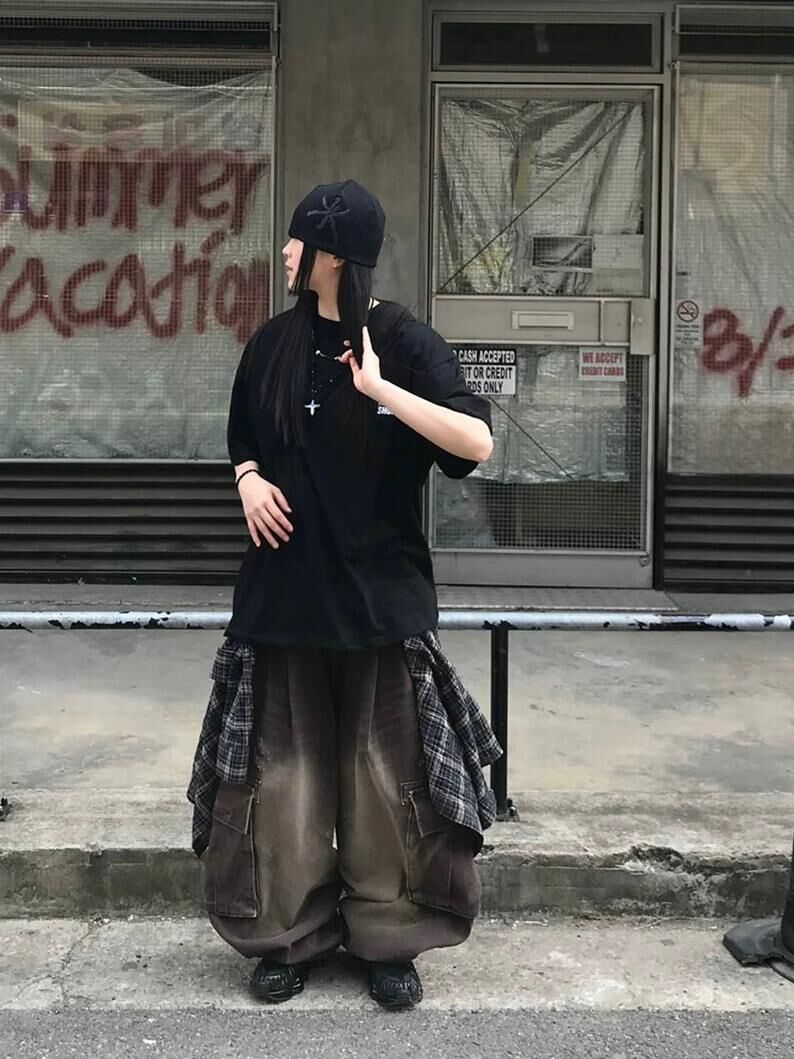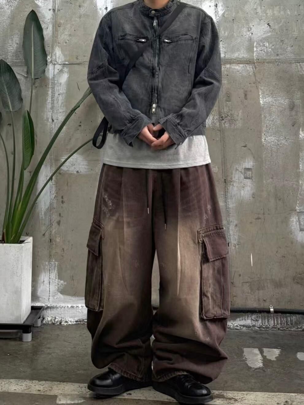 洗水工裝鬆身牛仔褲 P3076