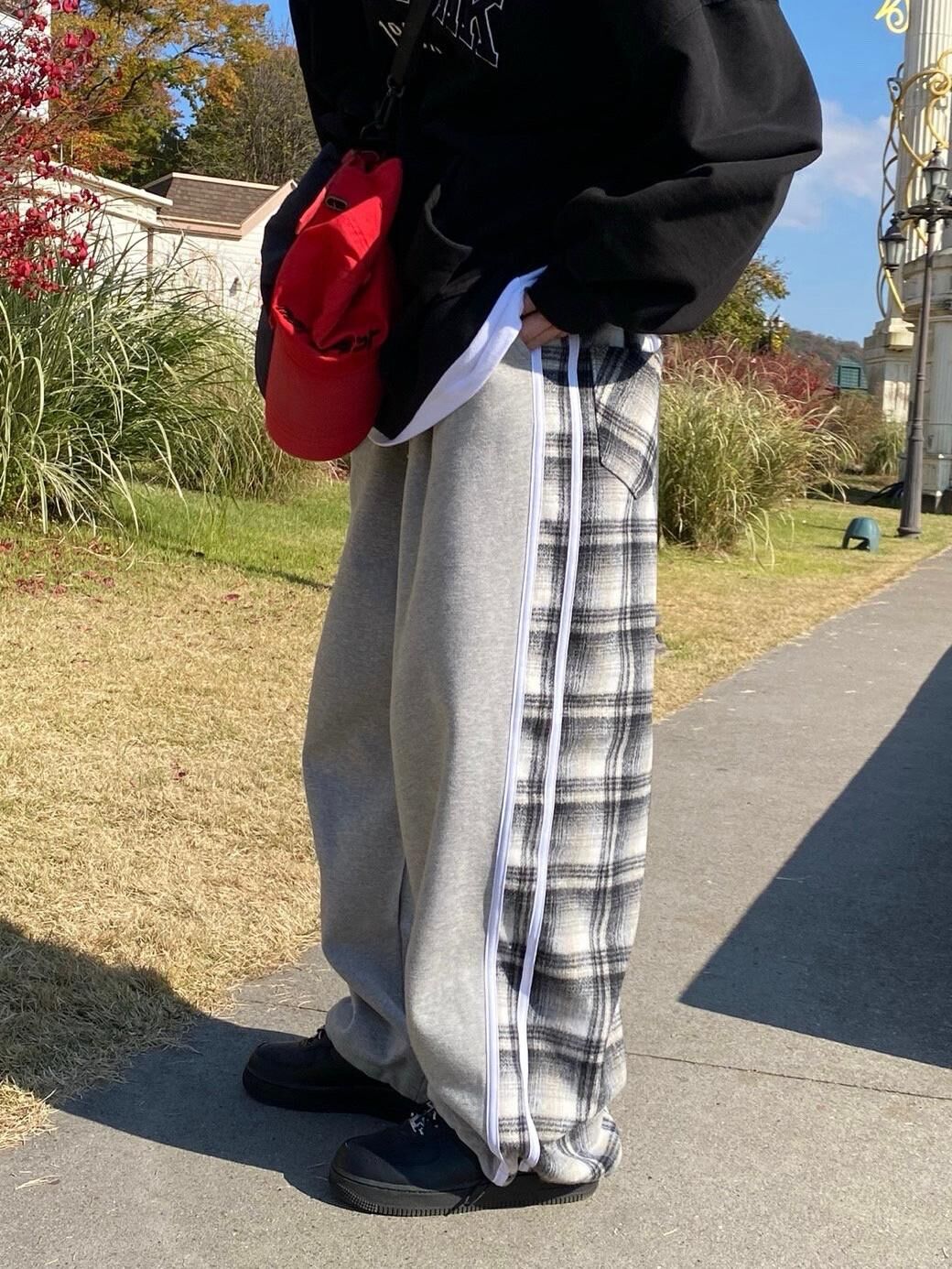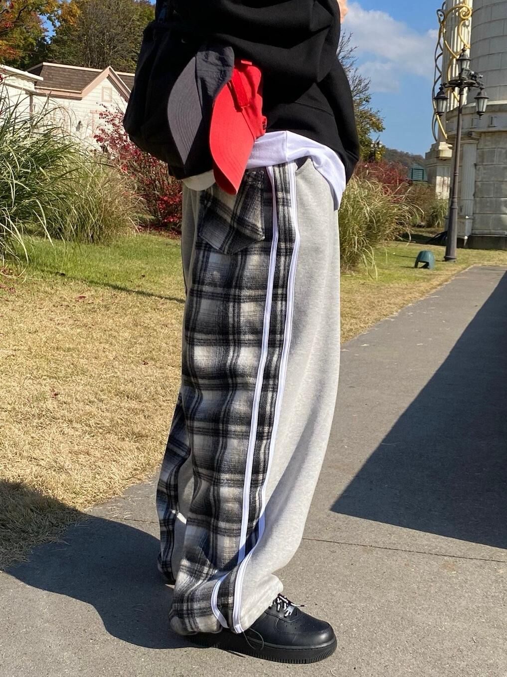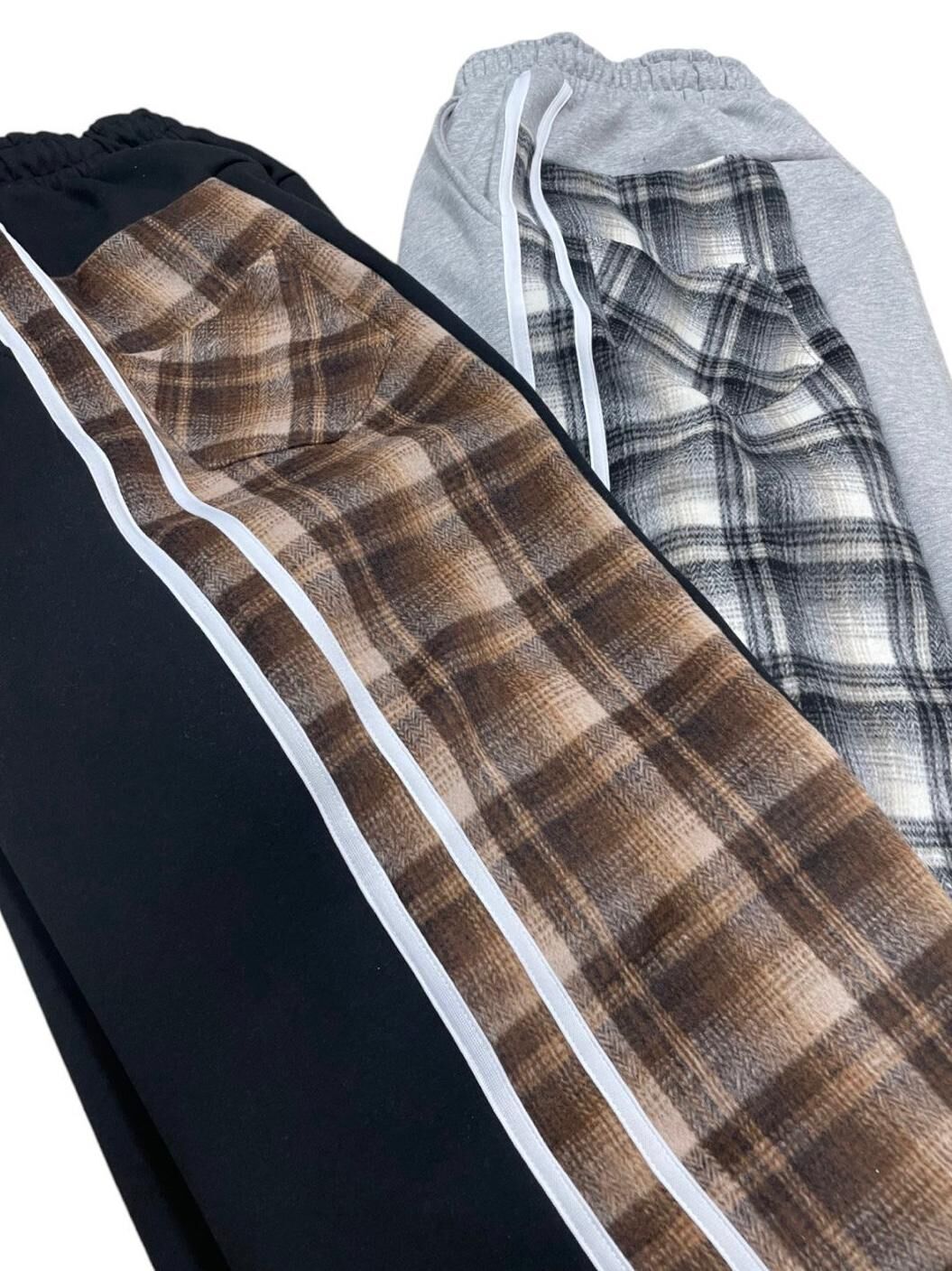 拼格仔可束腳鬆身褲(抓毛底) P3079