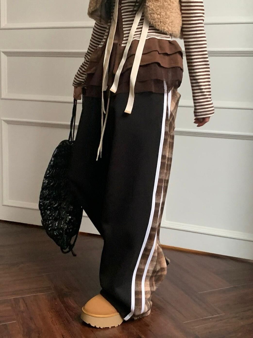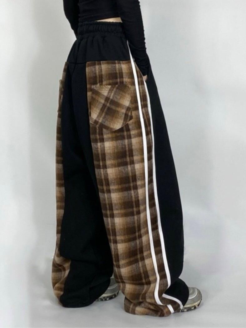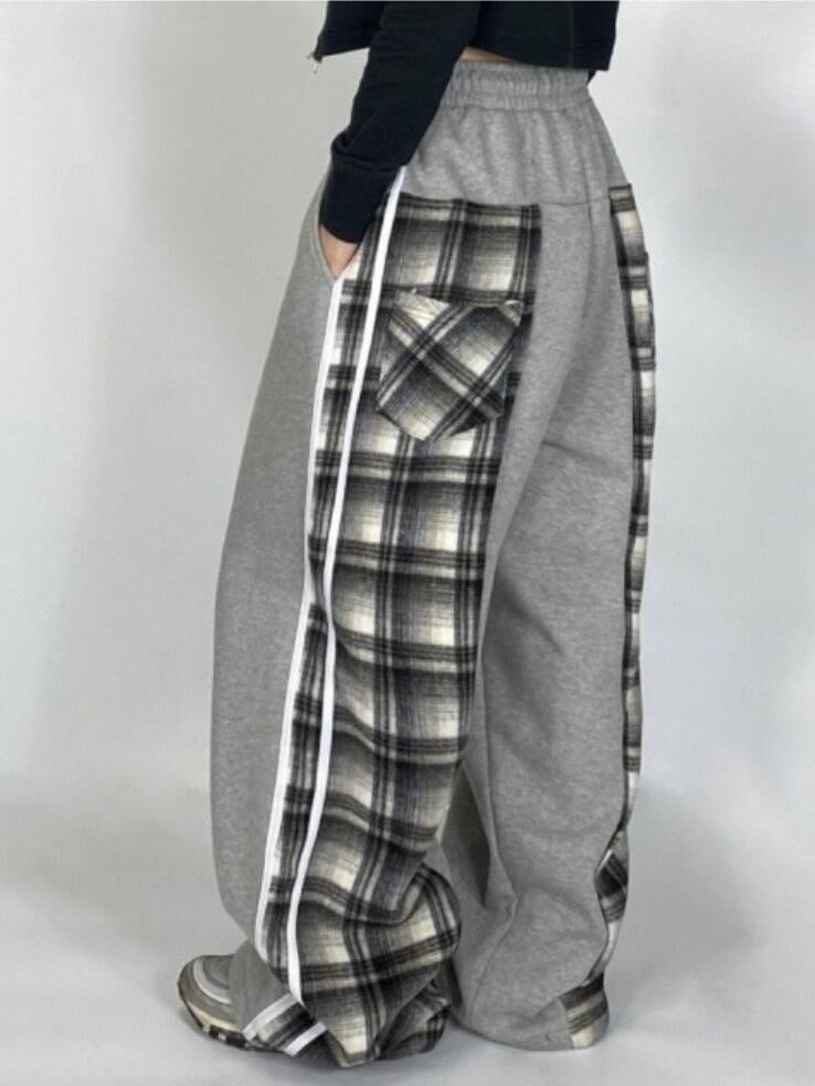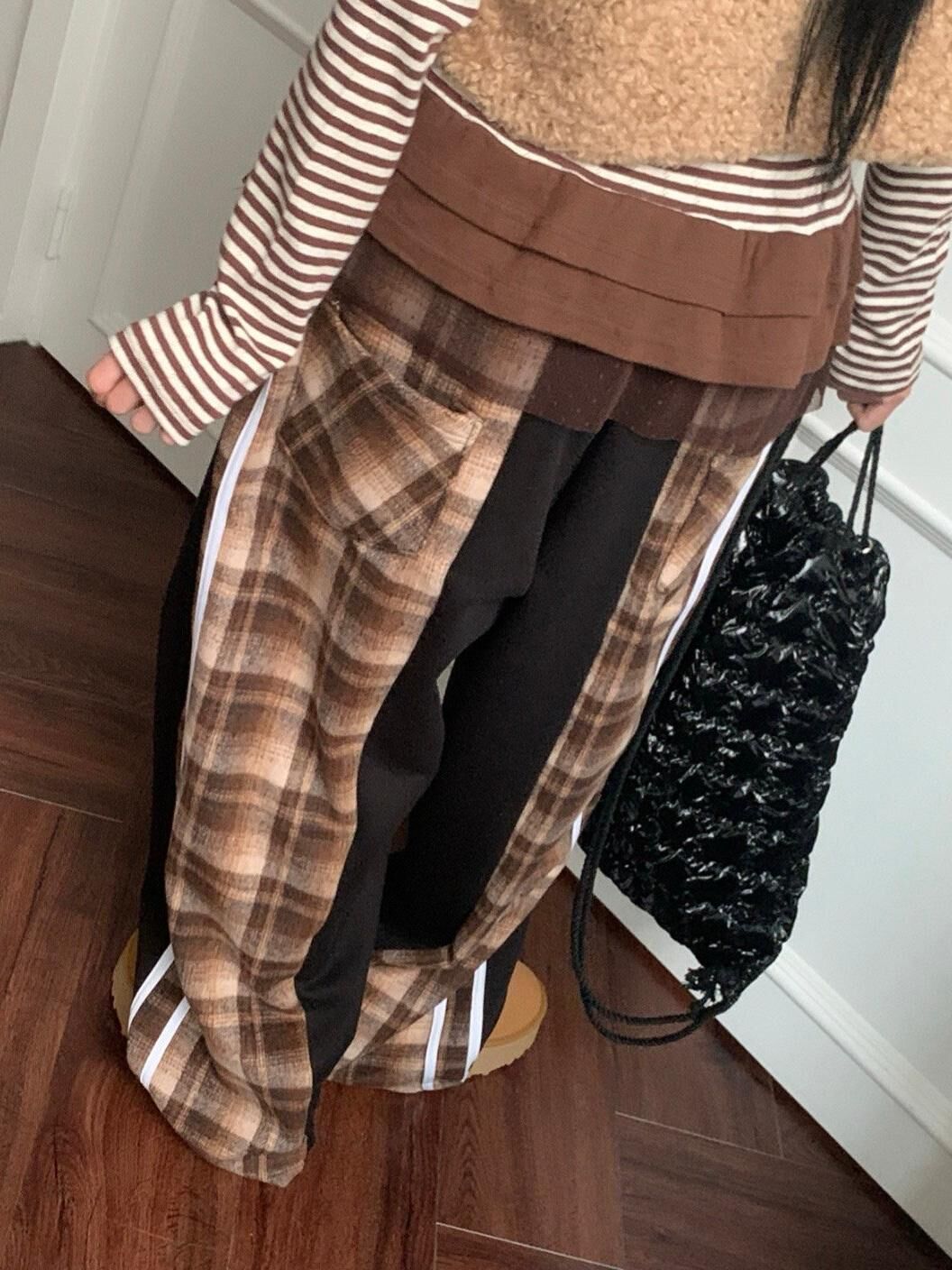 拼格仔可束腳鬆身褲(抓毛底) P3079