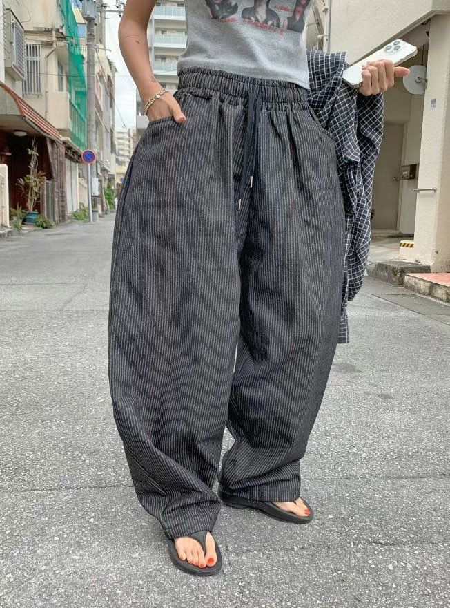 英文字直紋鬆身褲 P3086