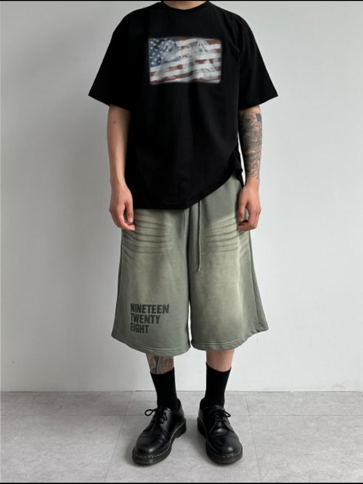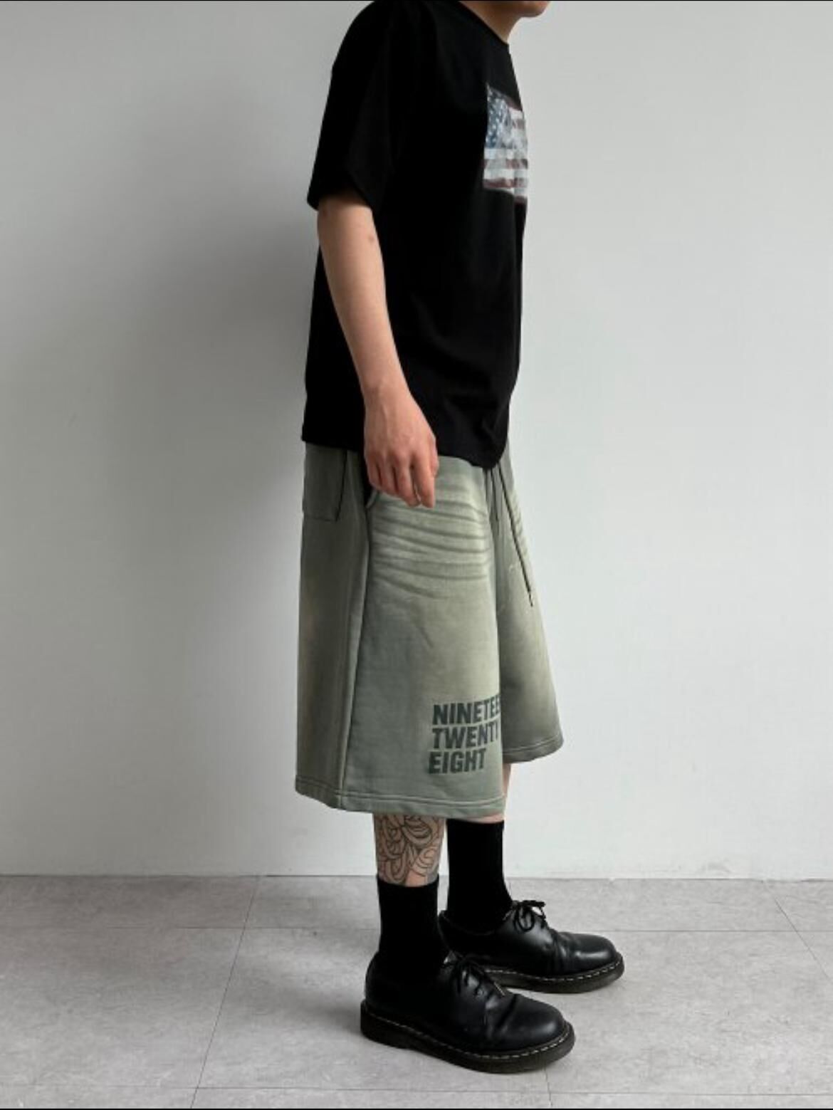 仿洗泣英文字短褲 P3096