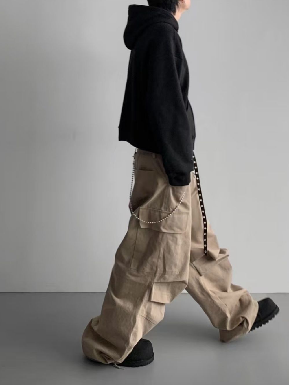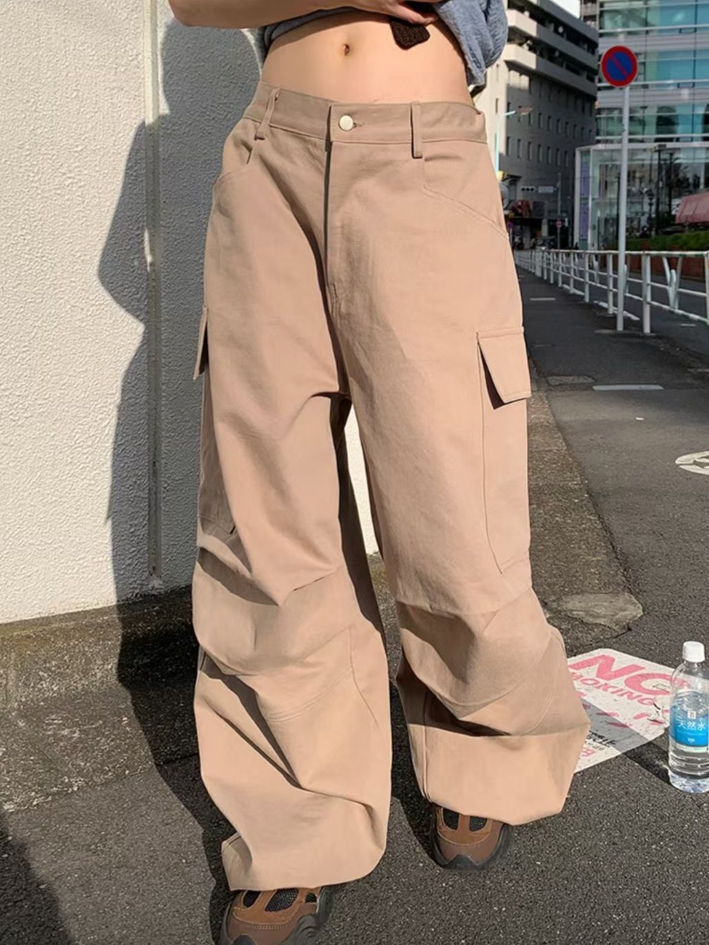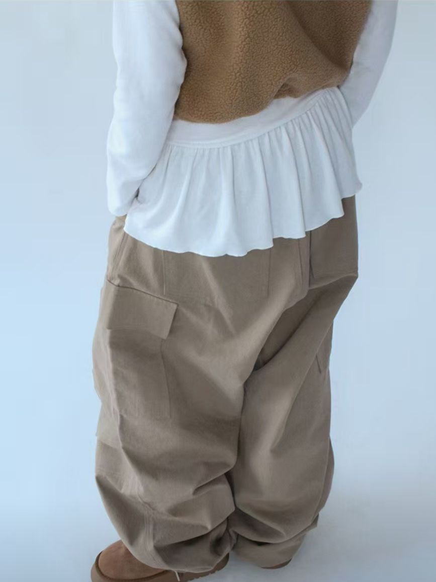 淨色工裝可束腳鬆身褲 P3132