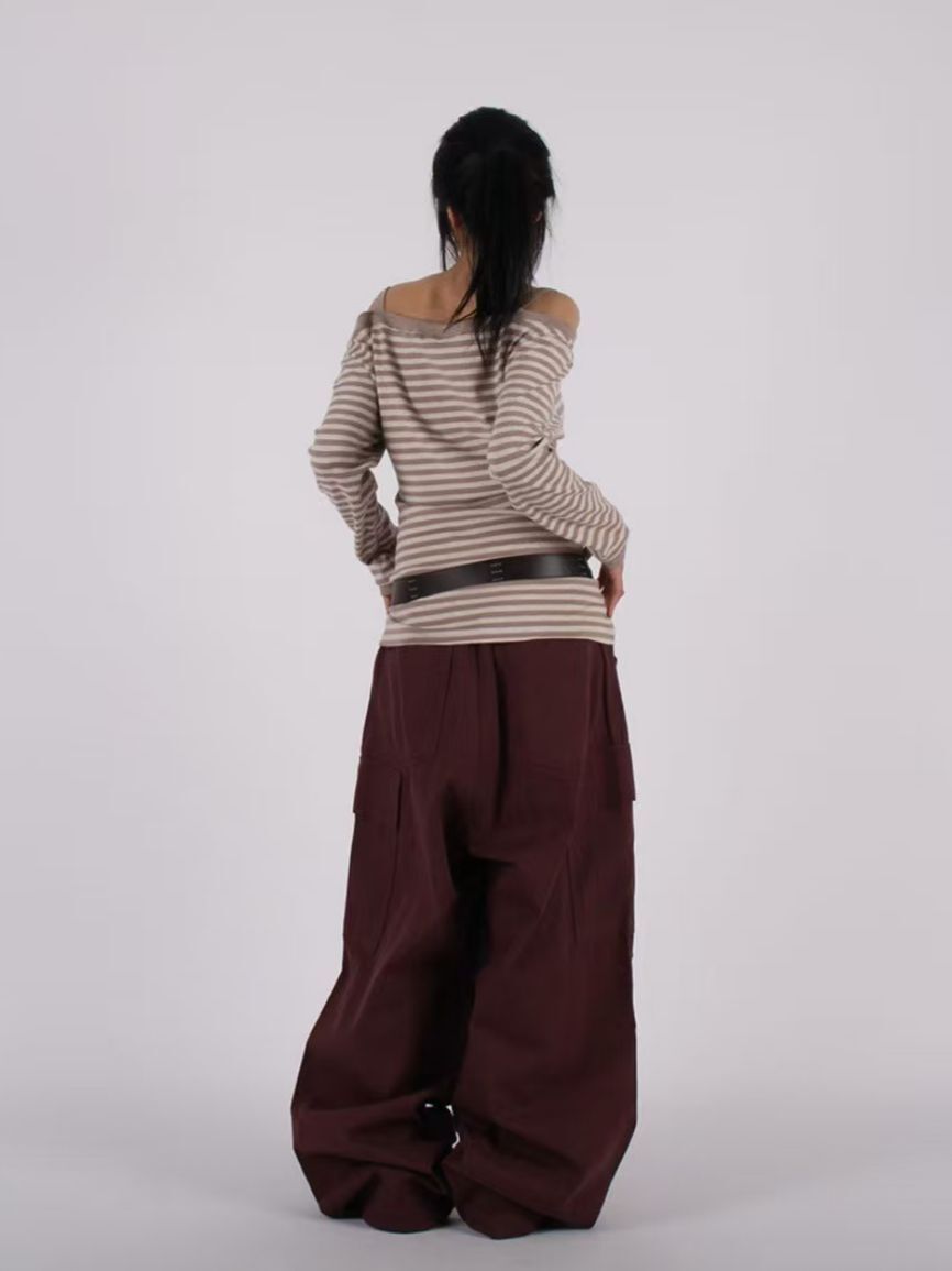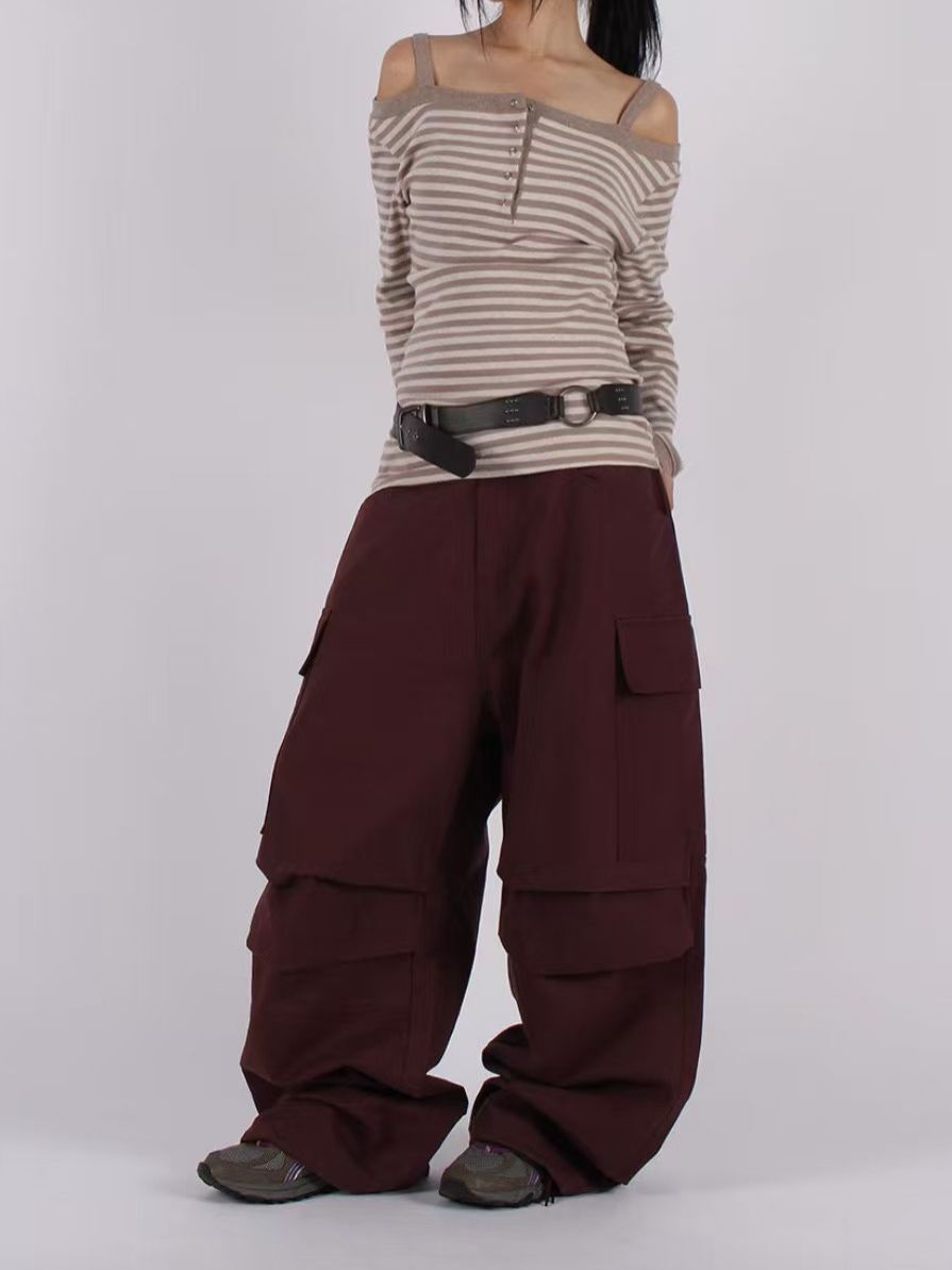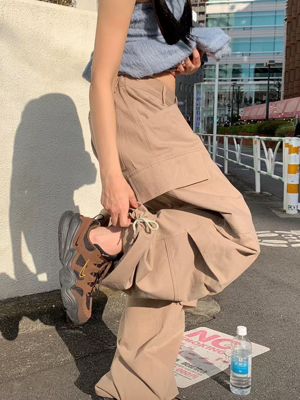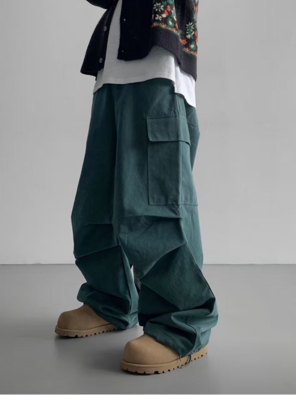 淨色工裝可束腳鬆身褲 P3132