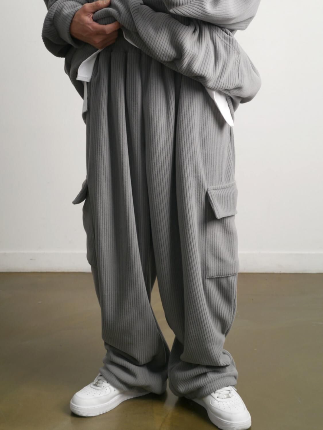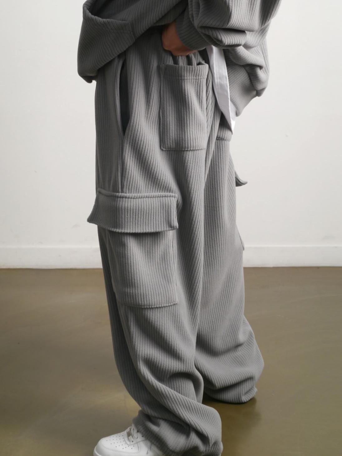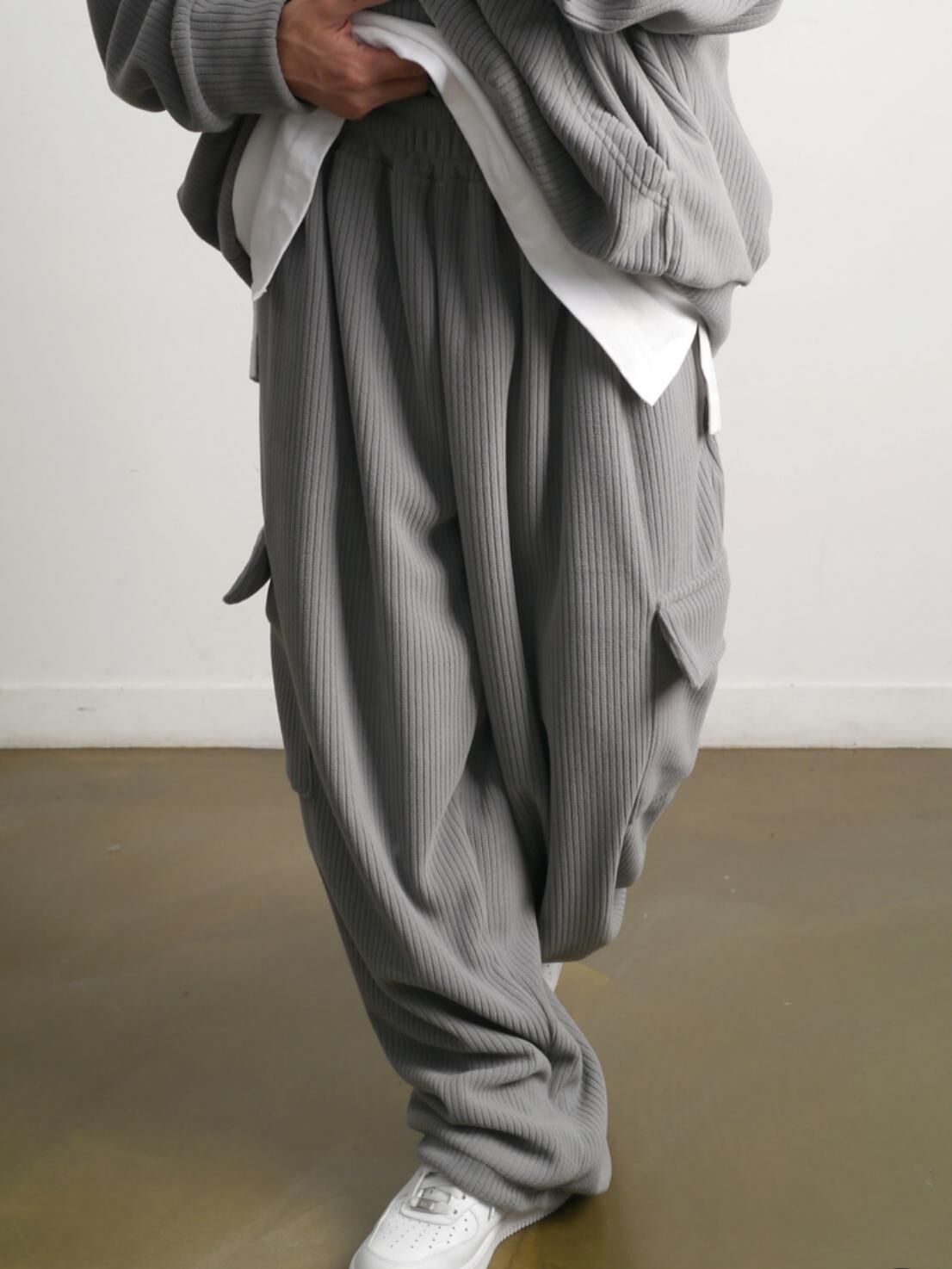 暗直紋可束腳工裝運動褲(抓毛) P3243