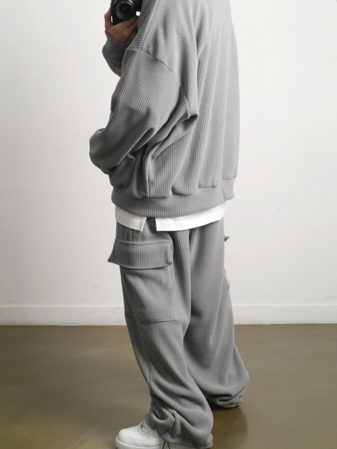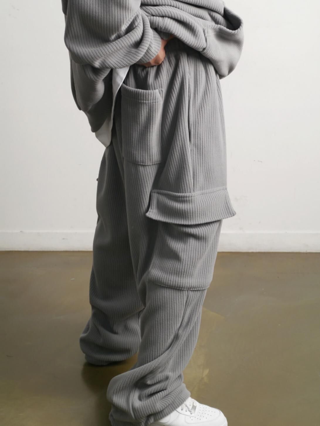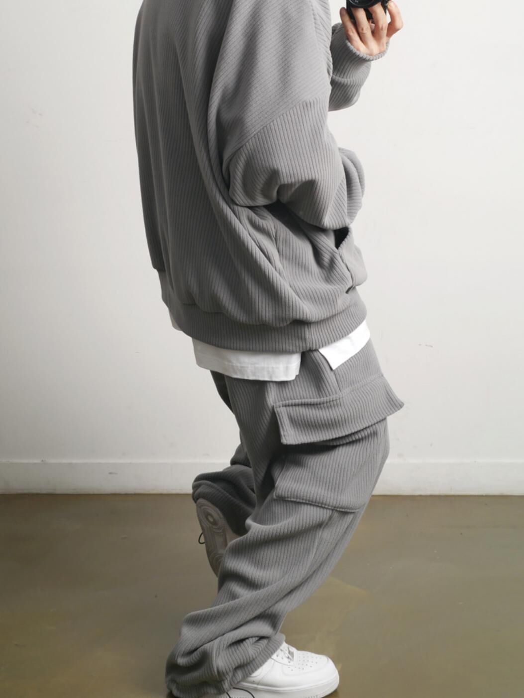暗直紋可束腳工裝運動褲(抓毛) P3243