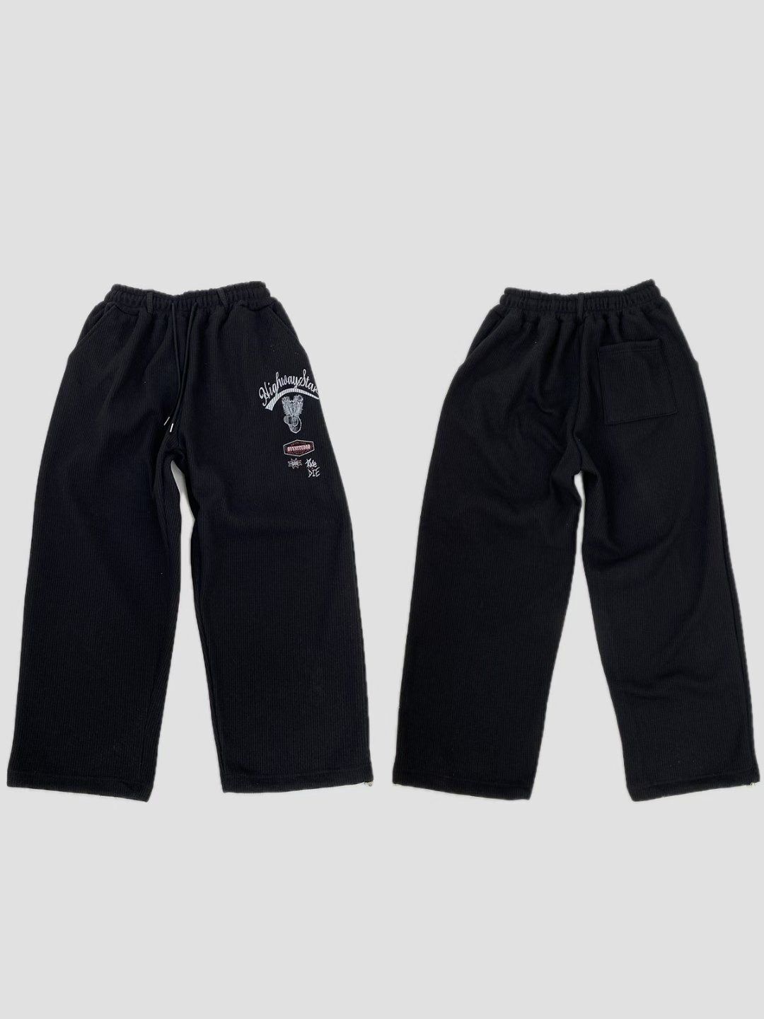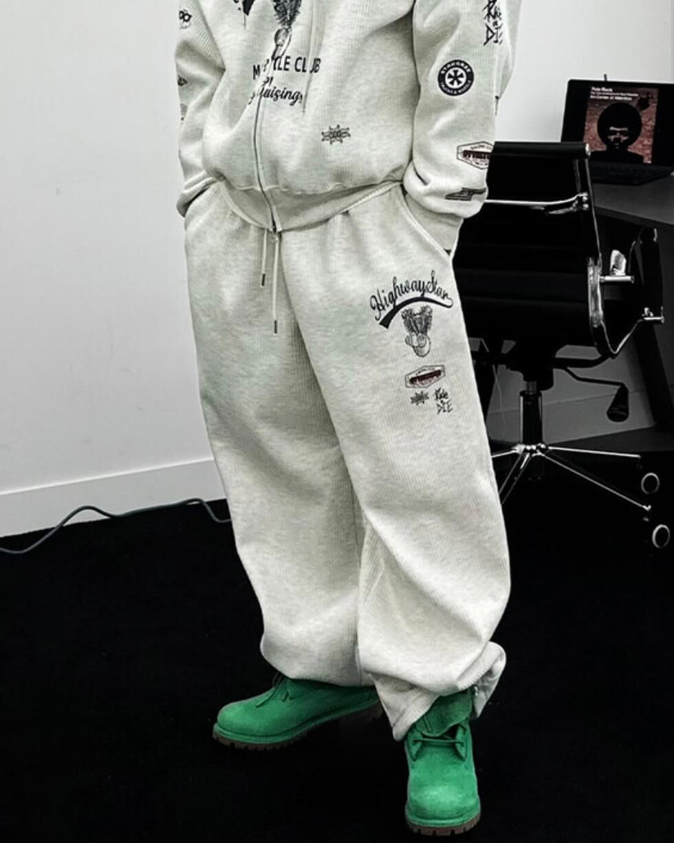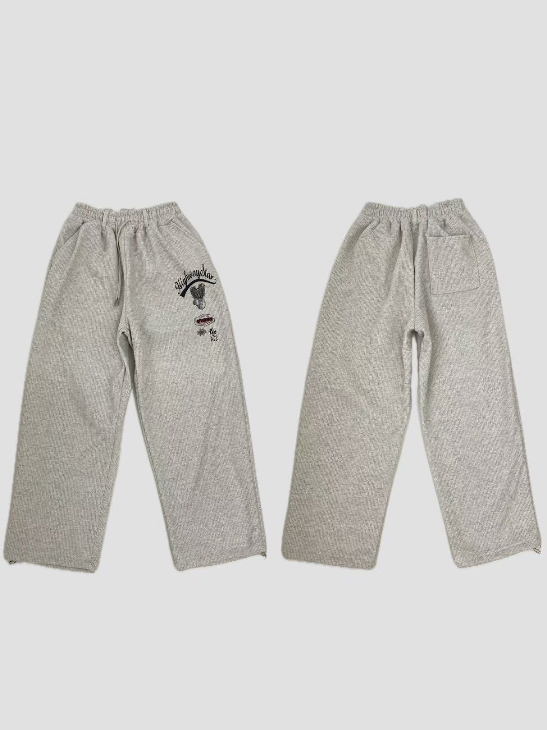 英文字圖案可束腳運動褲(薄抓毛底) P3249
