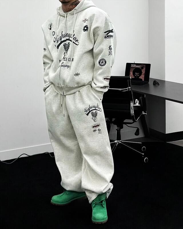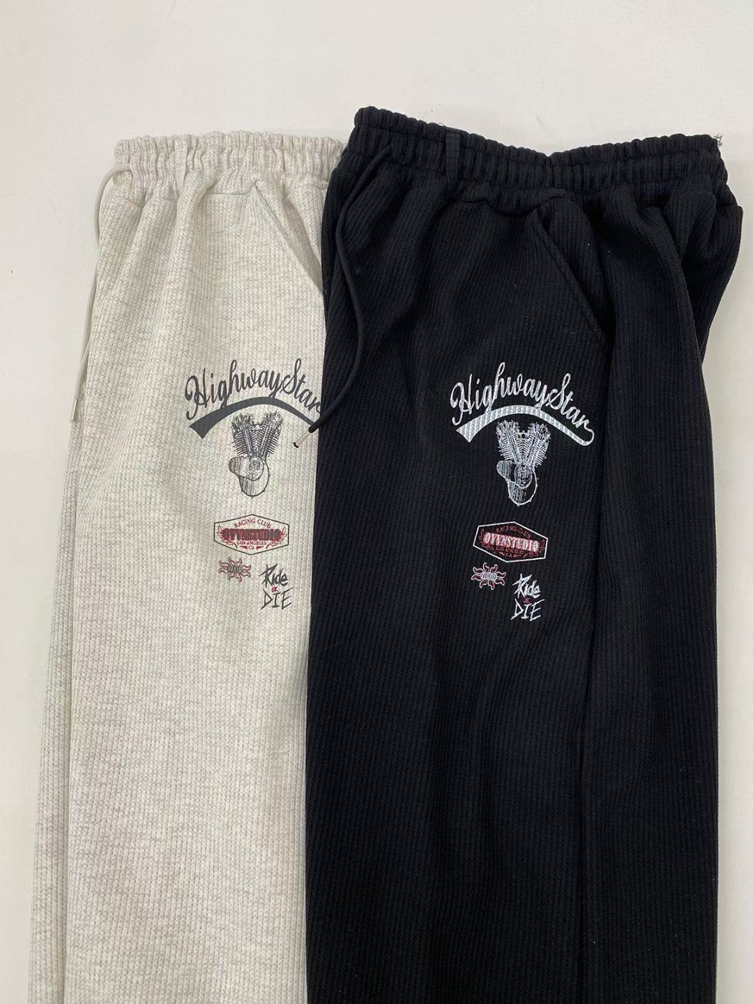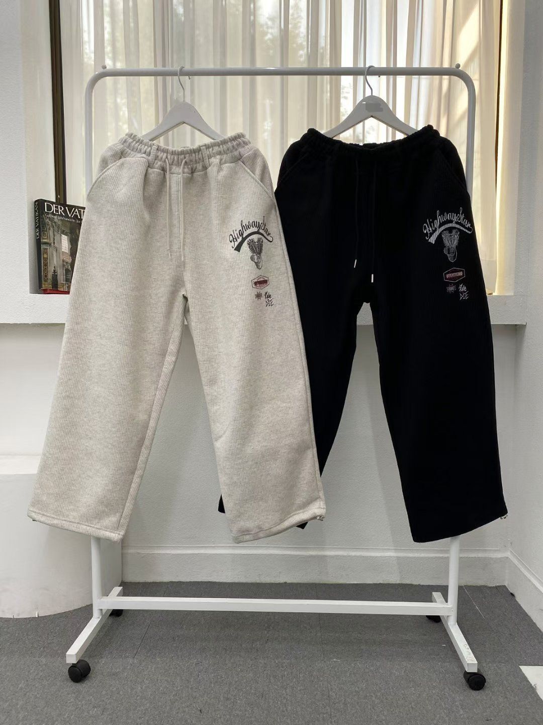 英文字圖案可束腳運動褲(薄抓毛底) P3249
