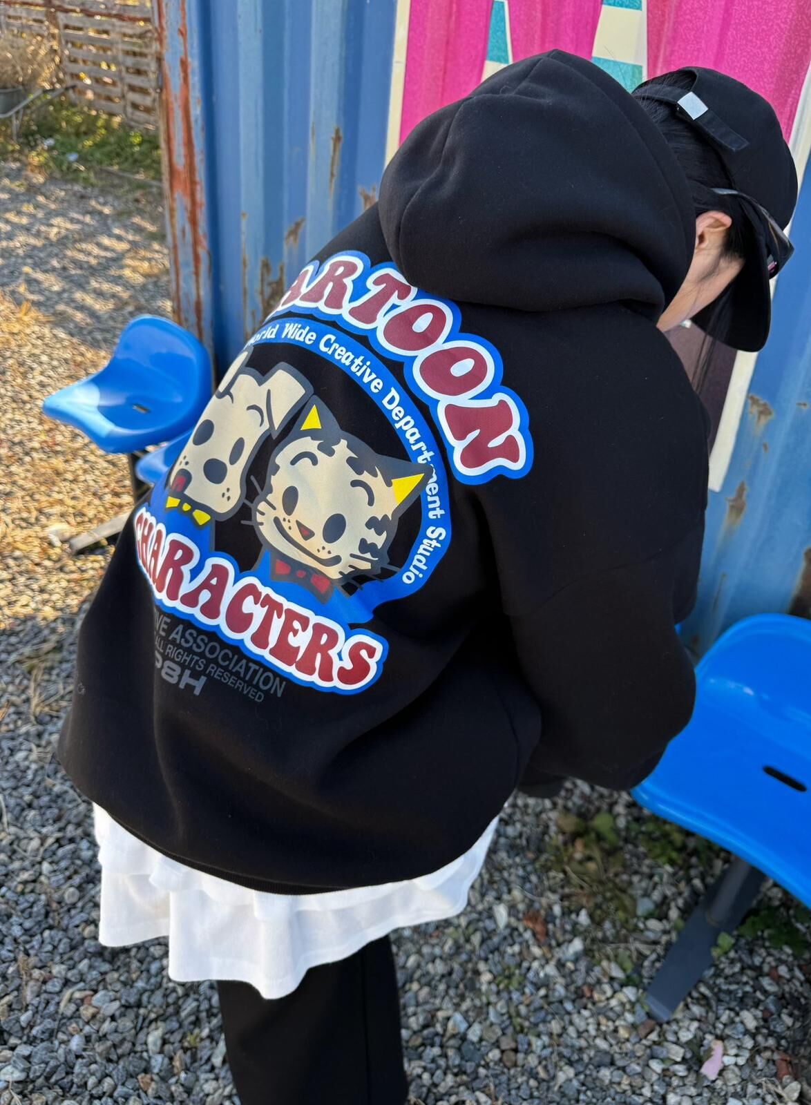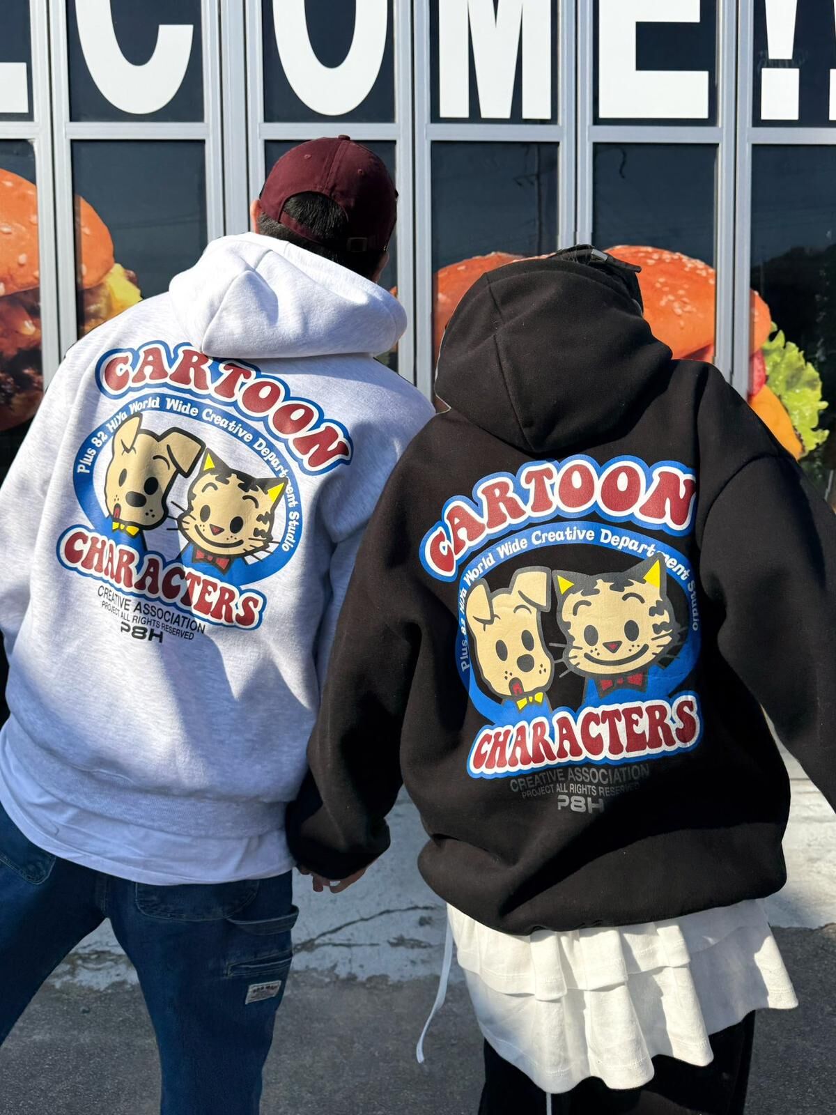 貓狗圖案英文字連帽衛衣 P8H-162T