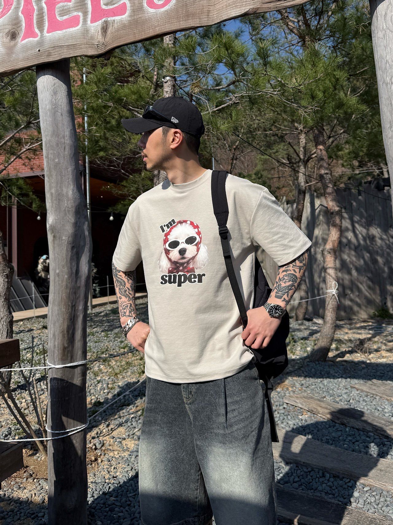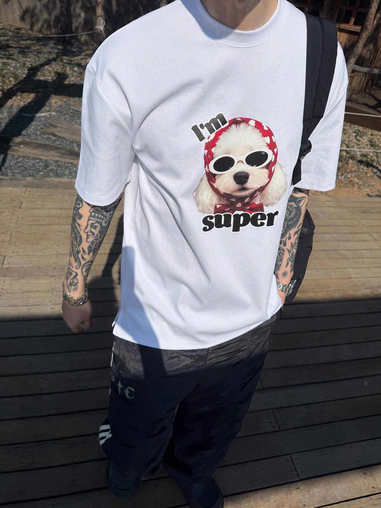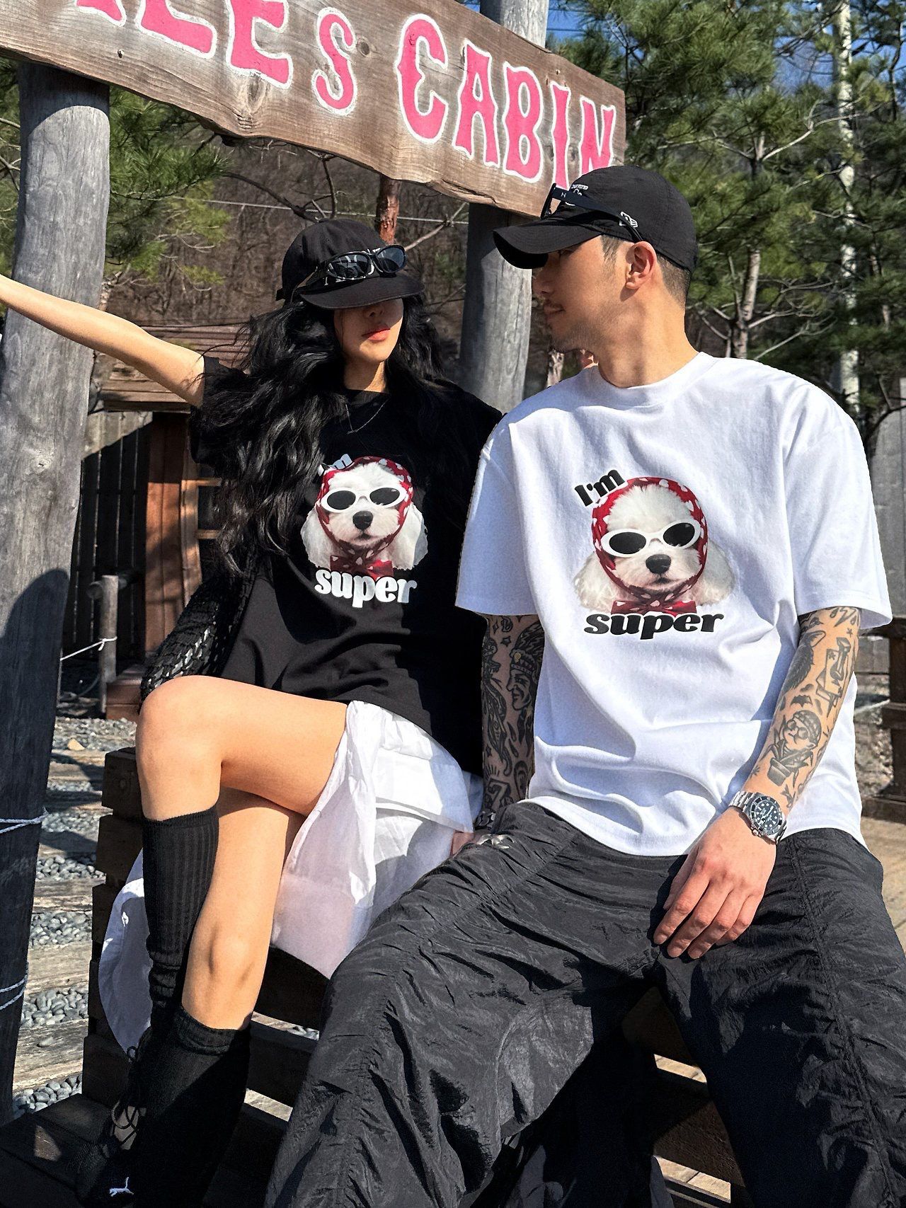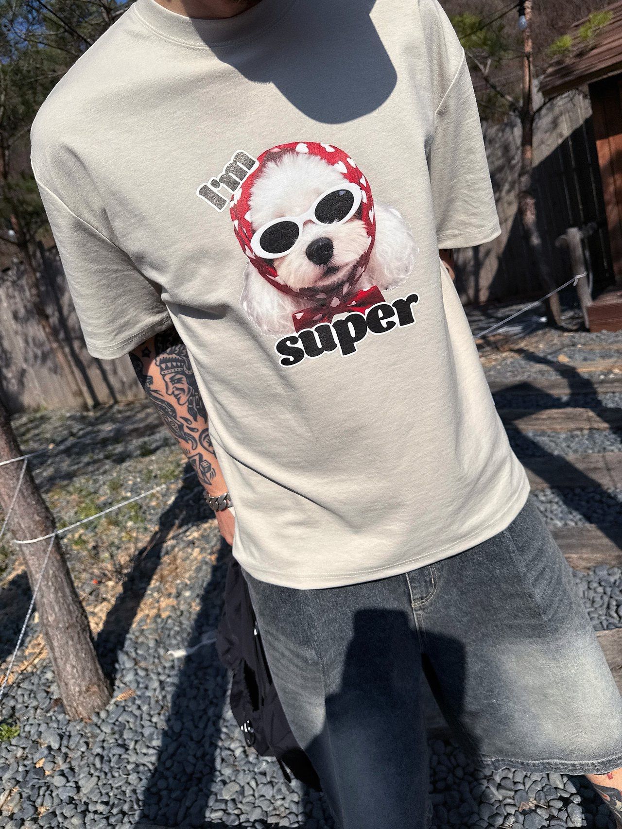狗仔圖案英文字短袖Tee P8H-173T