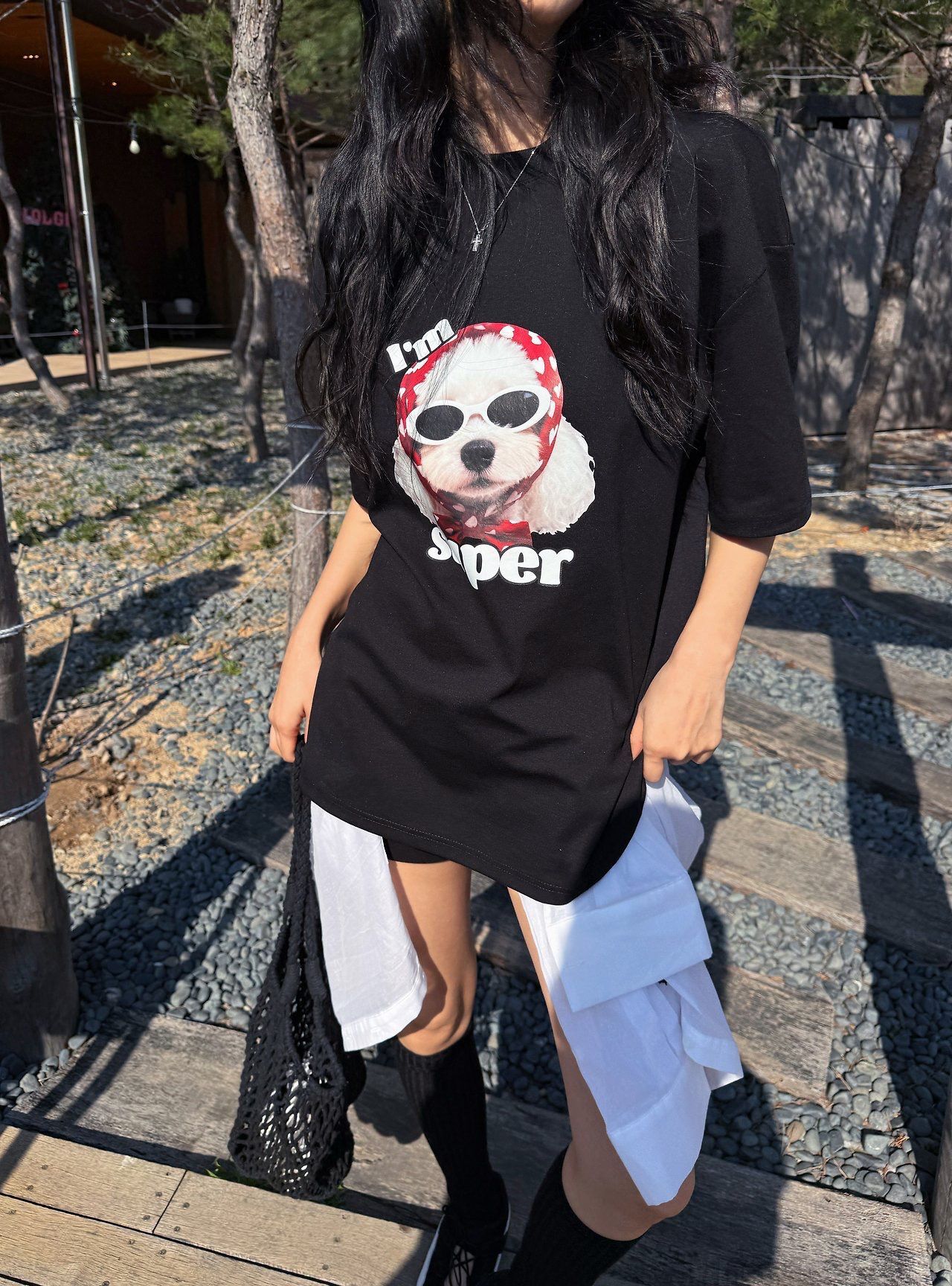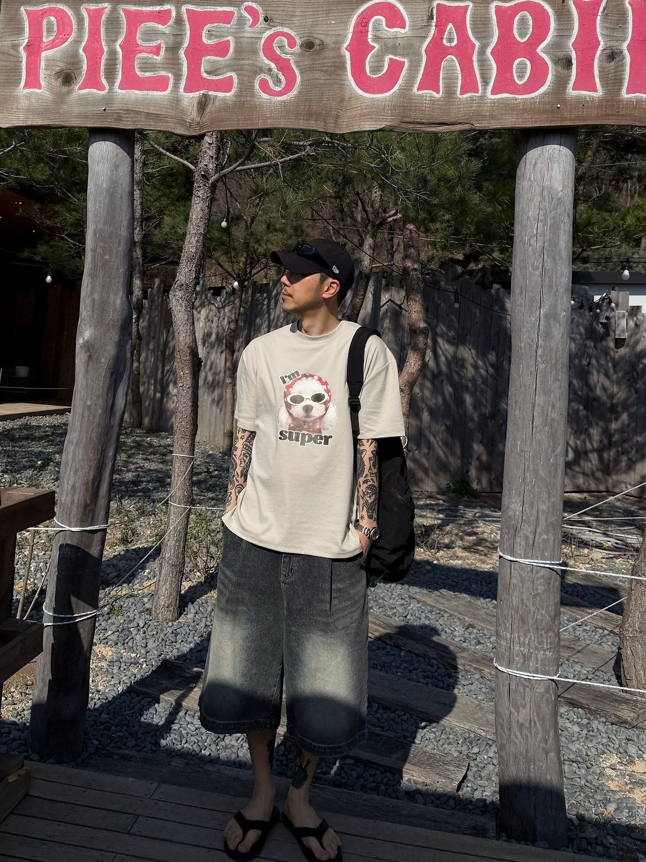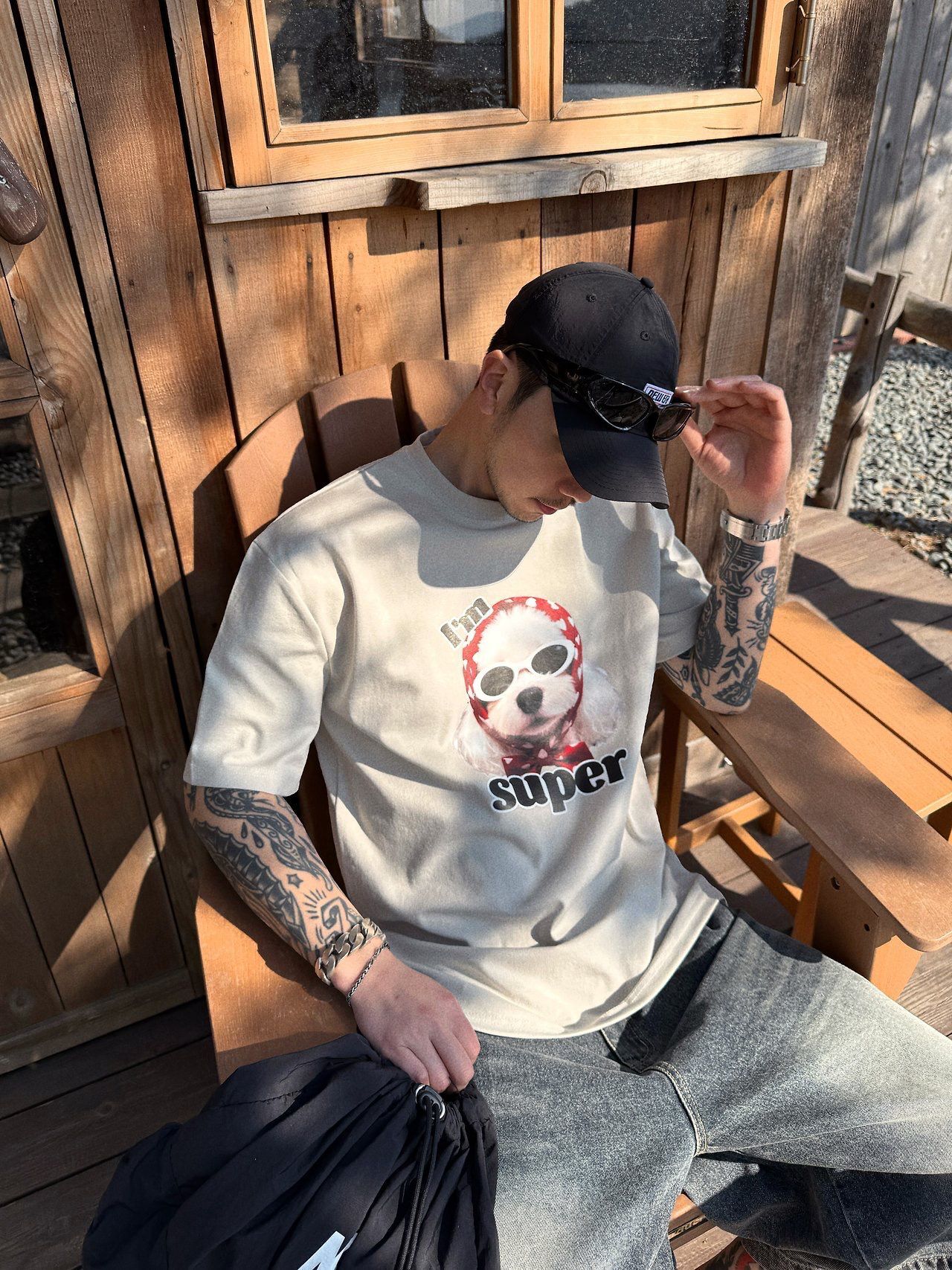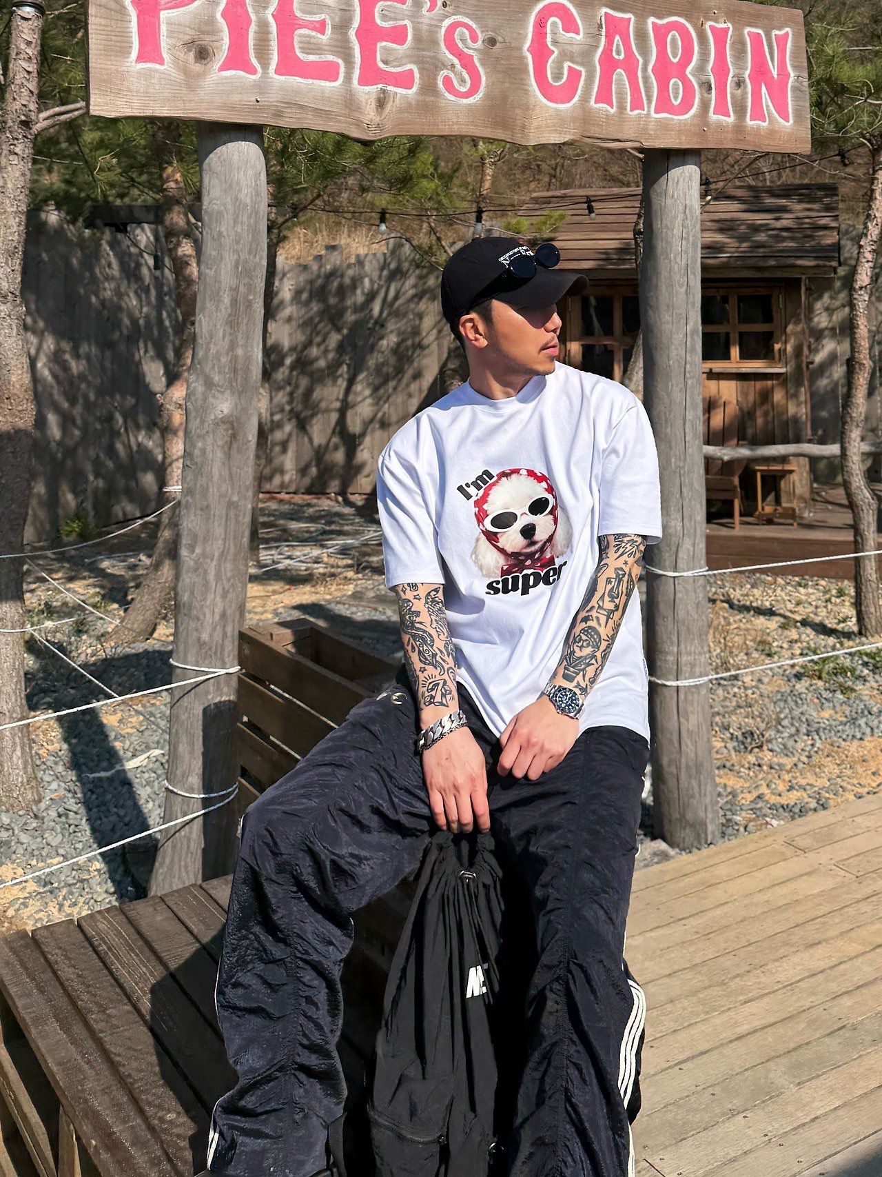 狗仔圖案英文字短袖Tee P8H-173T