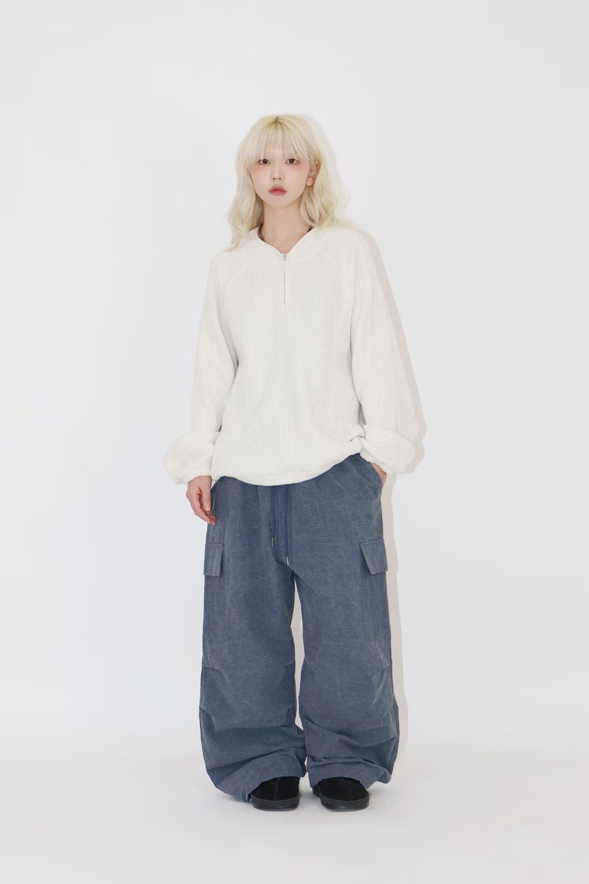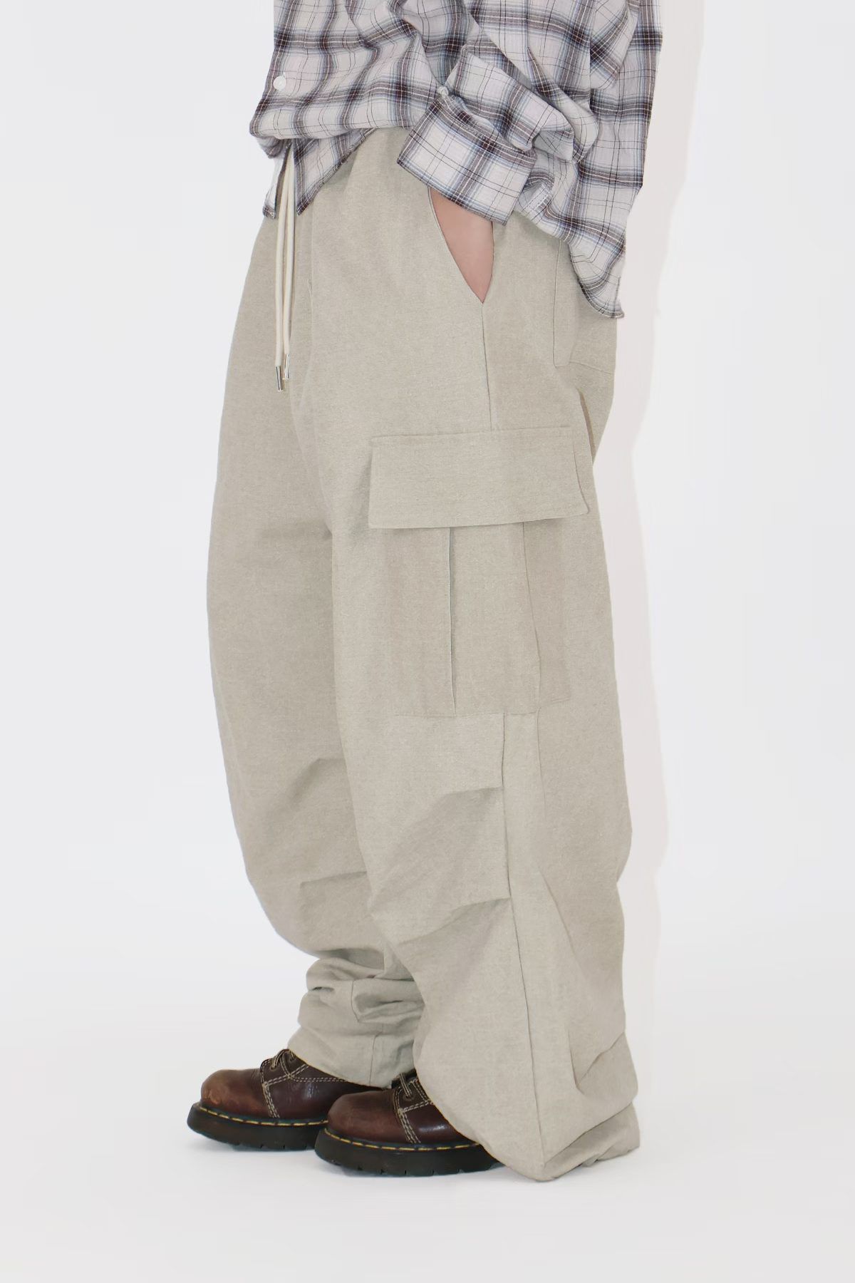 淨色可束腳工裝鬆身褲 Patin-002P