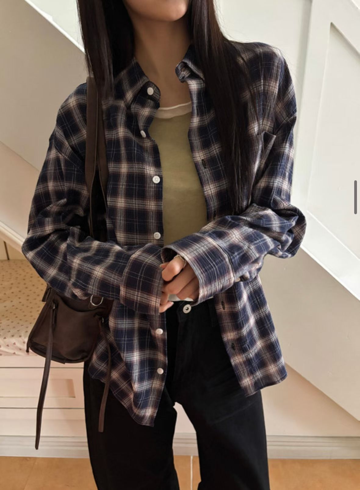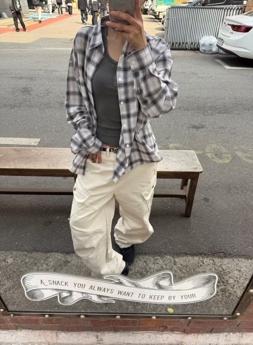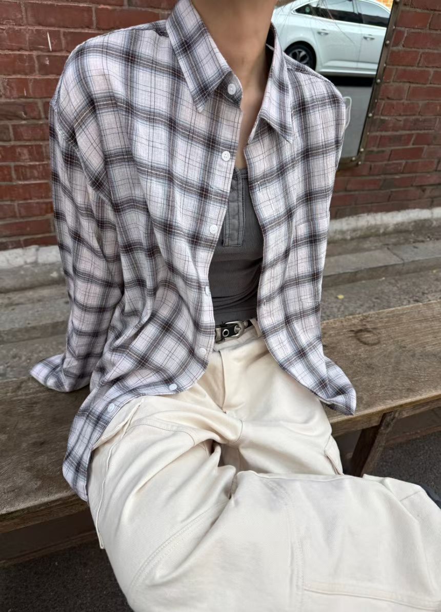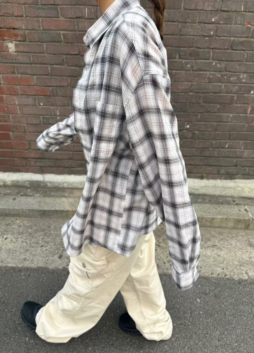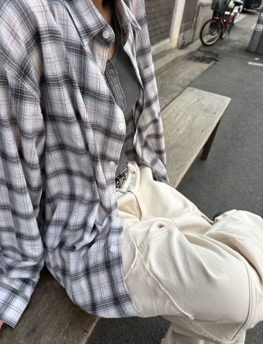 格仔長袖恤衫 Patin-005S