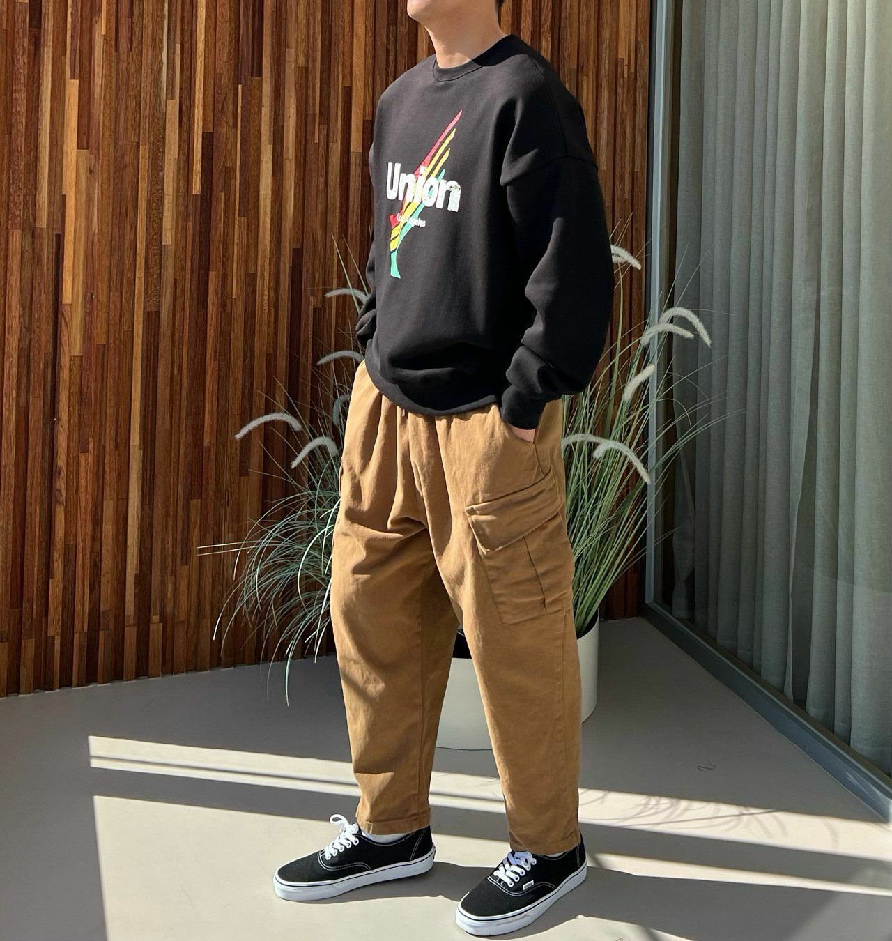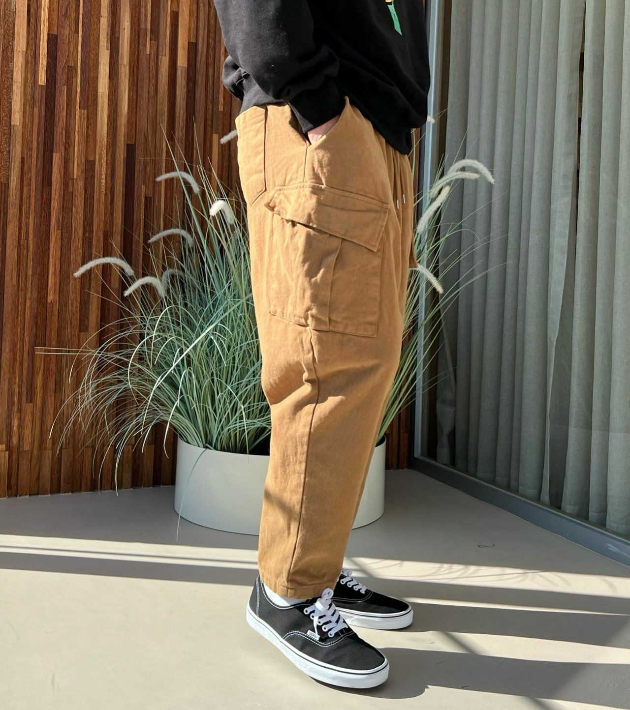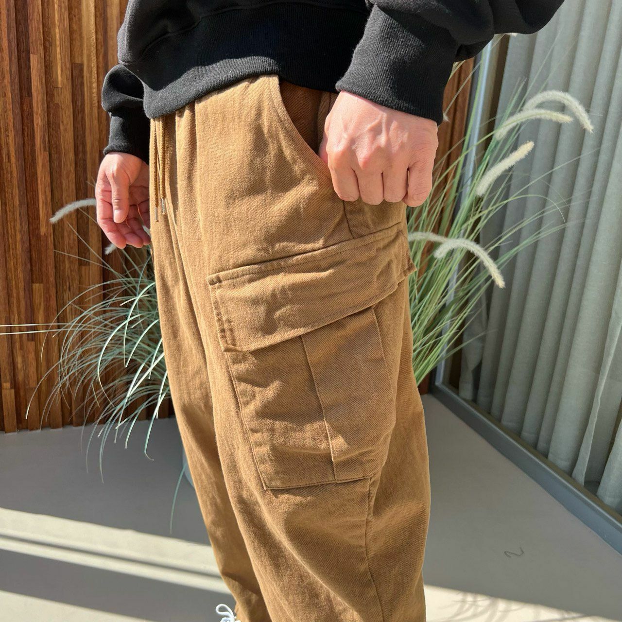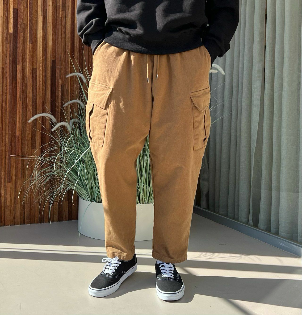 淨色工裝鬆身褲(薄抓毛底) PEACOCK-049P