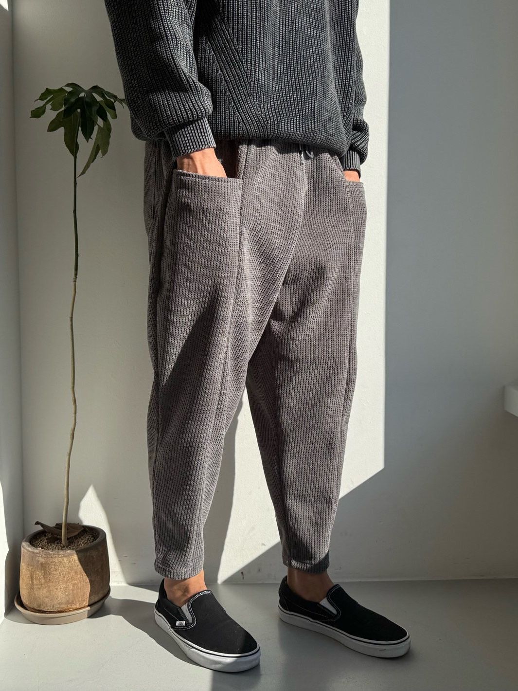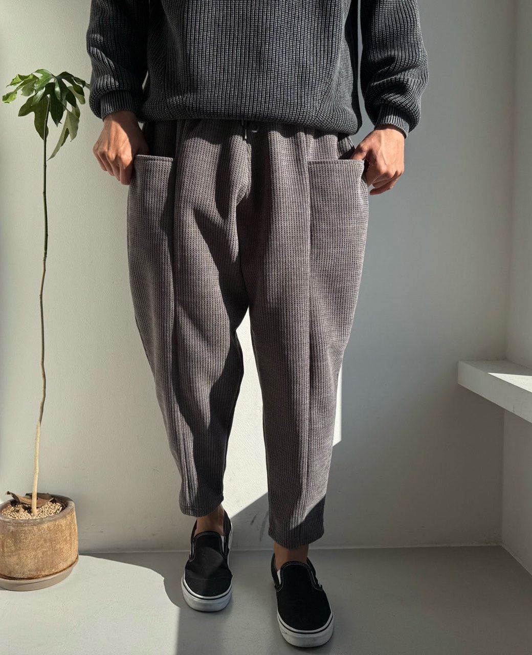 暗格紋鬆身褲(抓毛底) PEACOCK-159P
