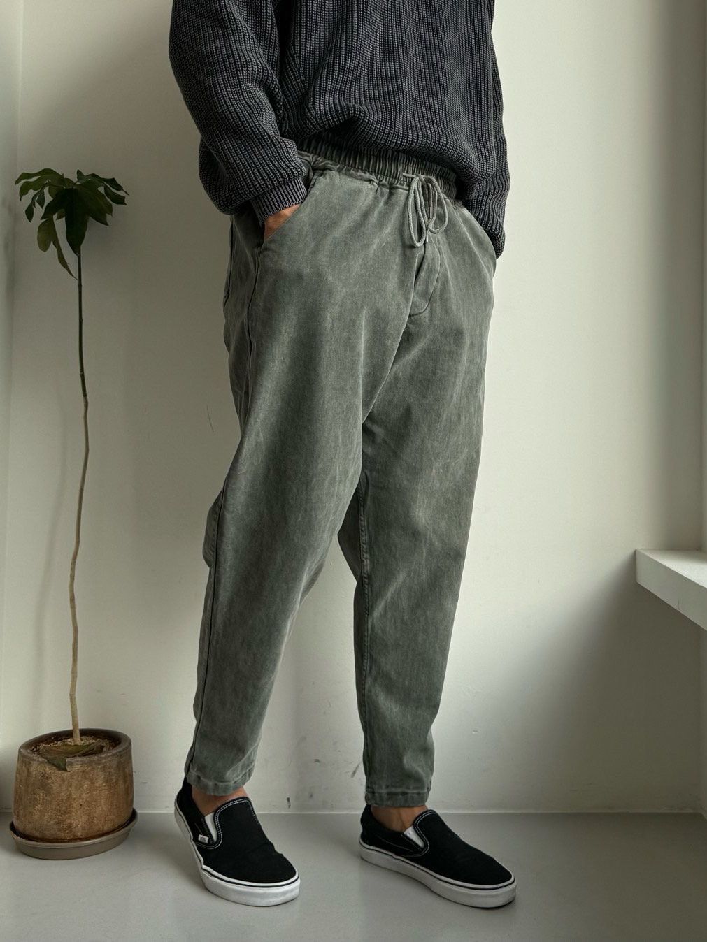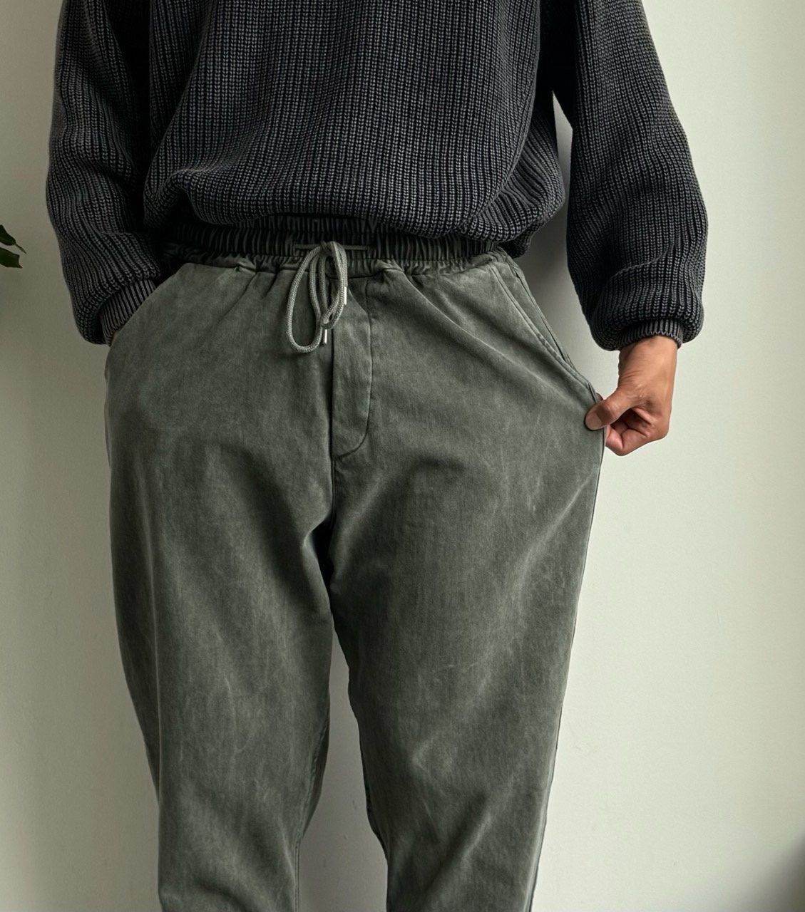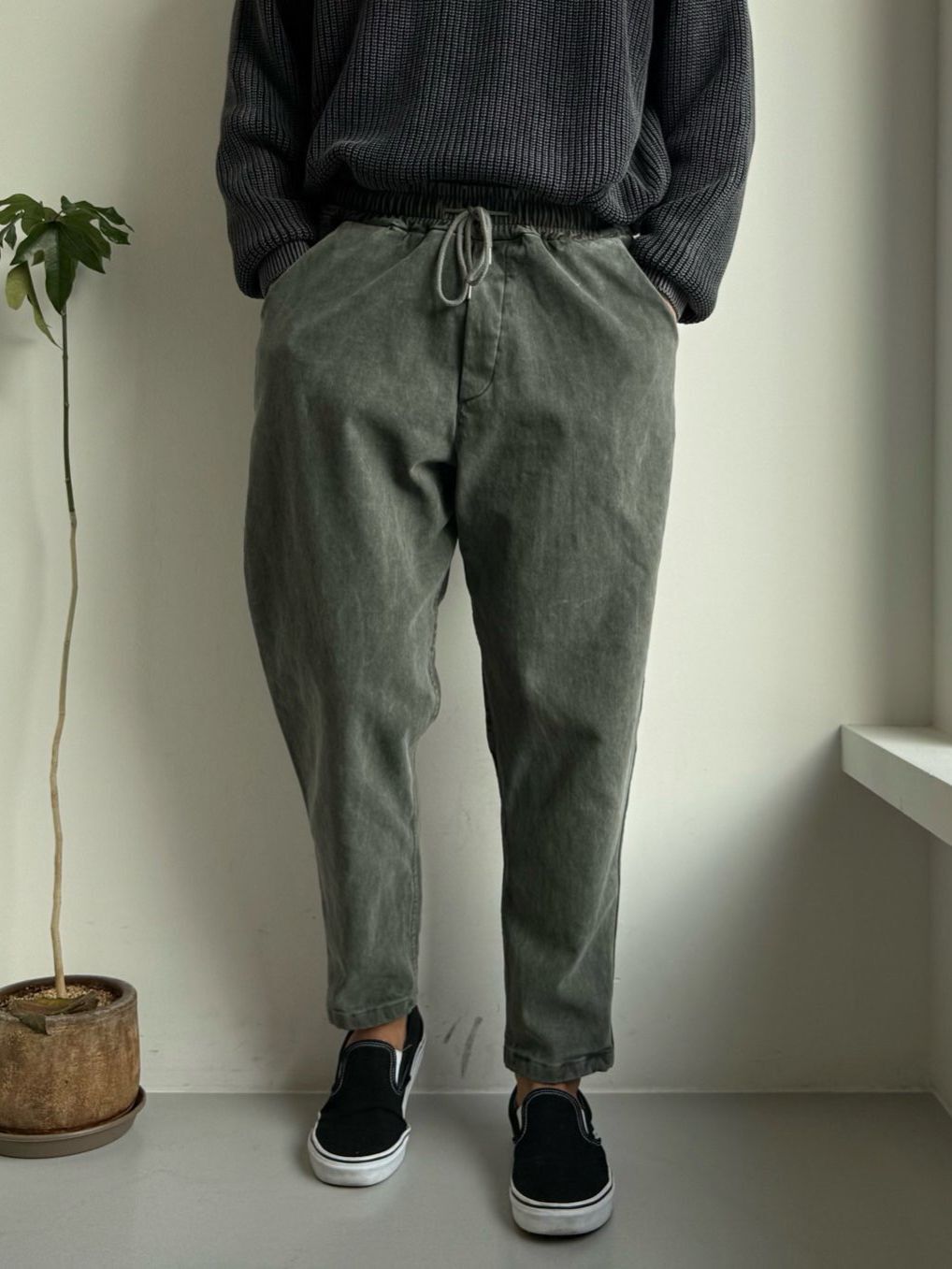 洗水淨色鬆身褲(薄抓毛底) PEACOCK-160P