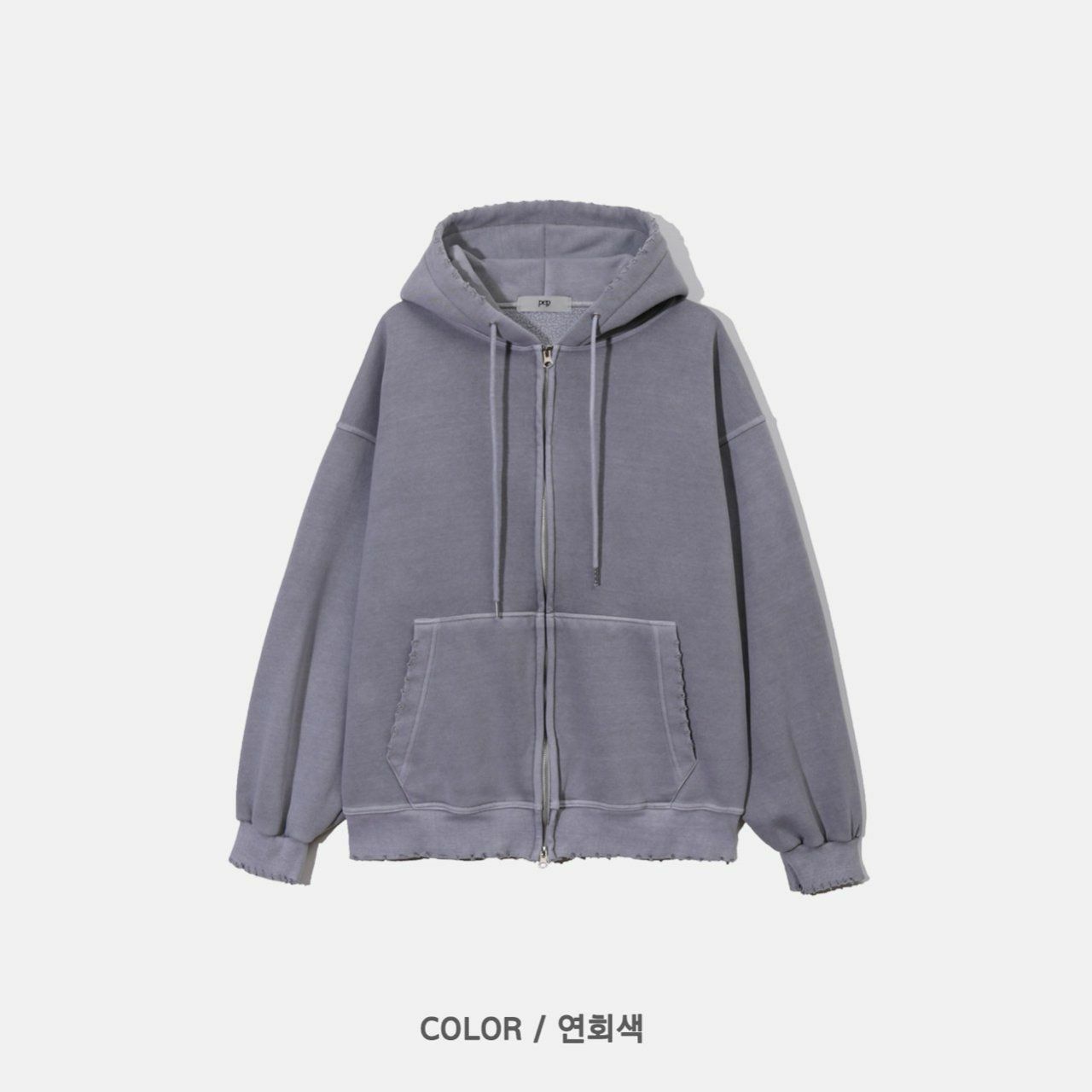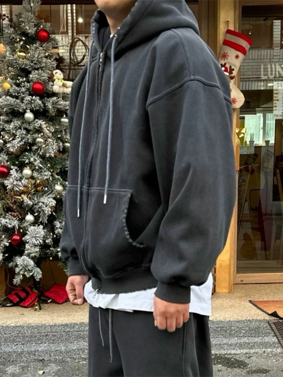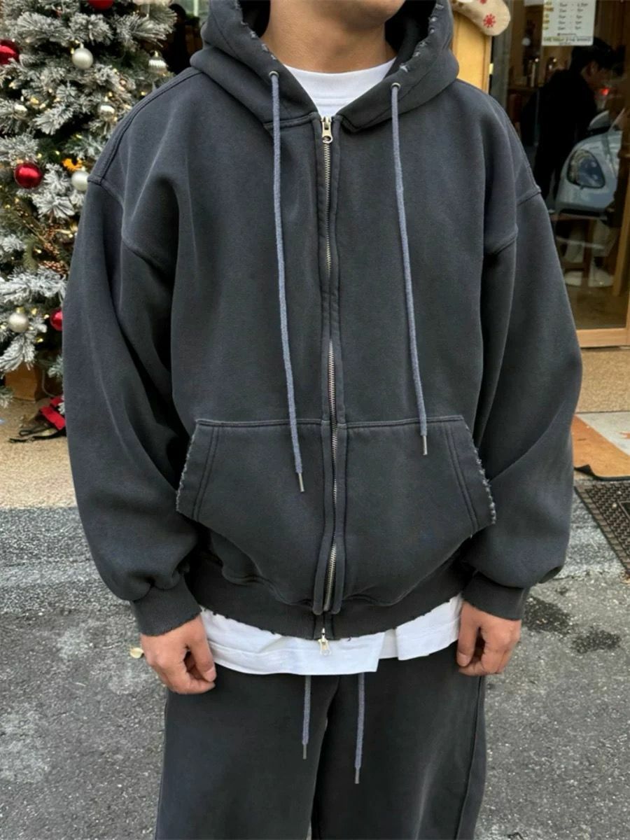 淨色洗水破邊連帽拉鍊外套(薄抓毛底) PEPPER-013JK