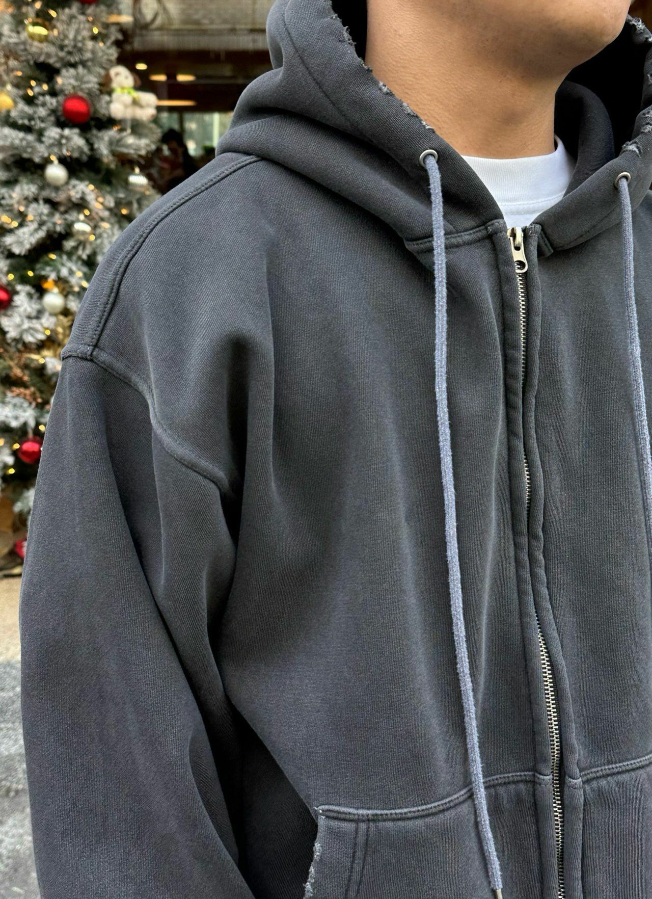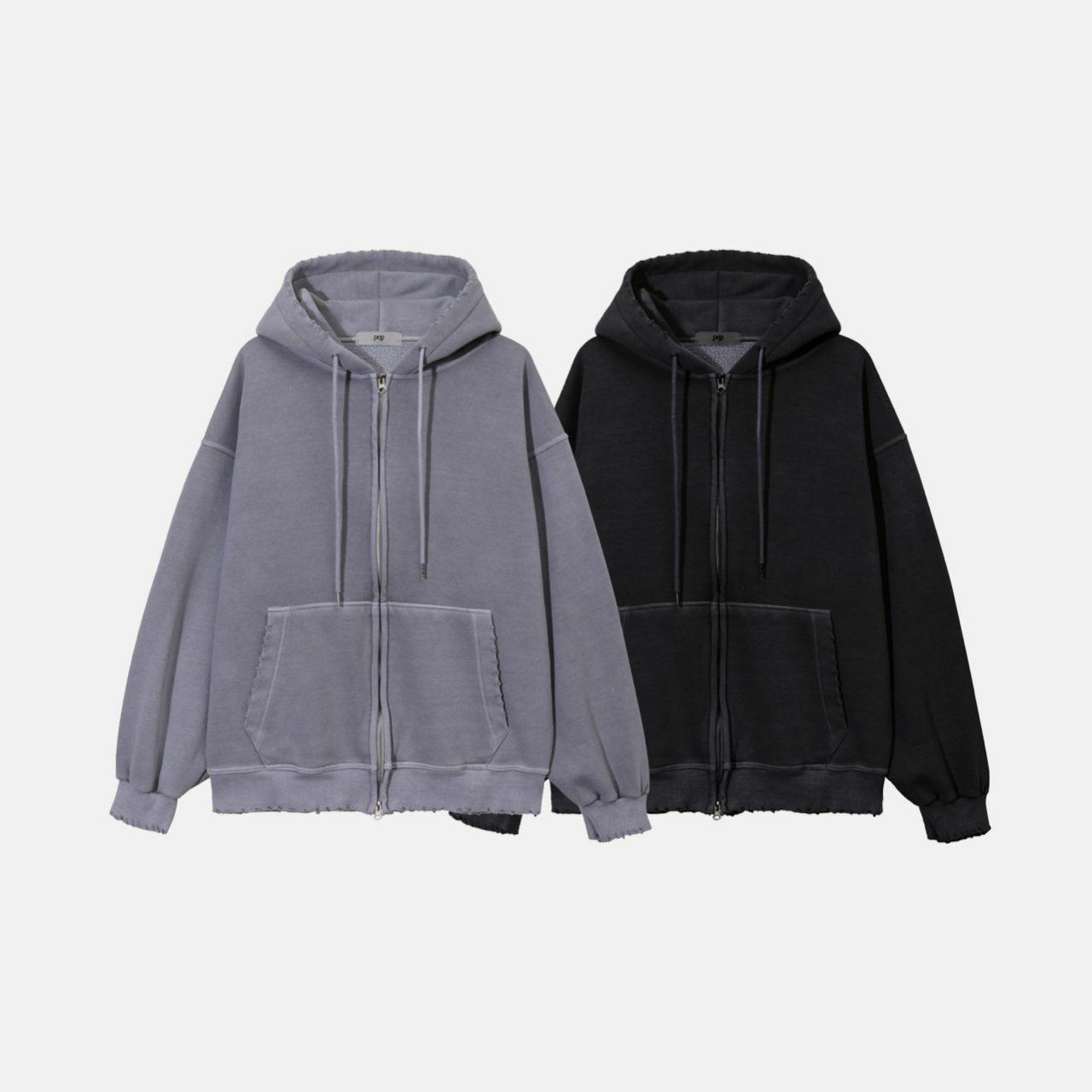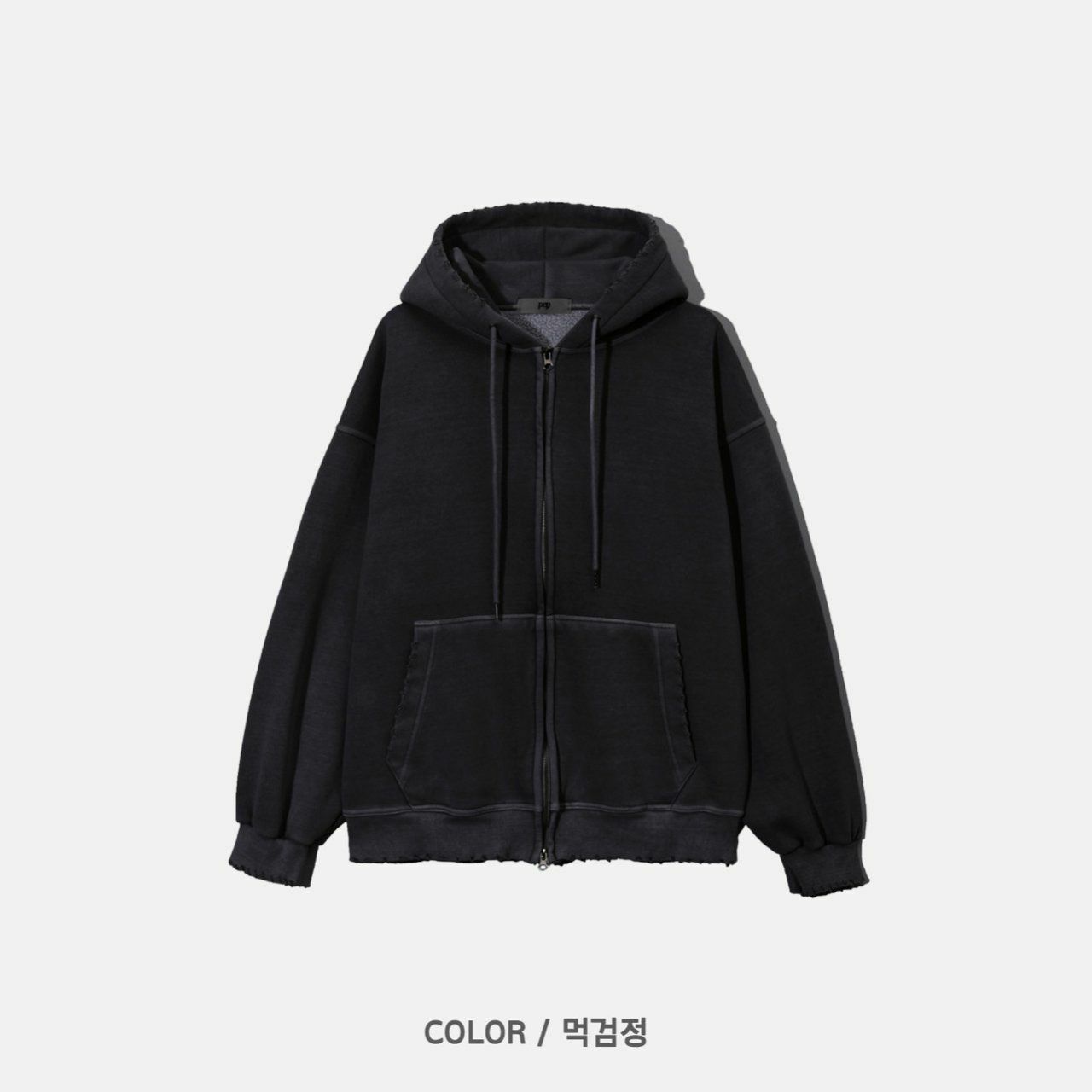 淨色洗水破邊連帽拉鍊外套(薄抓毛底) PEPPER-013JK