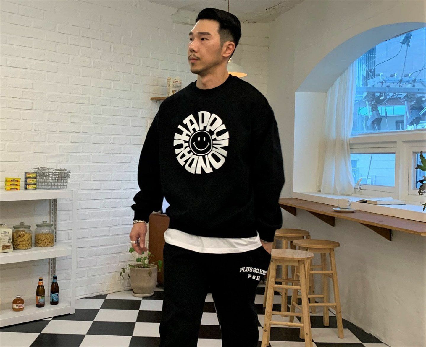 英文字哈哈笑圖案衛衣 PLUS82HIYA-047T