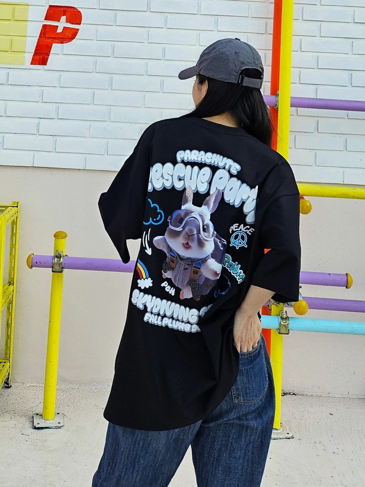 兔仔圖案英文字短袖Tee PLUS82HIYA-077T