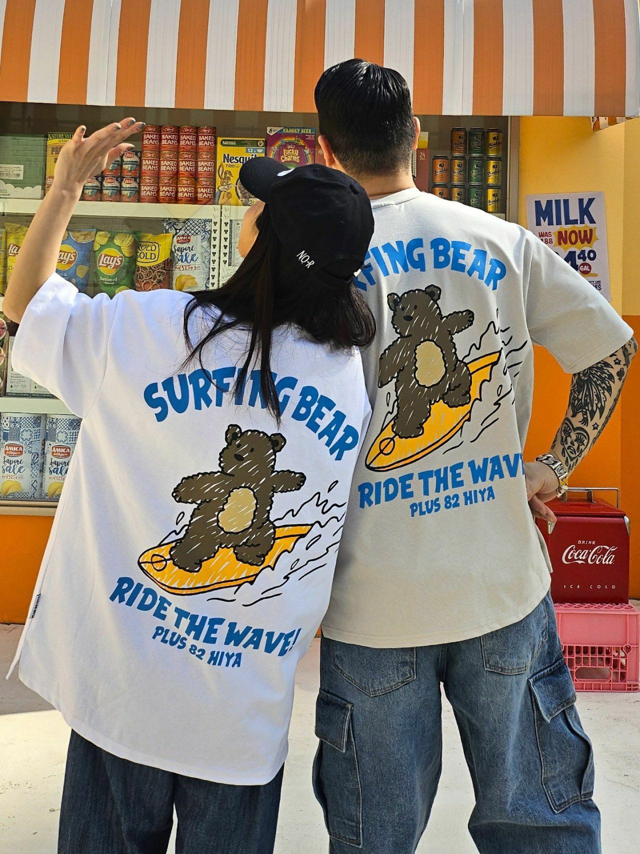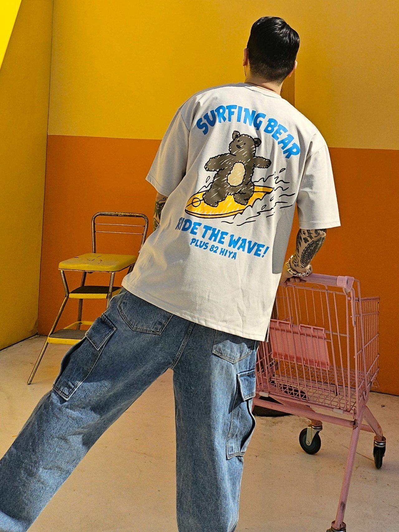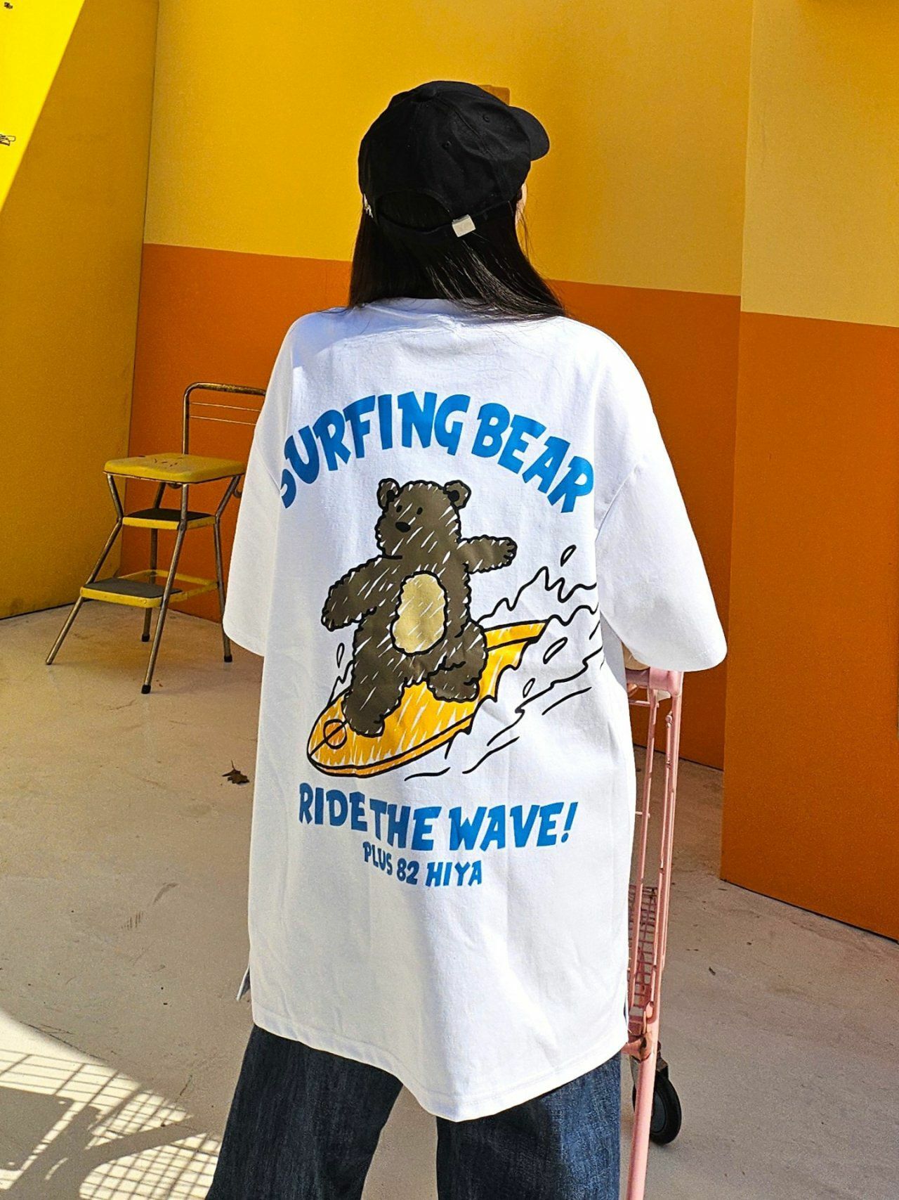 熊仔圖案英文字短袖Tee PLUS82HIYA-080T