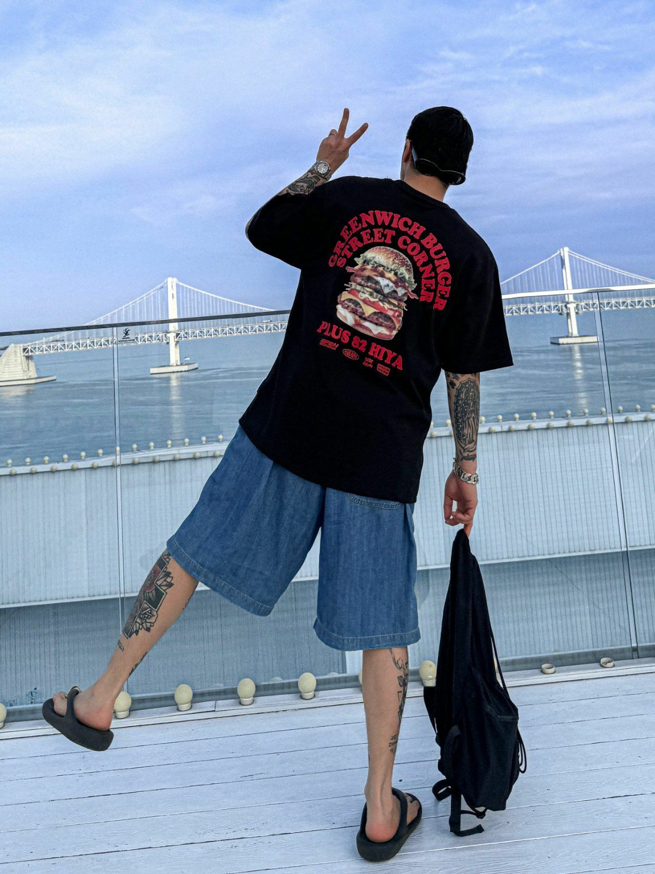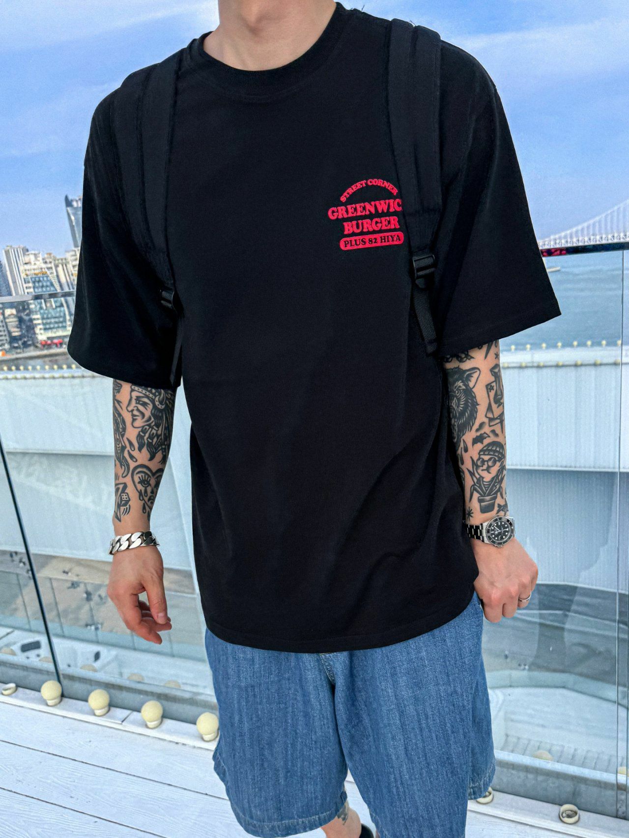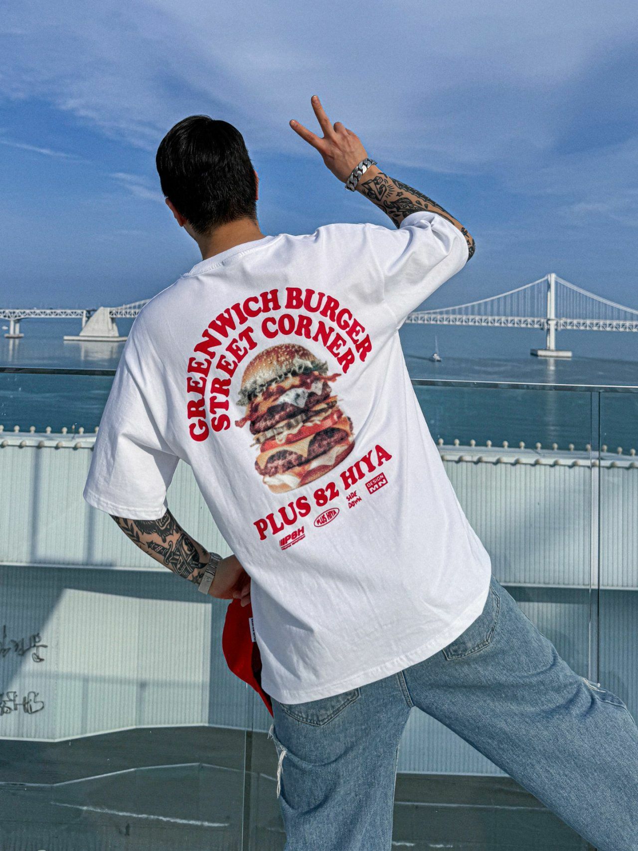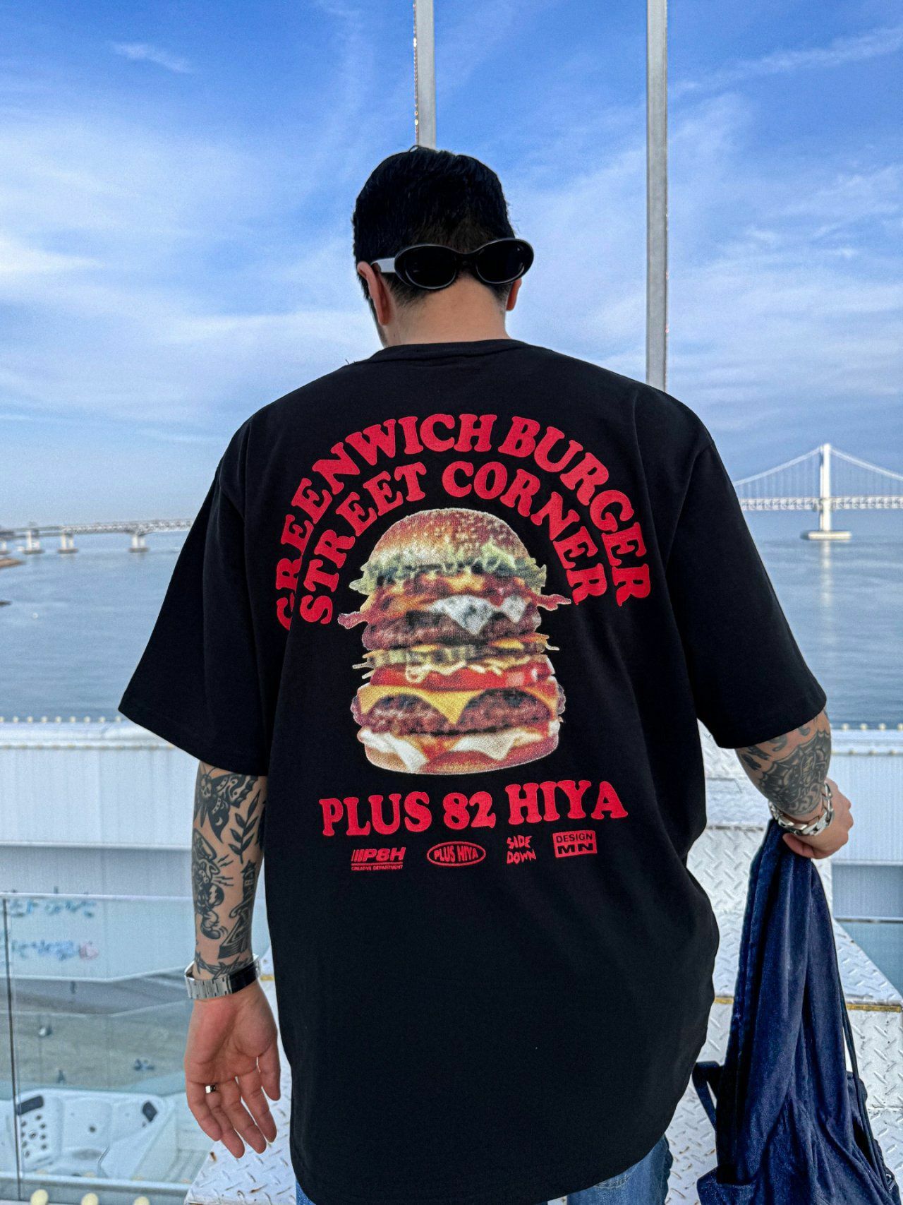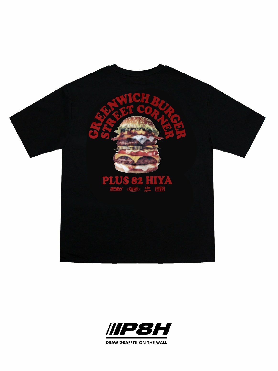 漢堡飽圖案英文字短袖Tee PLUS82HIYA-089T