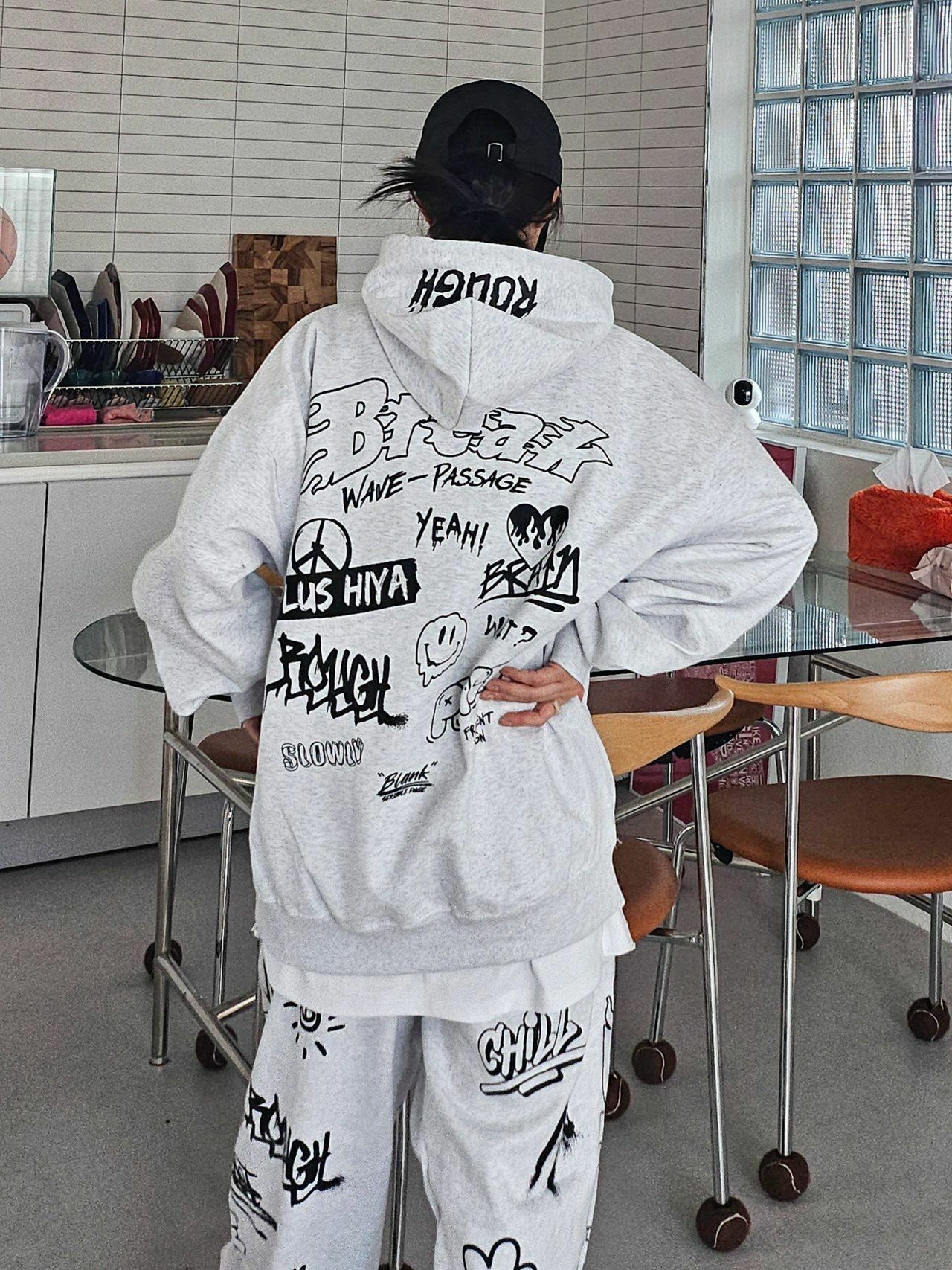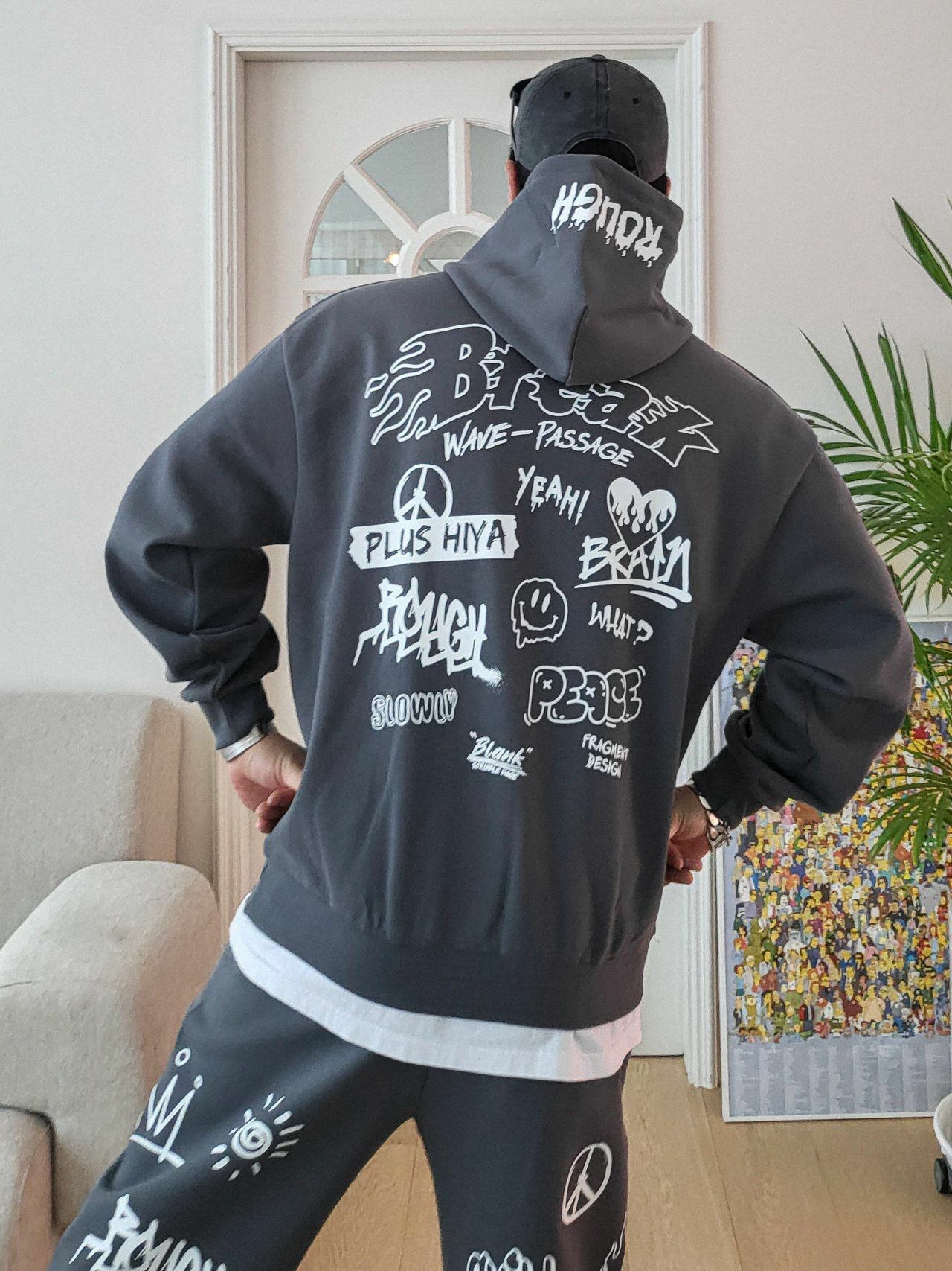 英文字圖案連帽衛衣 PLUS82HIYA-099T