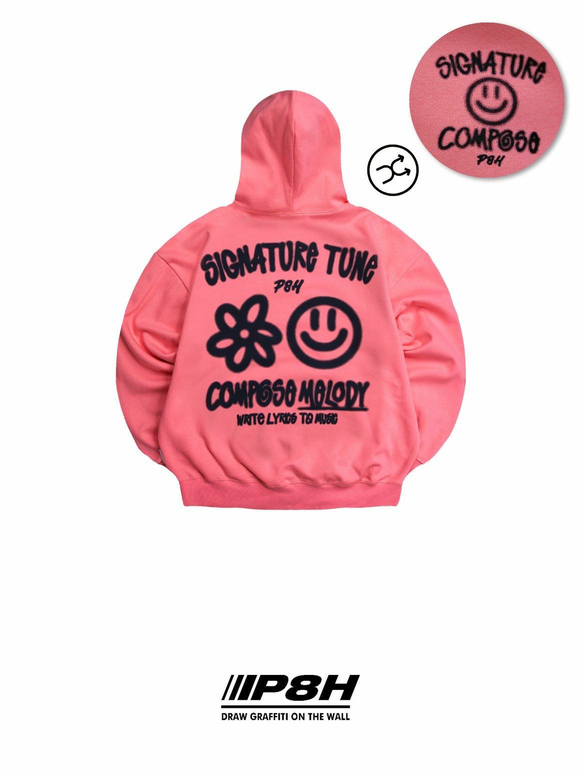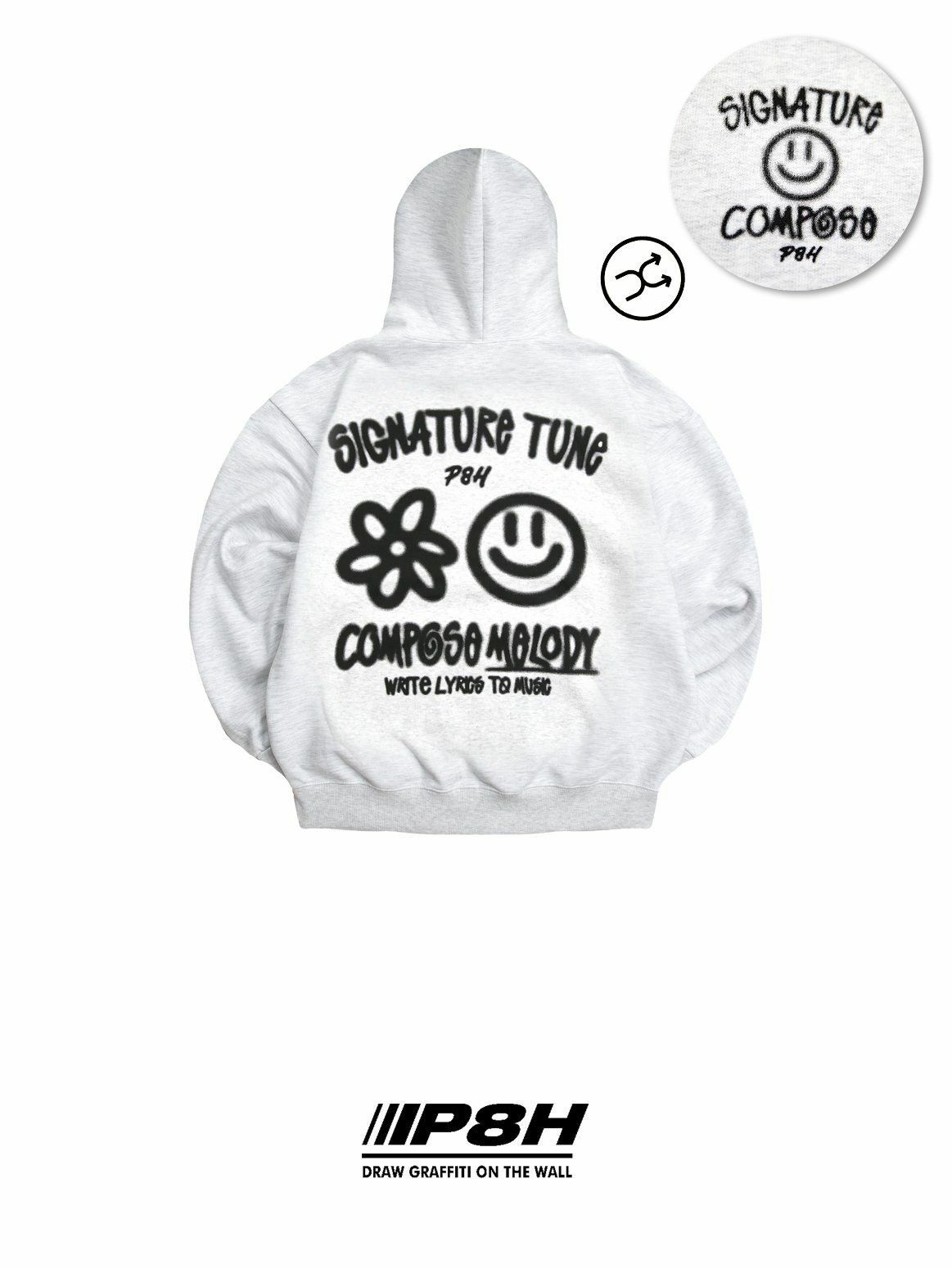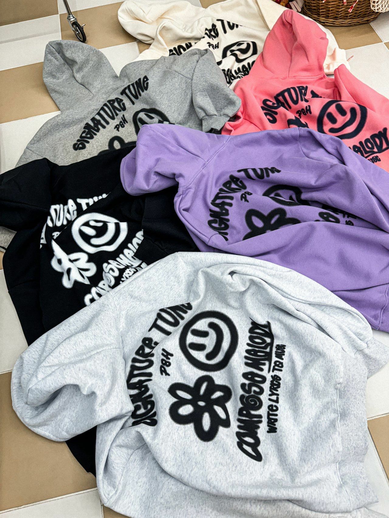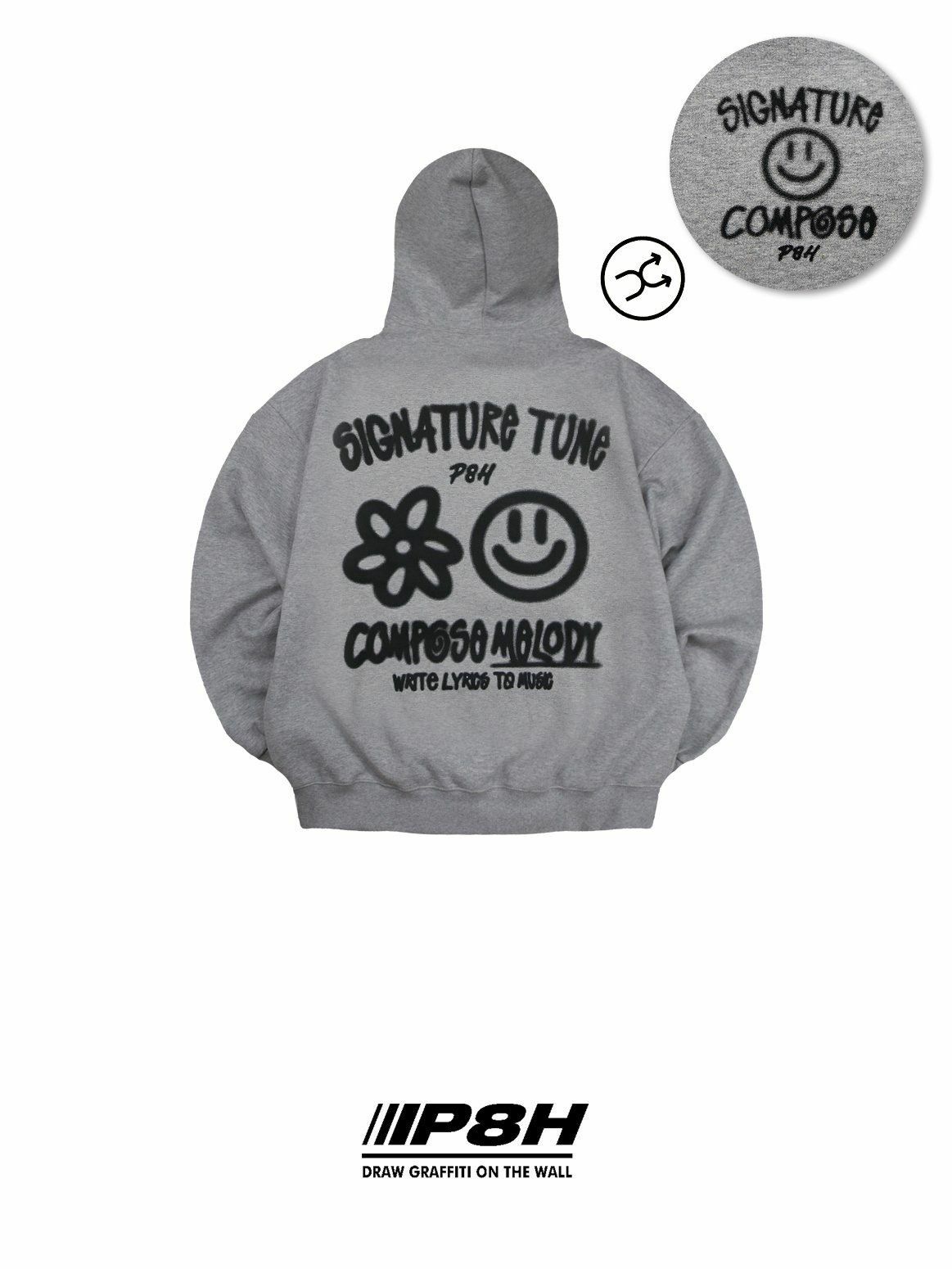 哈哈笑圖案英文字連帽衛衣(薄抓毛底) PLUS82HIYA-110T