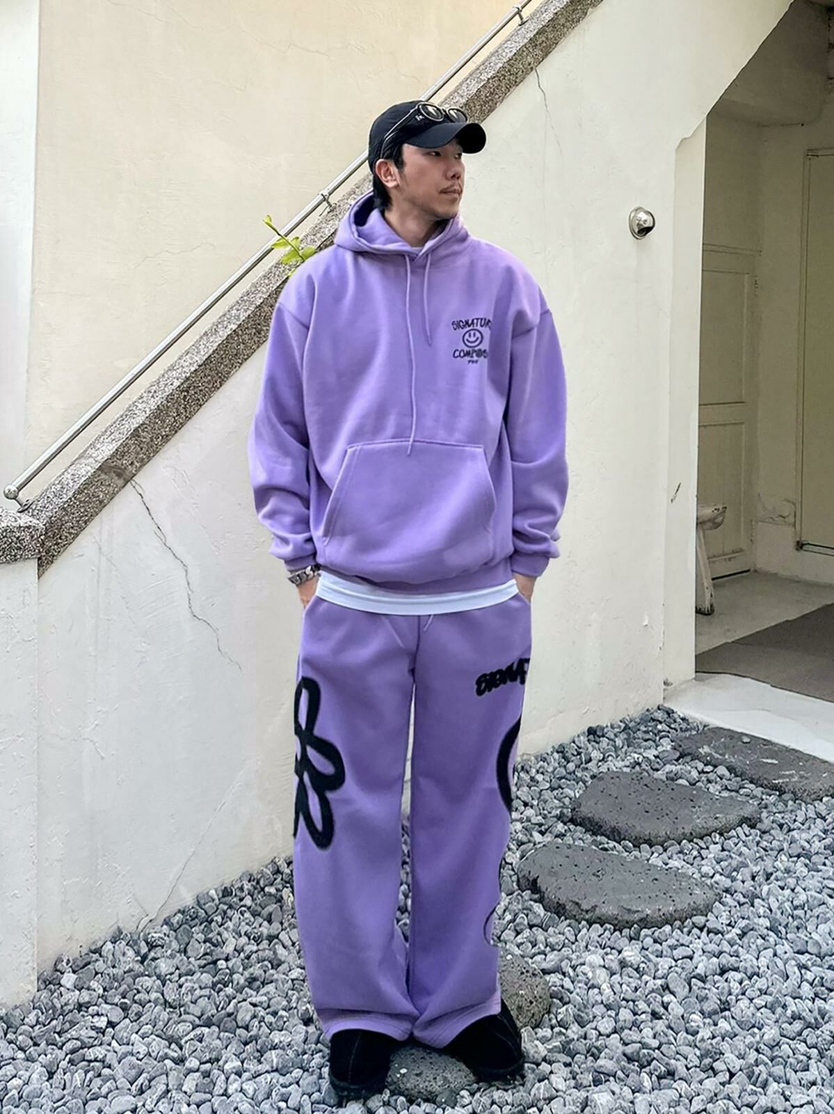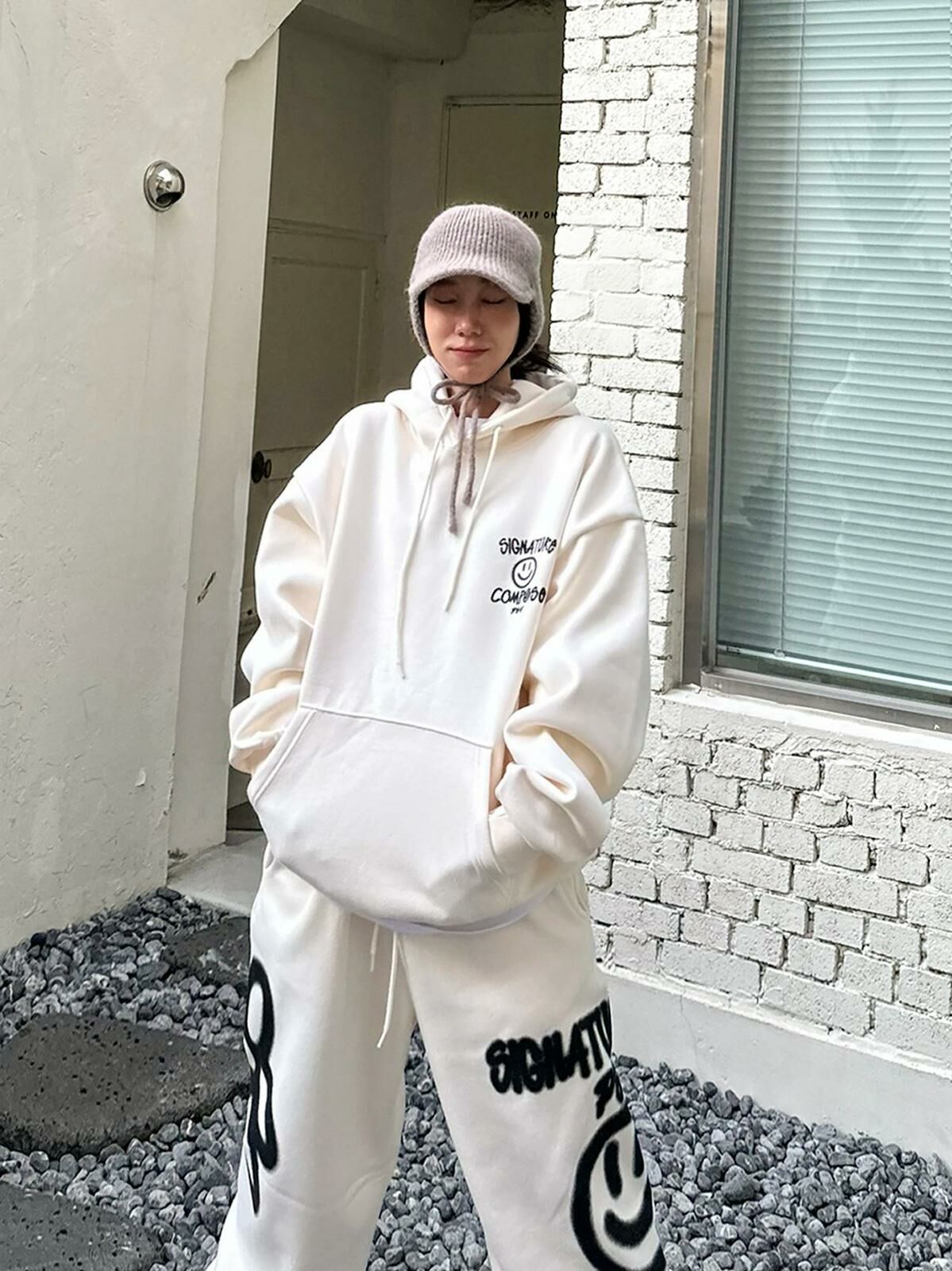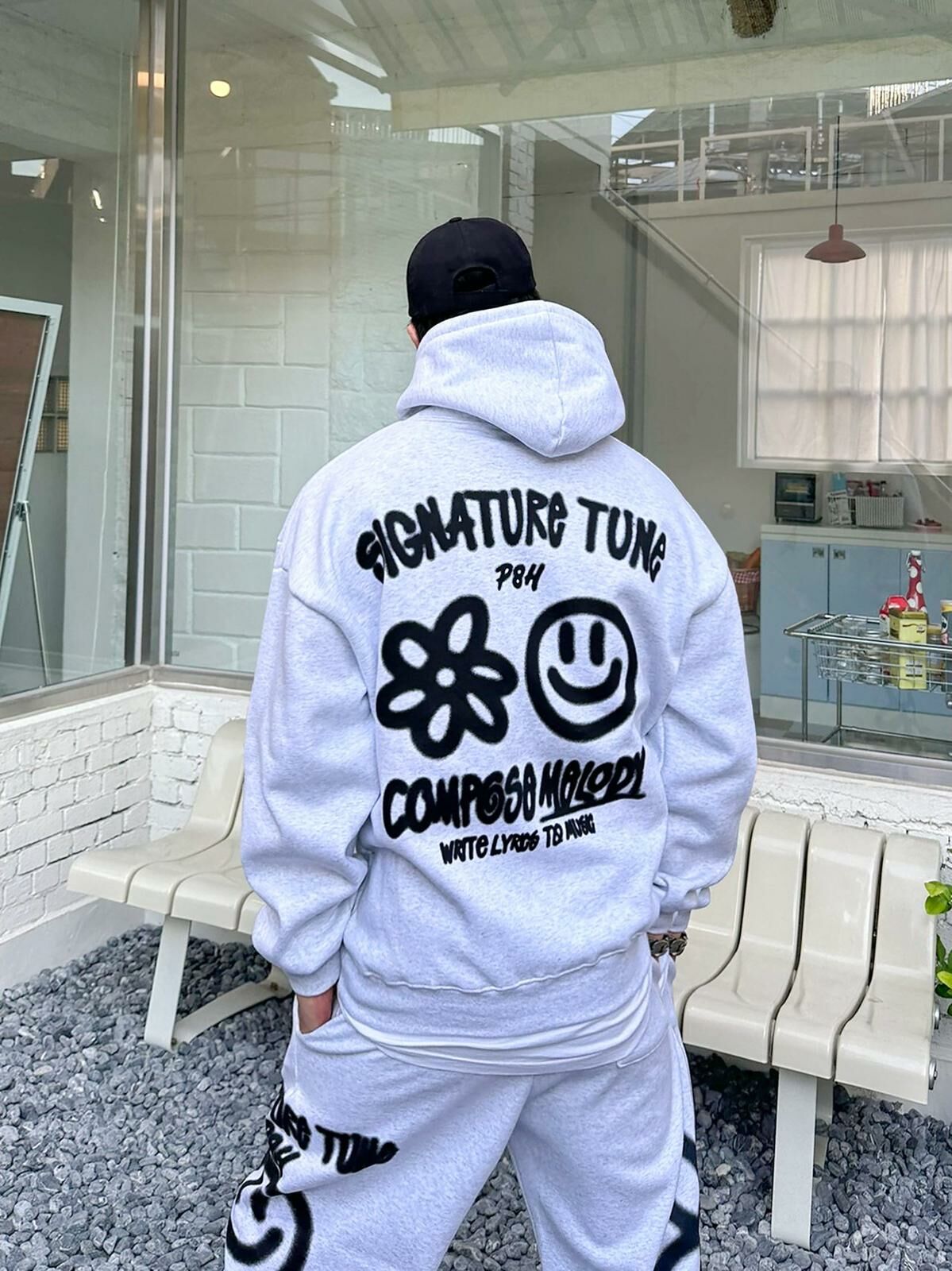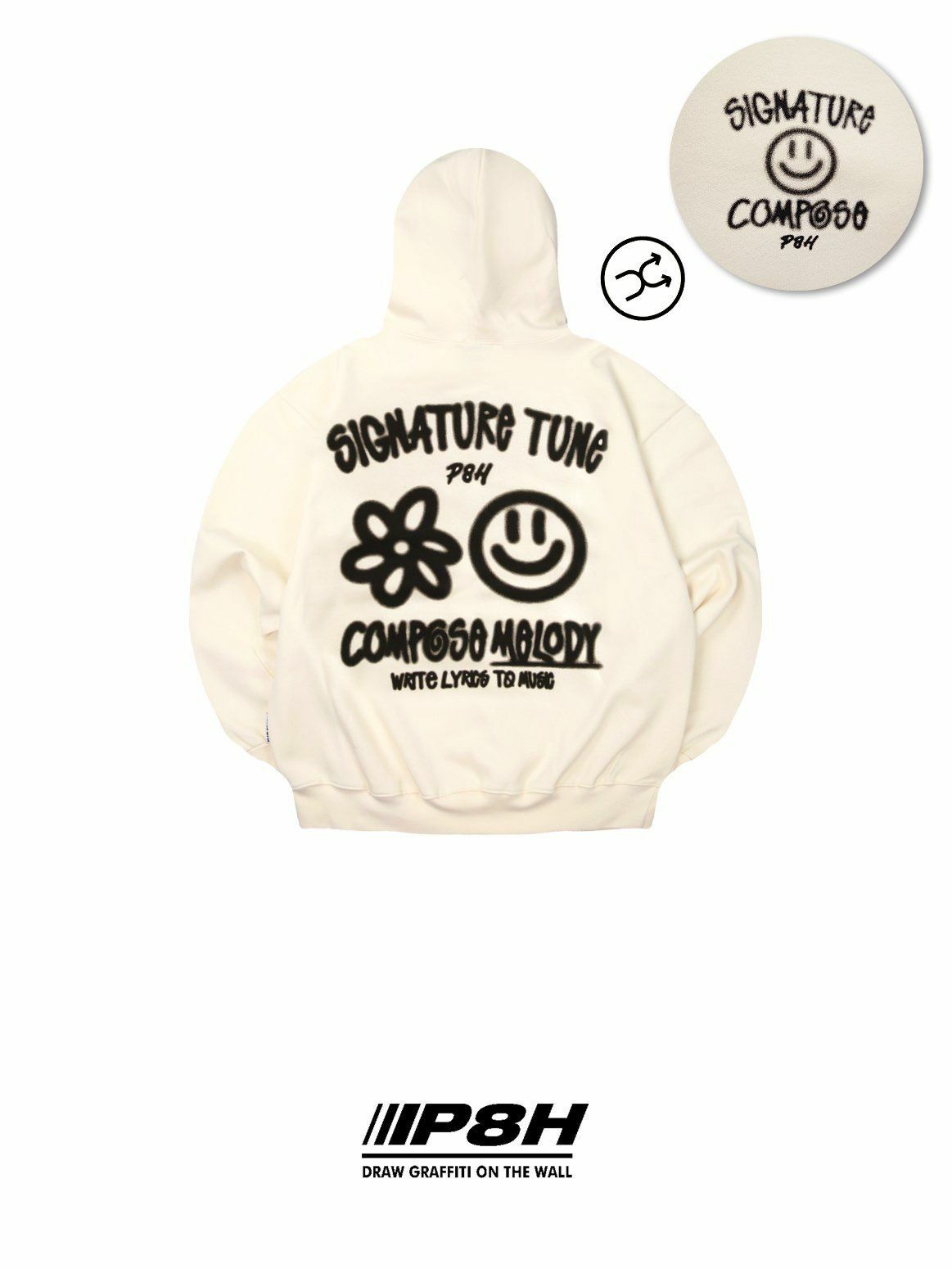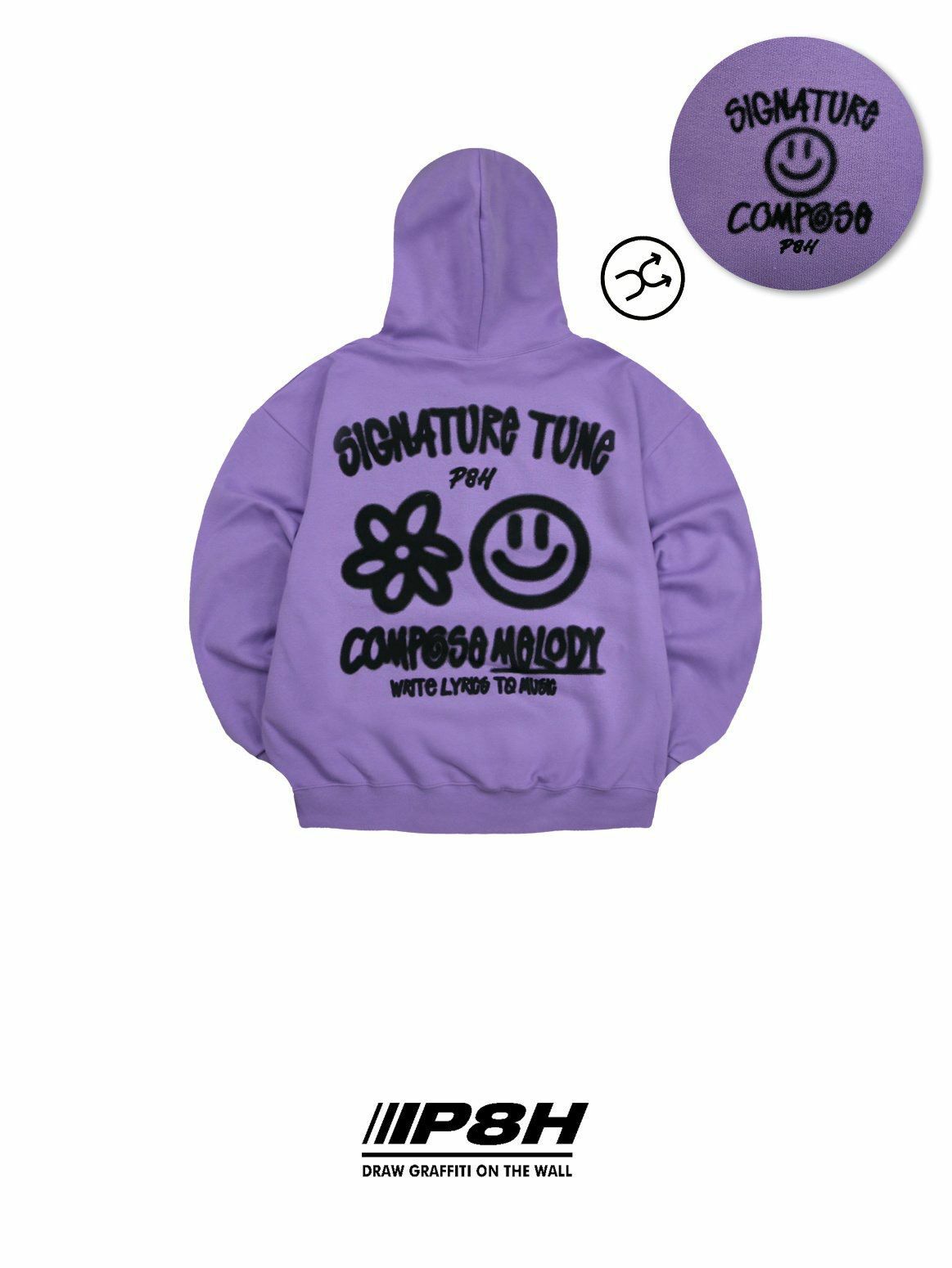 哈哈笑圖案英文字連帽衛衣(薄抓毛底) PLUS82HIYA-110T