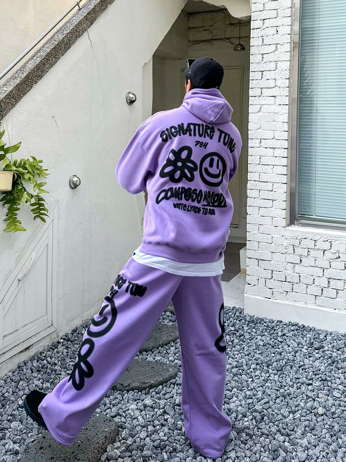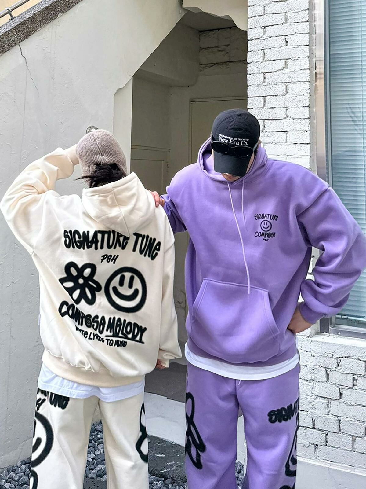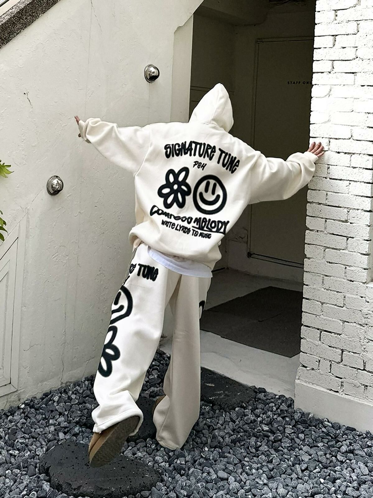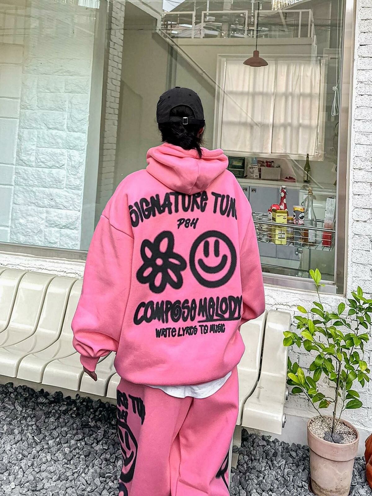 哈哈笑圖案英文字連帽衛衣(薄抓毛底) PLUS82HIYA-110T