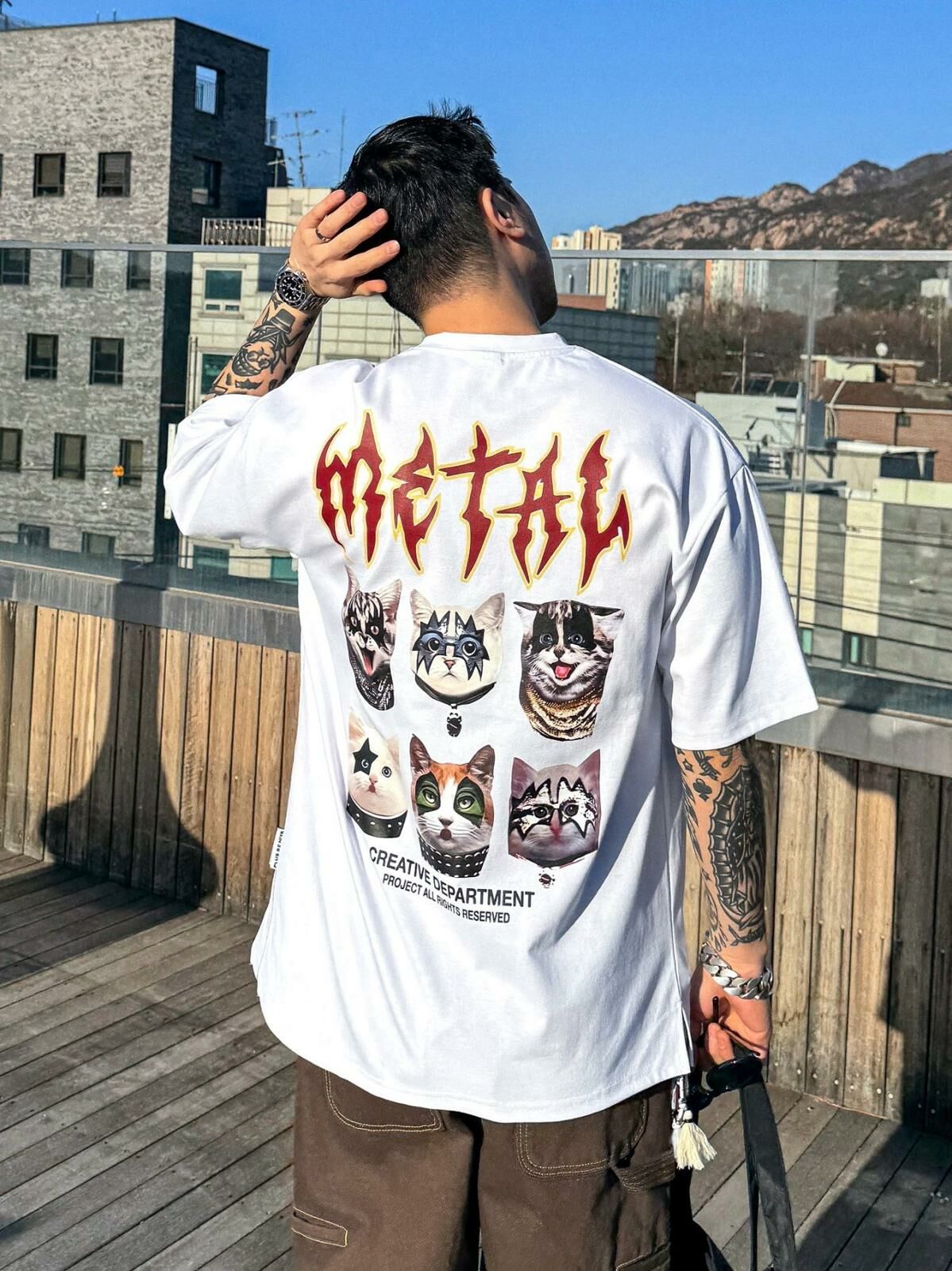 貓仔圖案英文字短袖Tee PLUS82HIYA-119T