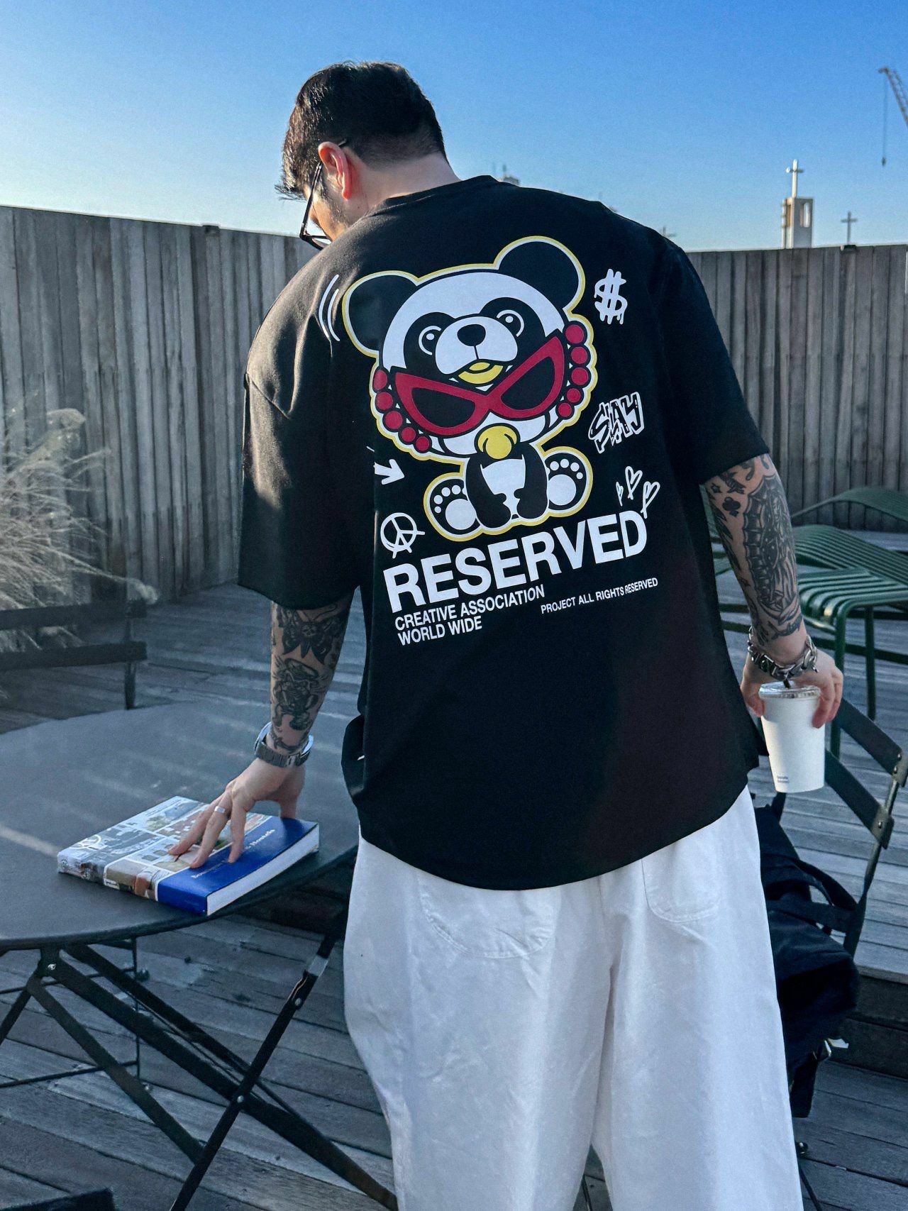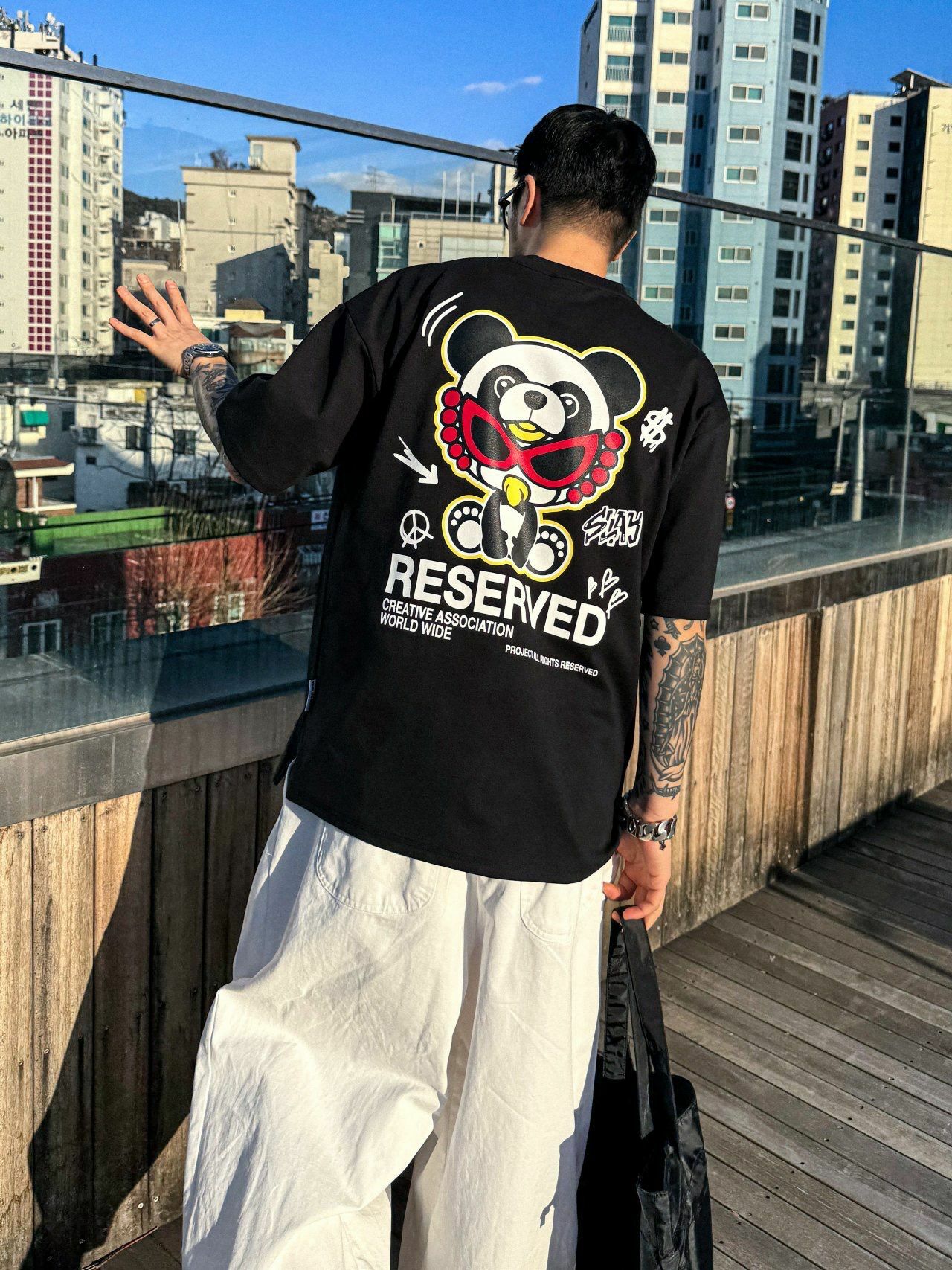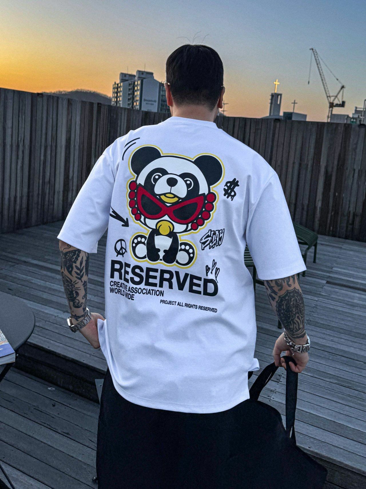 熊貓圖案英文字短袖Tee PLUS82HIYA-124T
