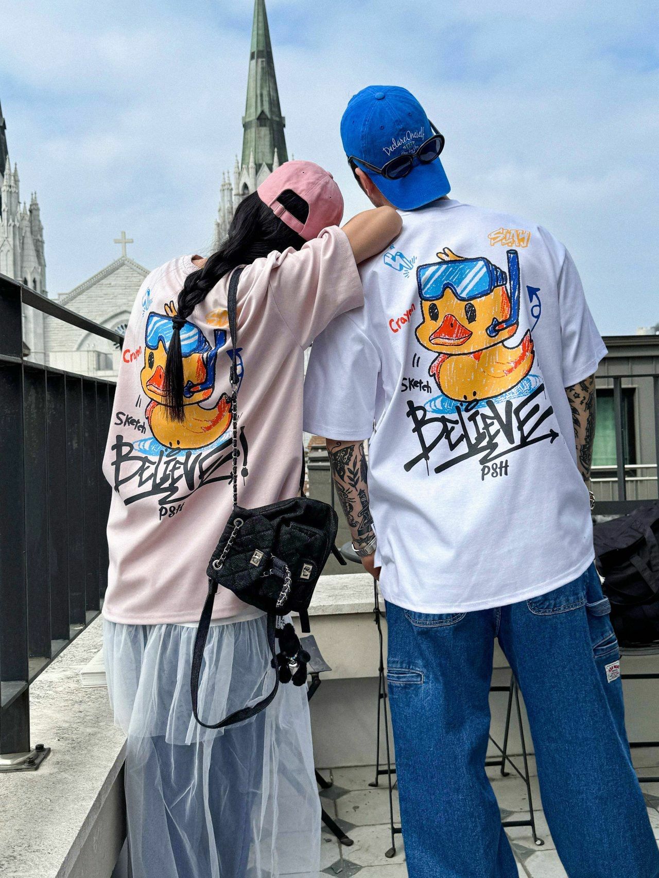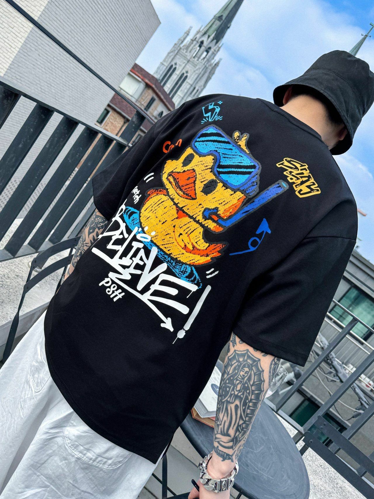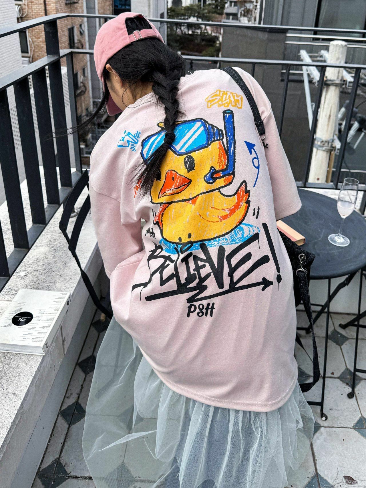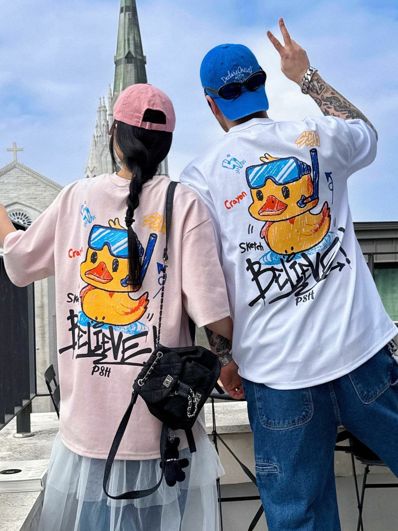 鴨仔圖案英文字短袖Tee PLUS82HIYA-132T