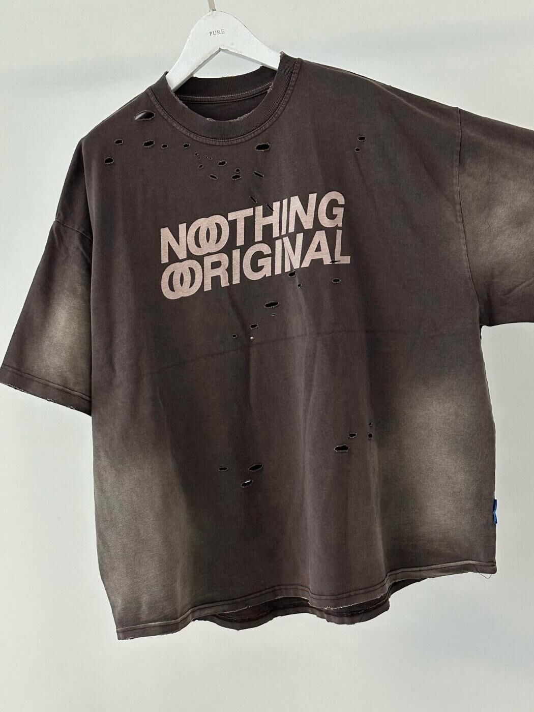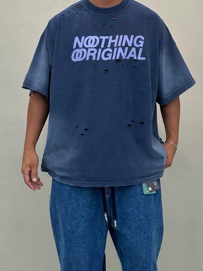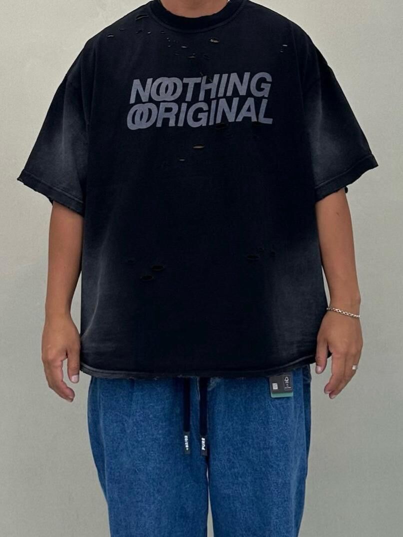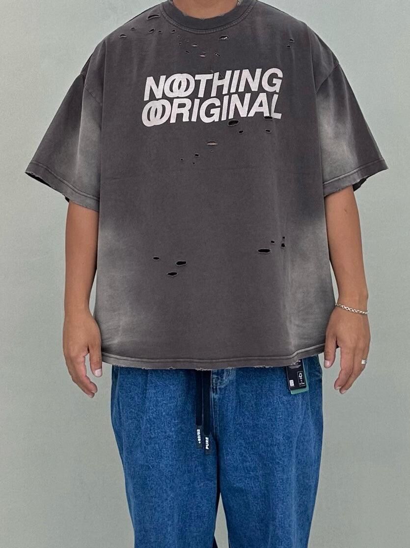 仿污破洞英文字短袖Tee PURE-164T