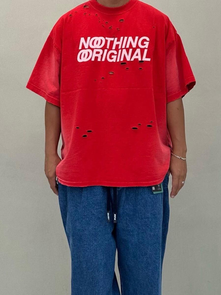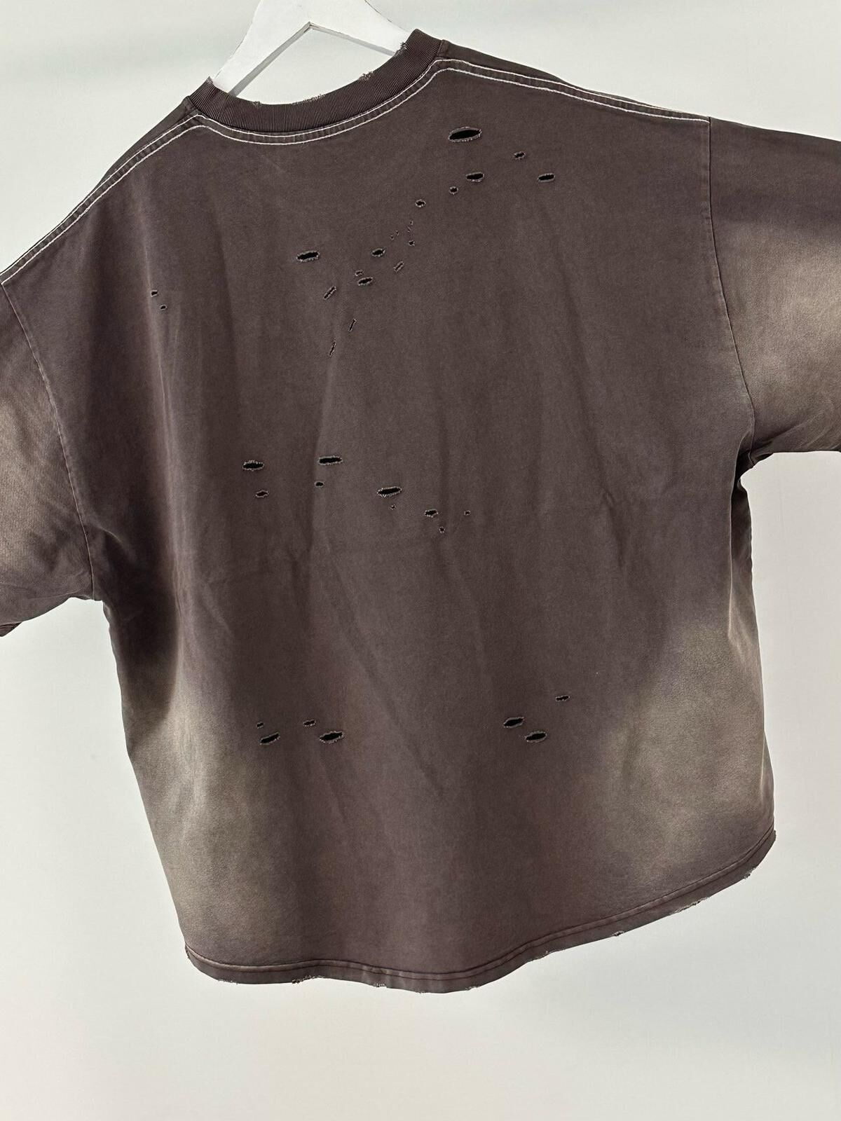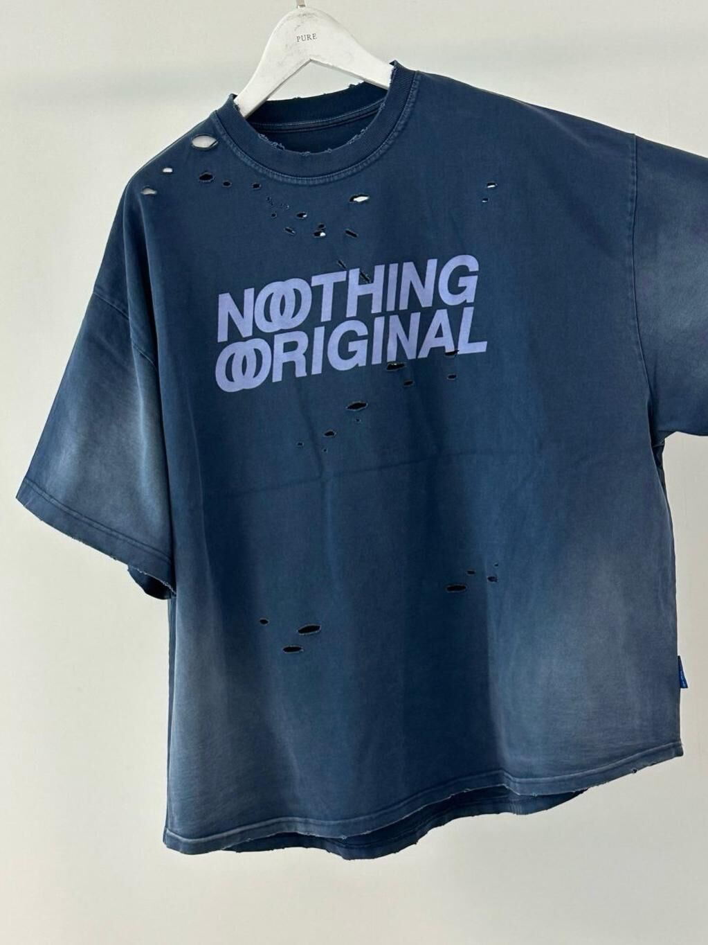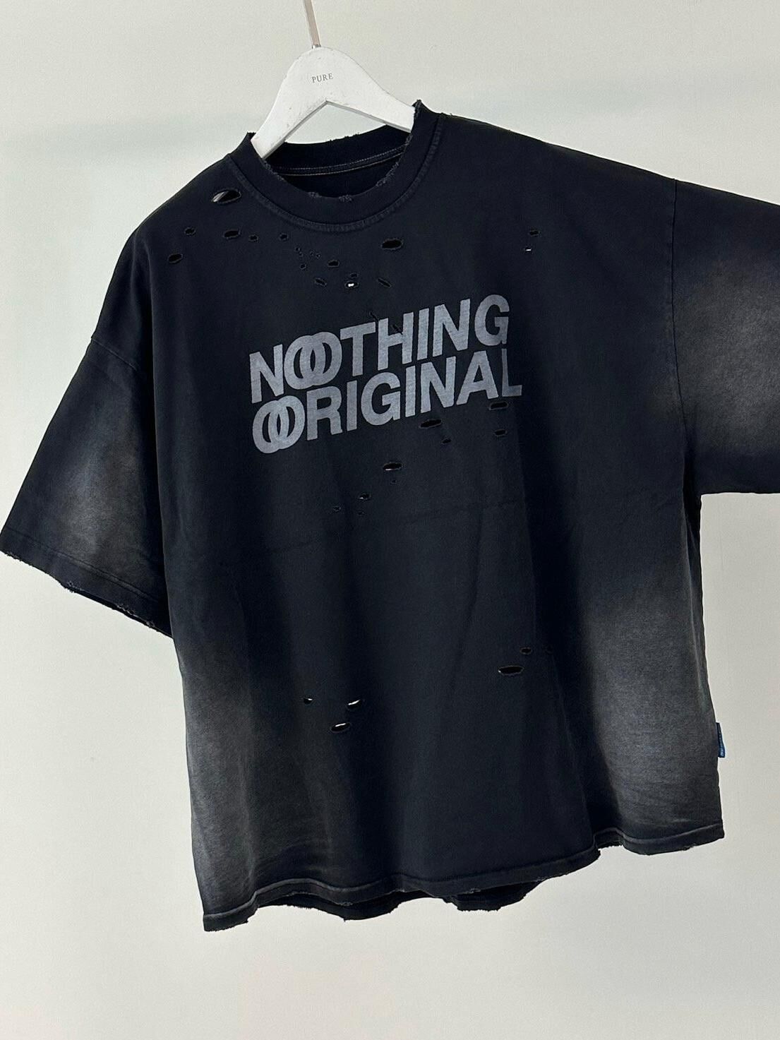 仿污破洞英文字短袖Tee PURE-164T