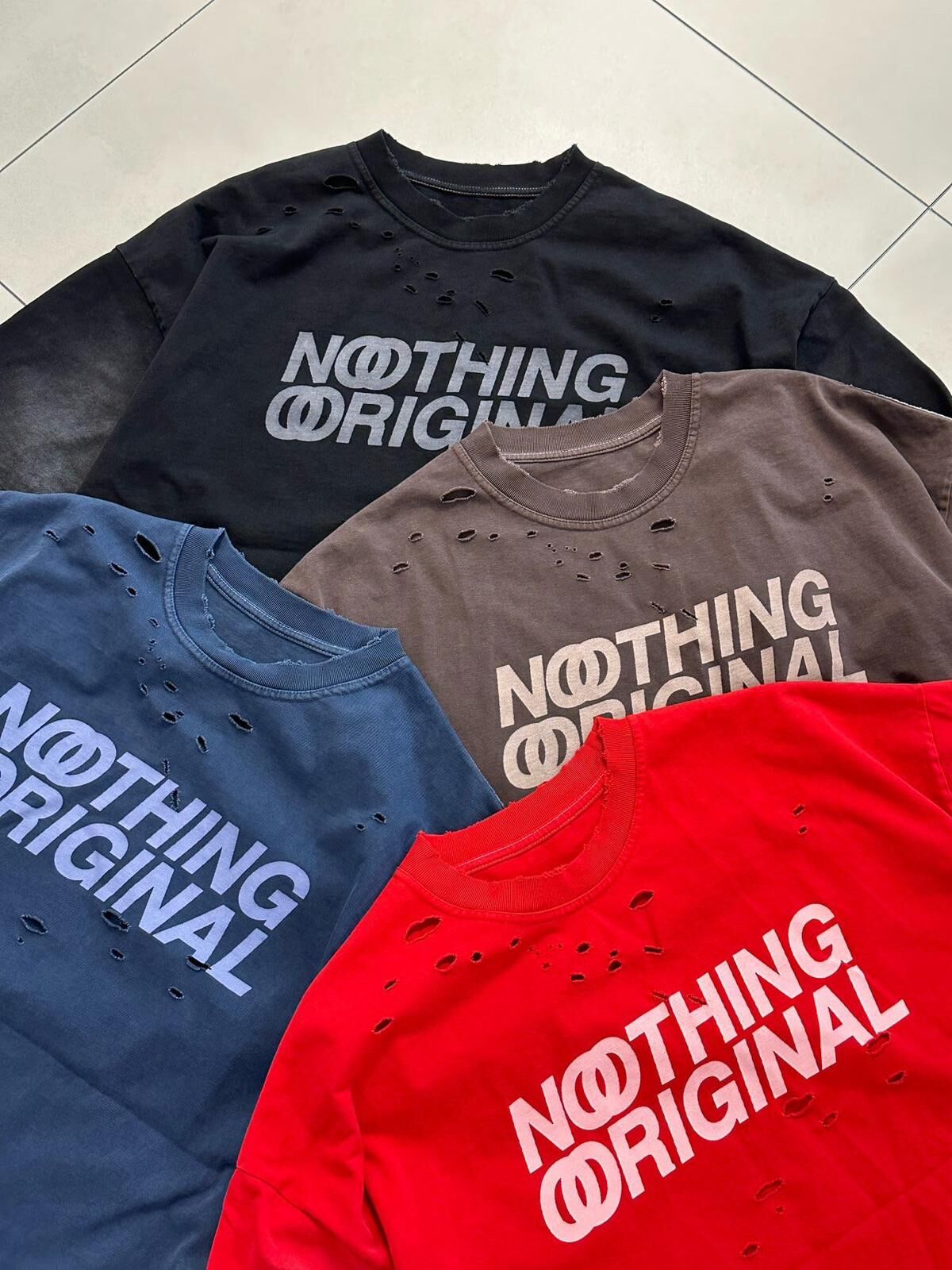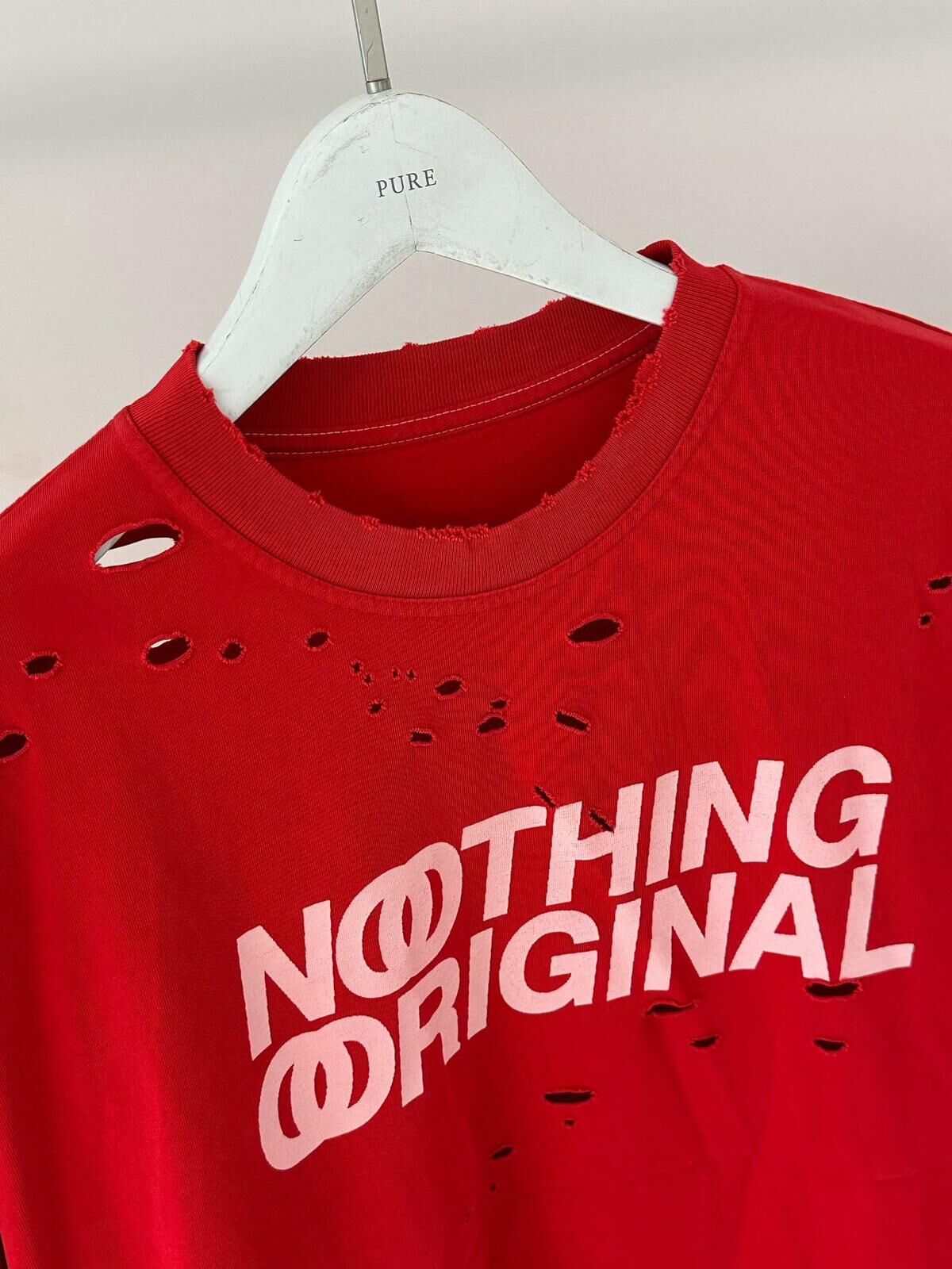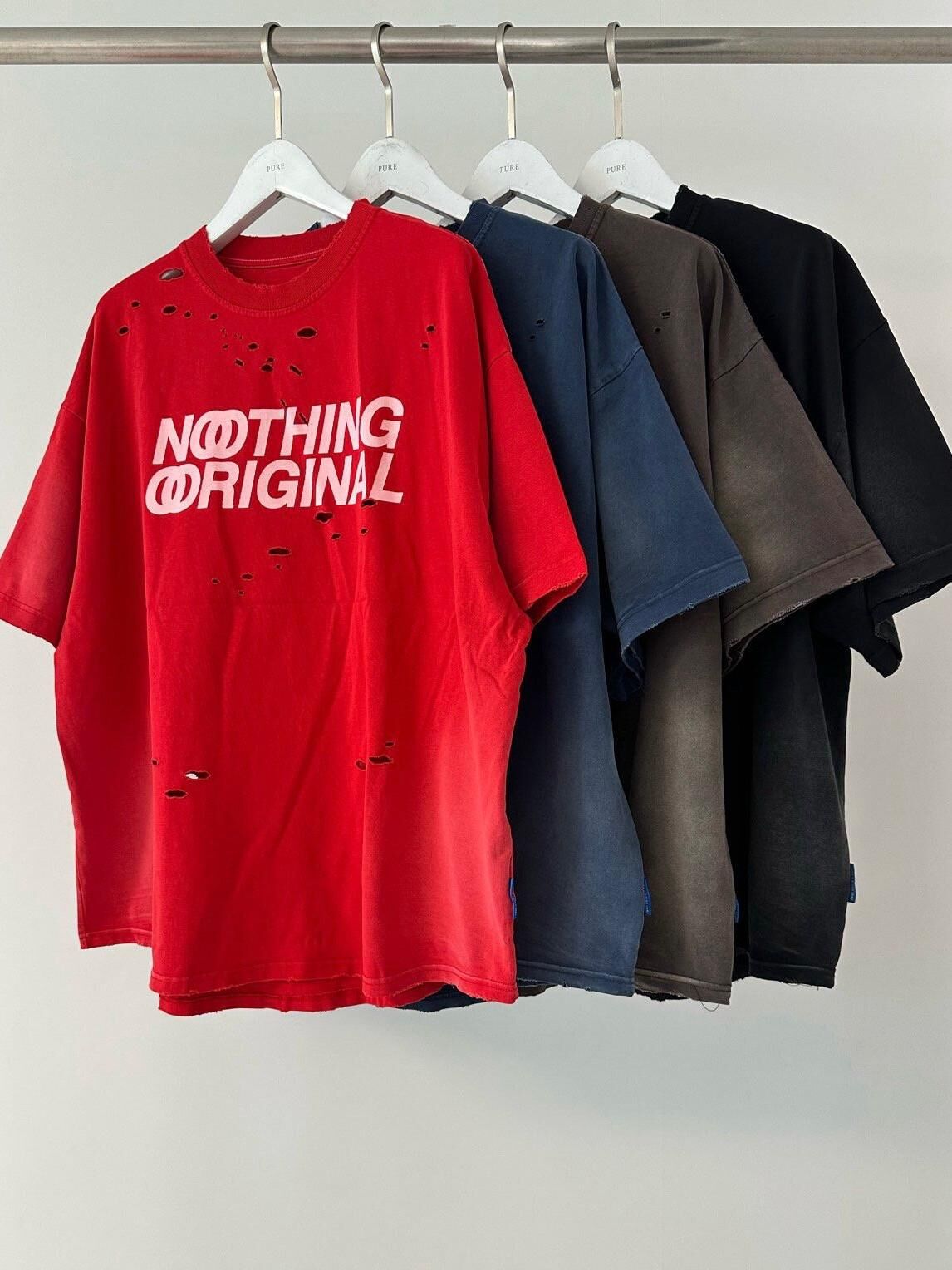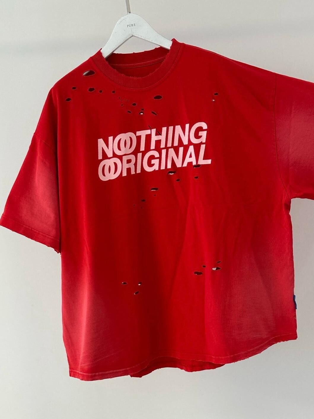 仿污破洞英文字短袖Tee PURE-164T