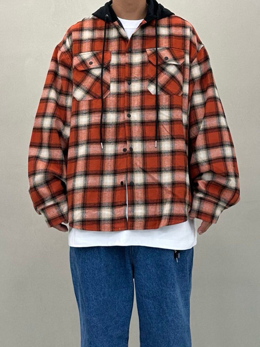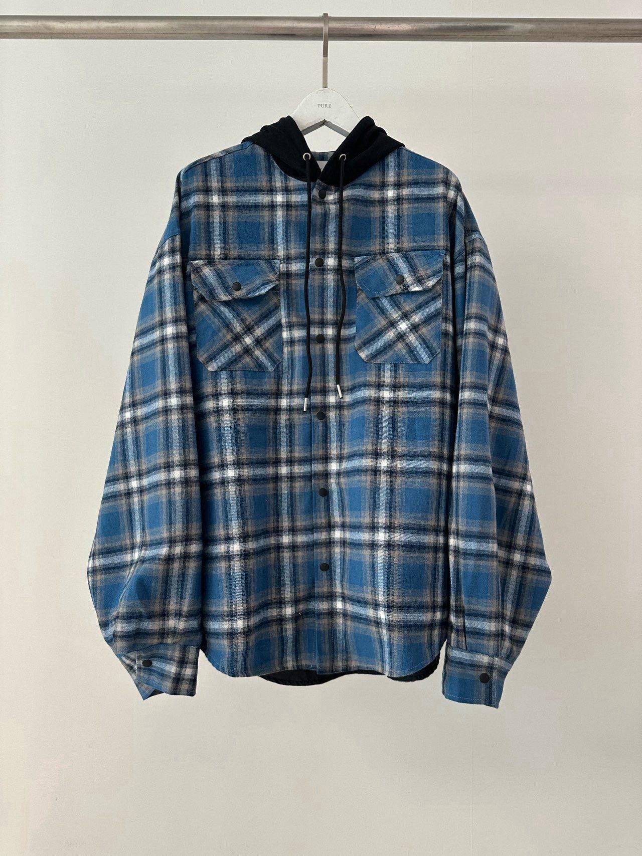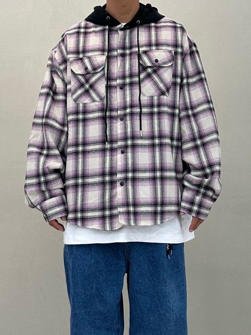 格仔連帽長袖恤衫 PURE-168S