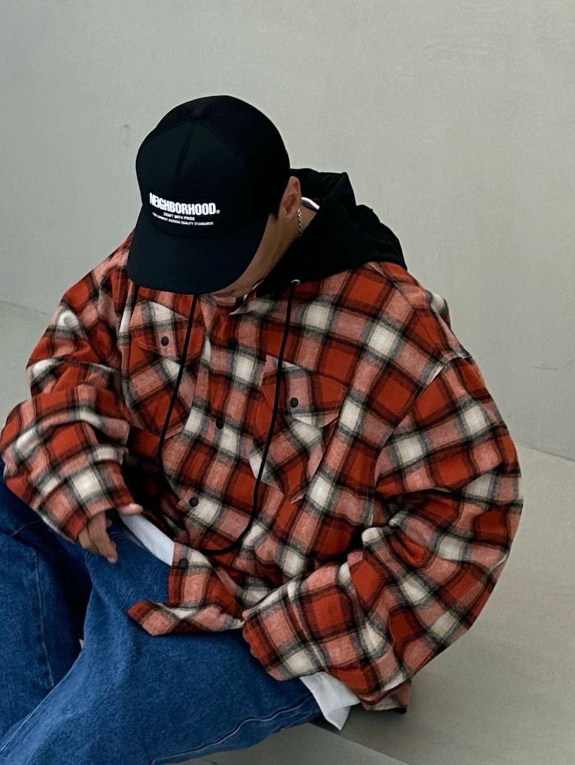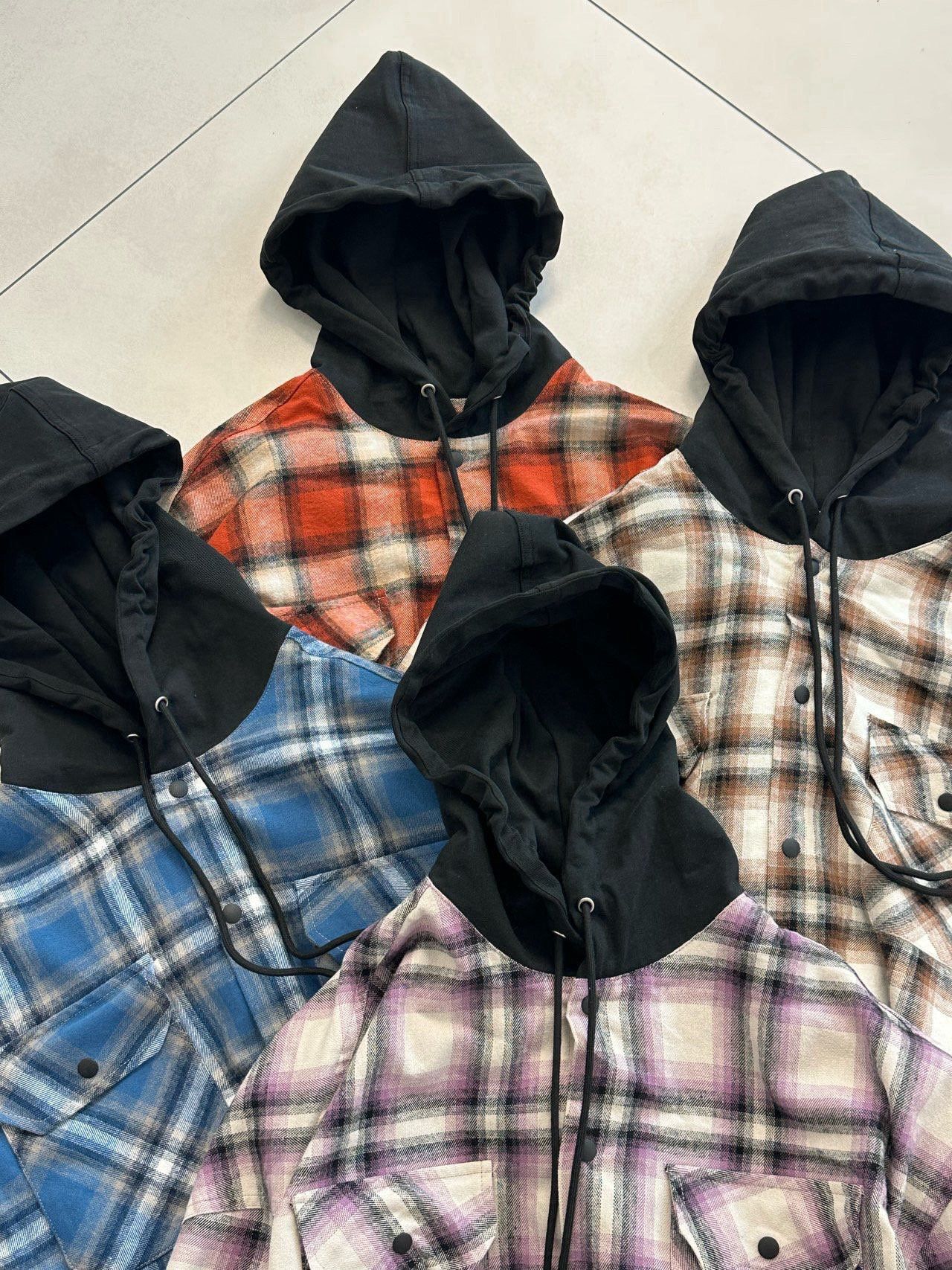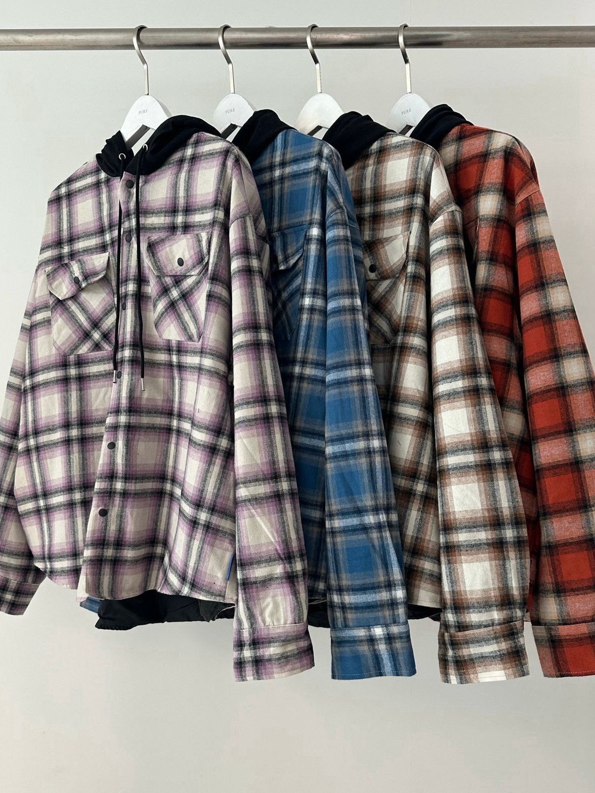 格仔連帽長袖恤衫 PURE-168S