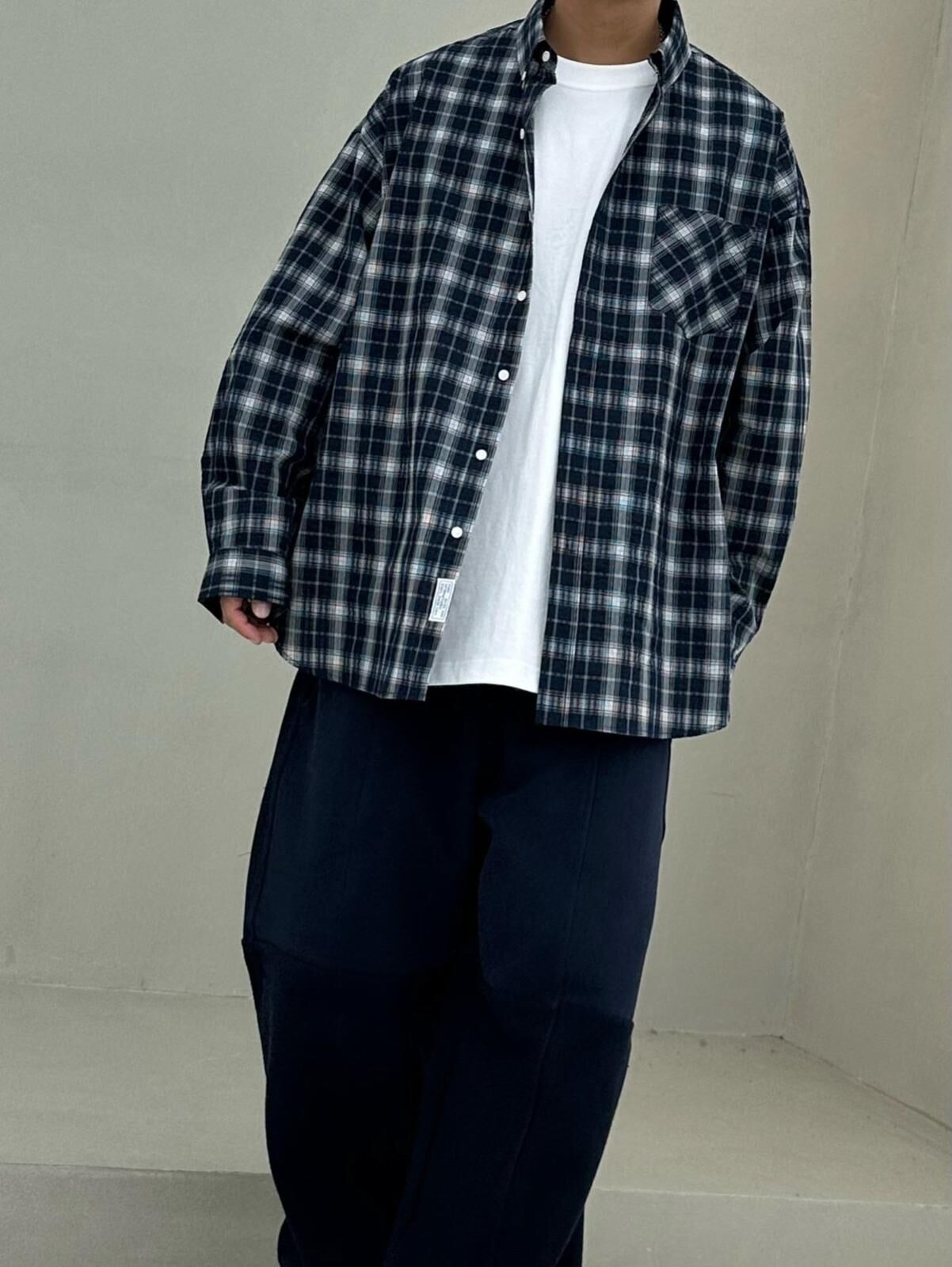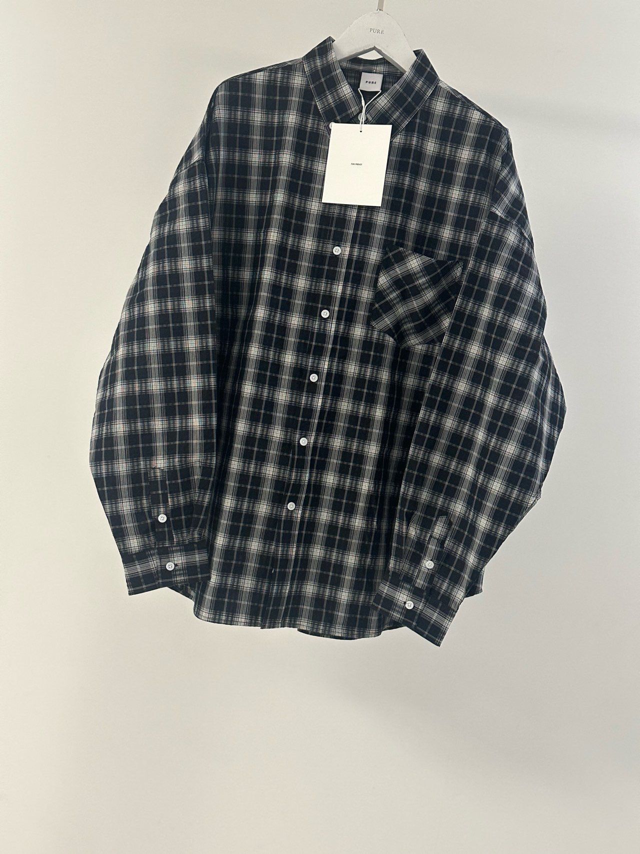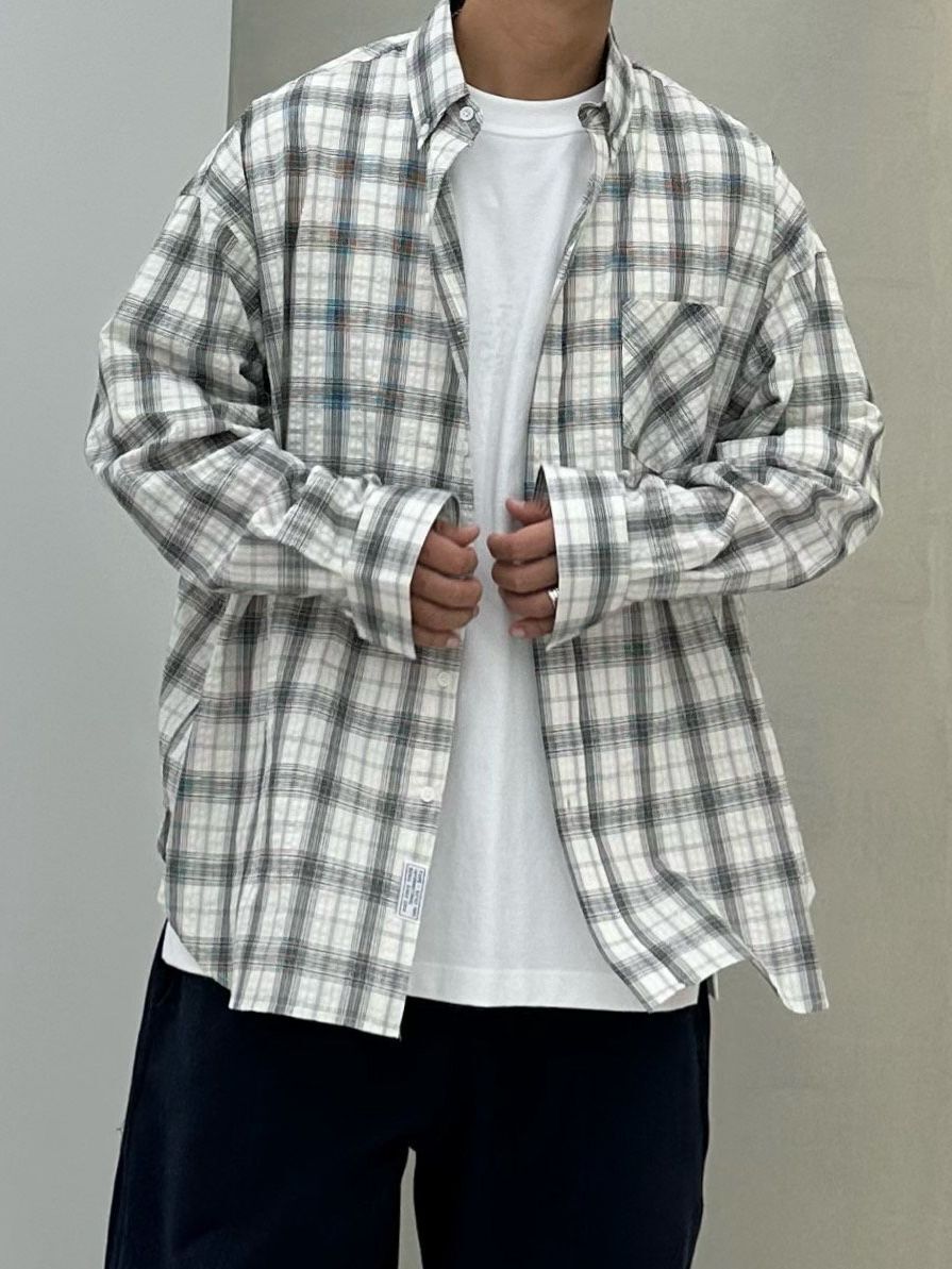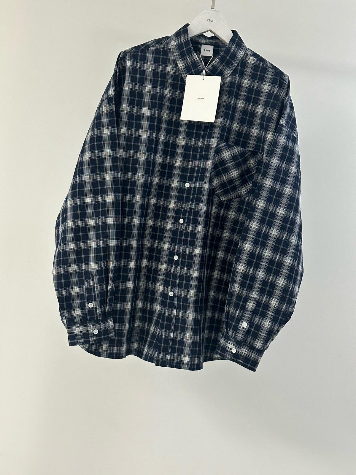 OverSize格仔長袖恤衫 PURE-181S