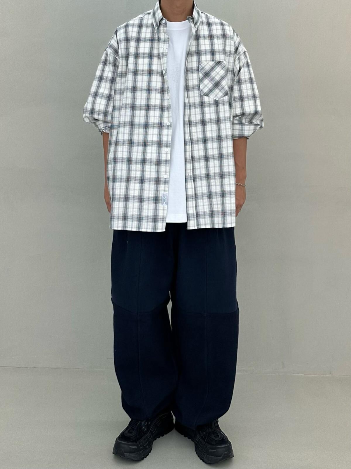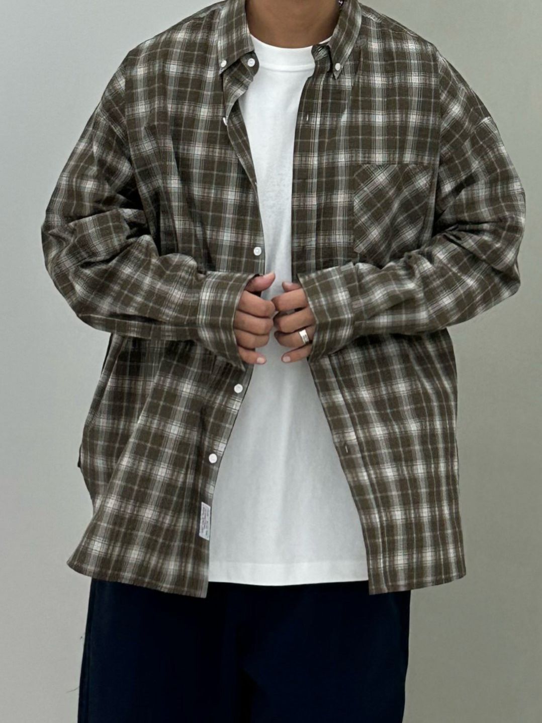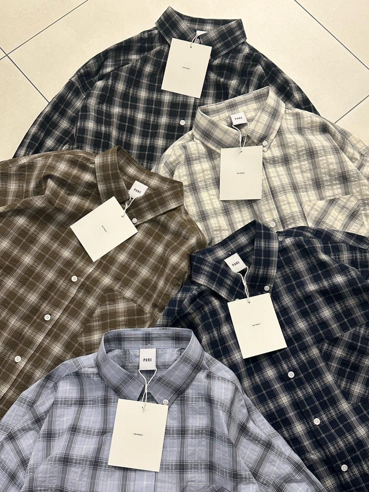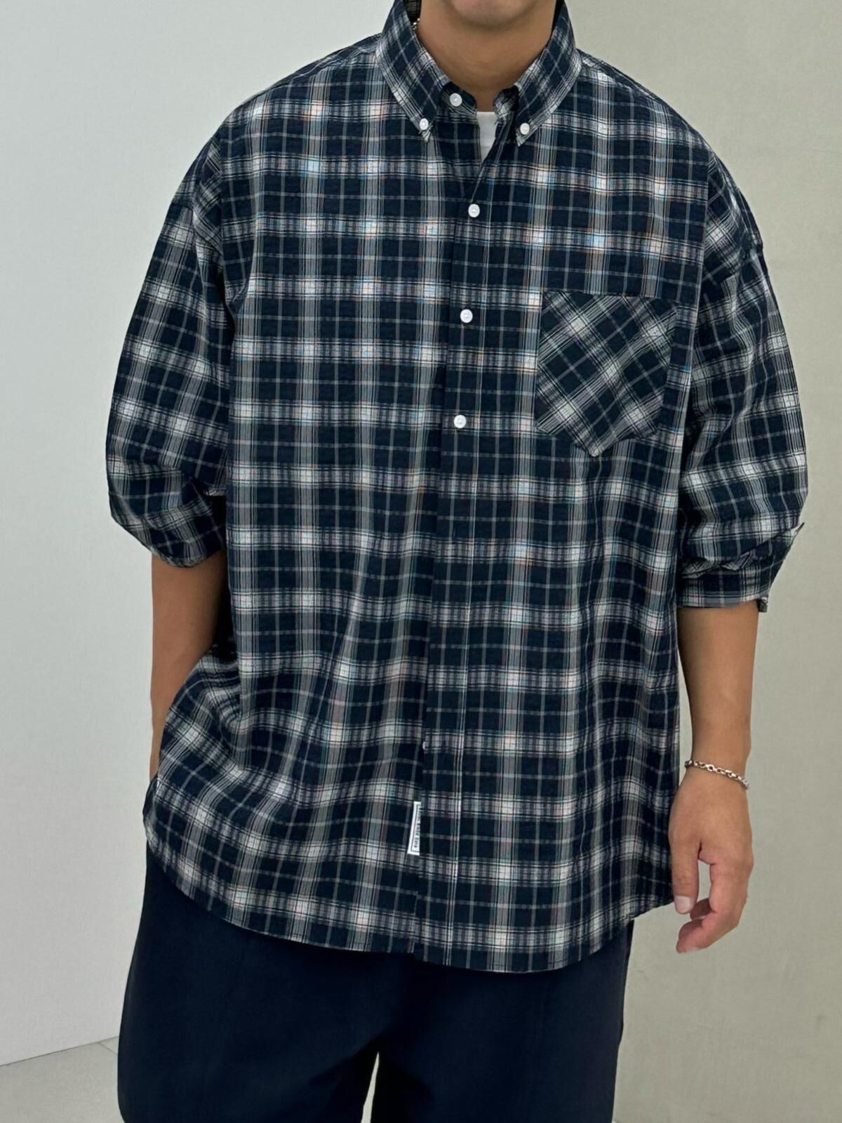 OverSize格仔長袖恤衫 PURE-181S