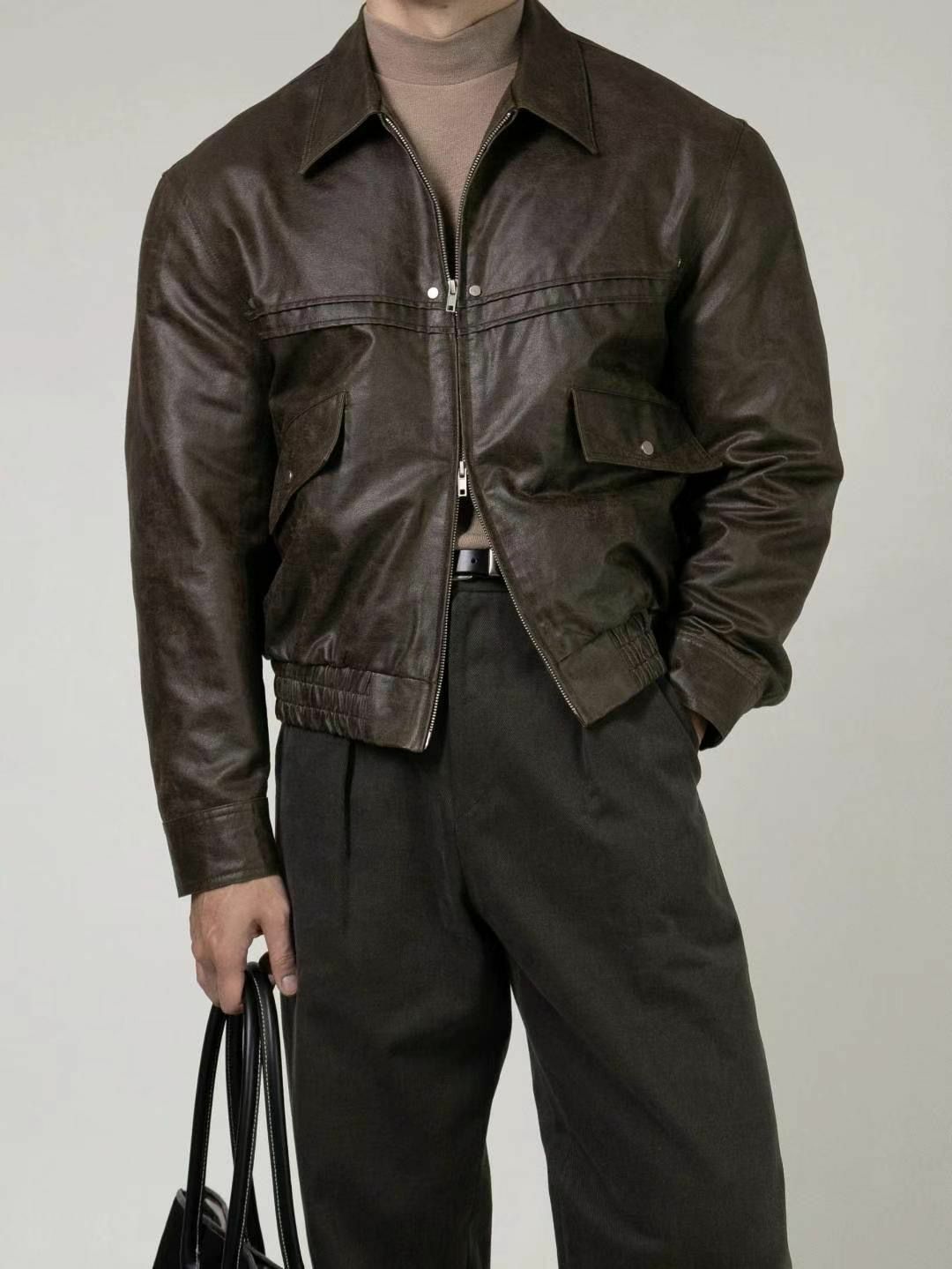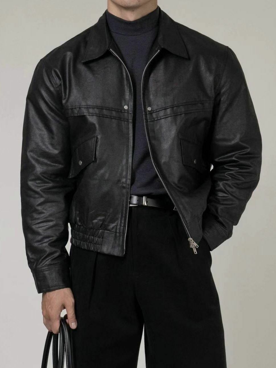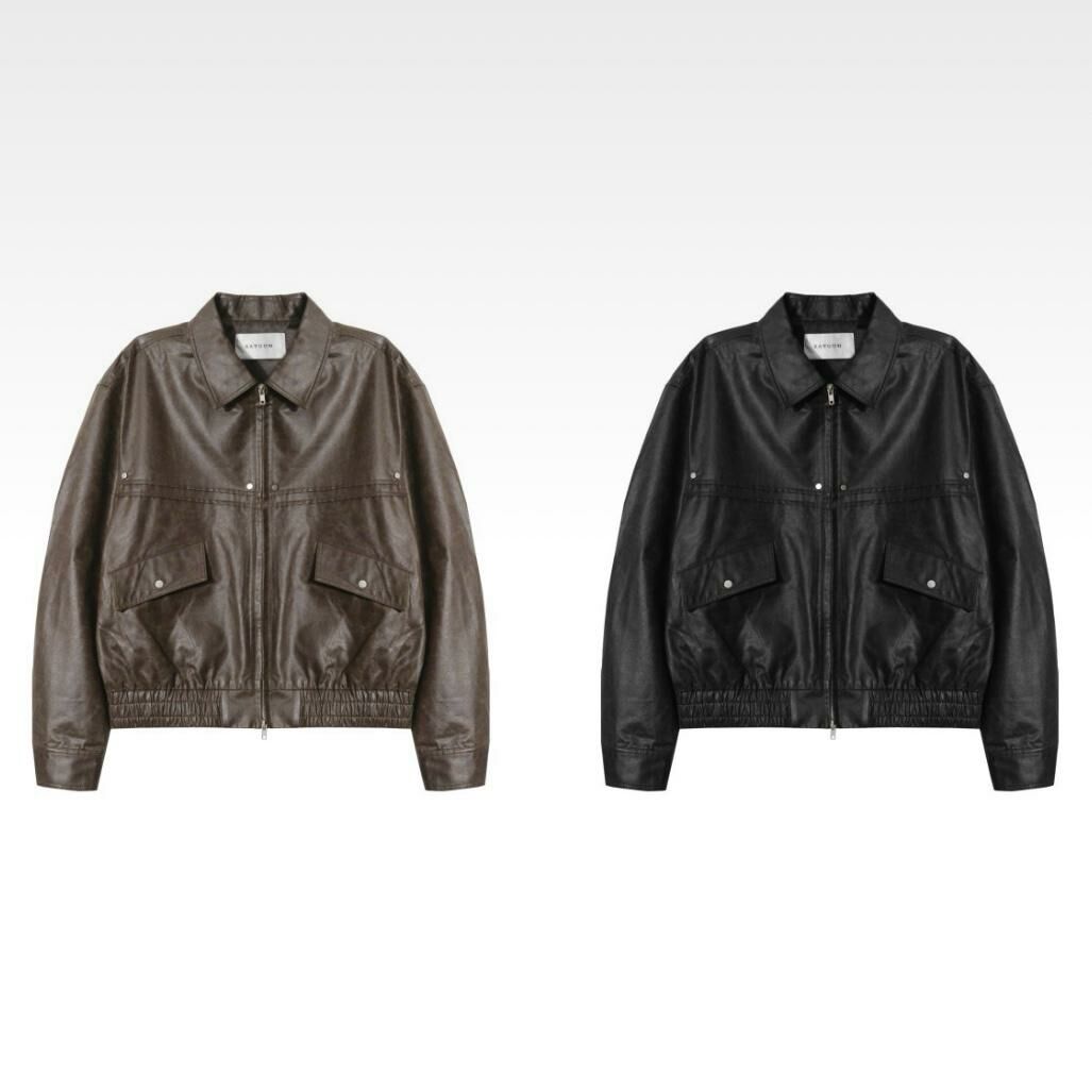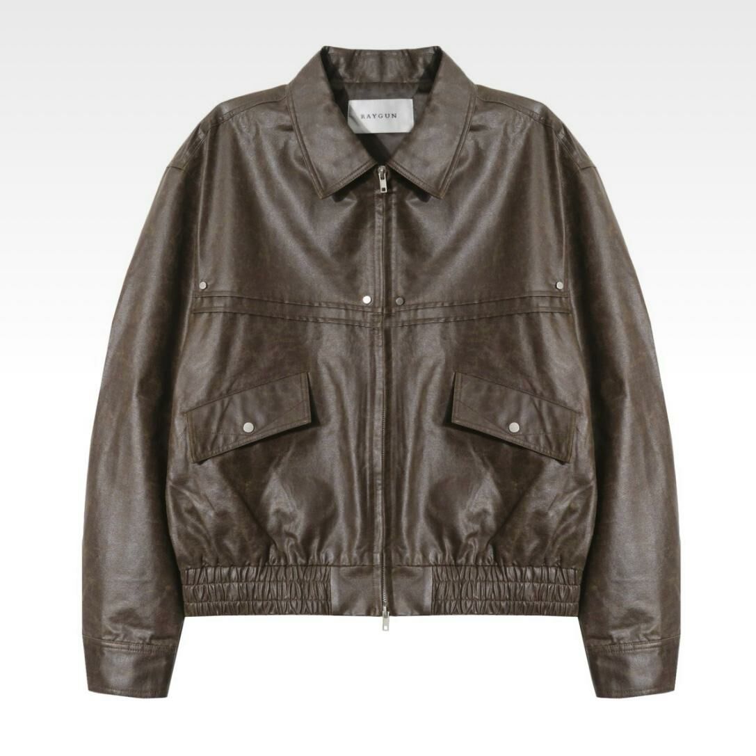 反領拉鍊合成皮褸 RAYGUN-011JK