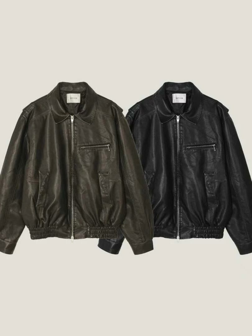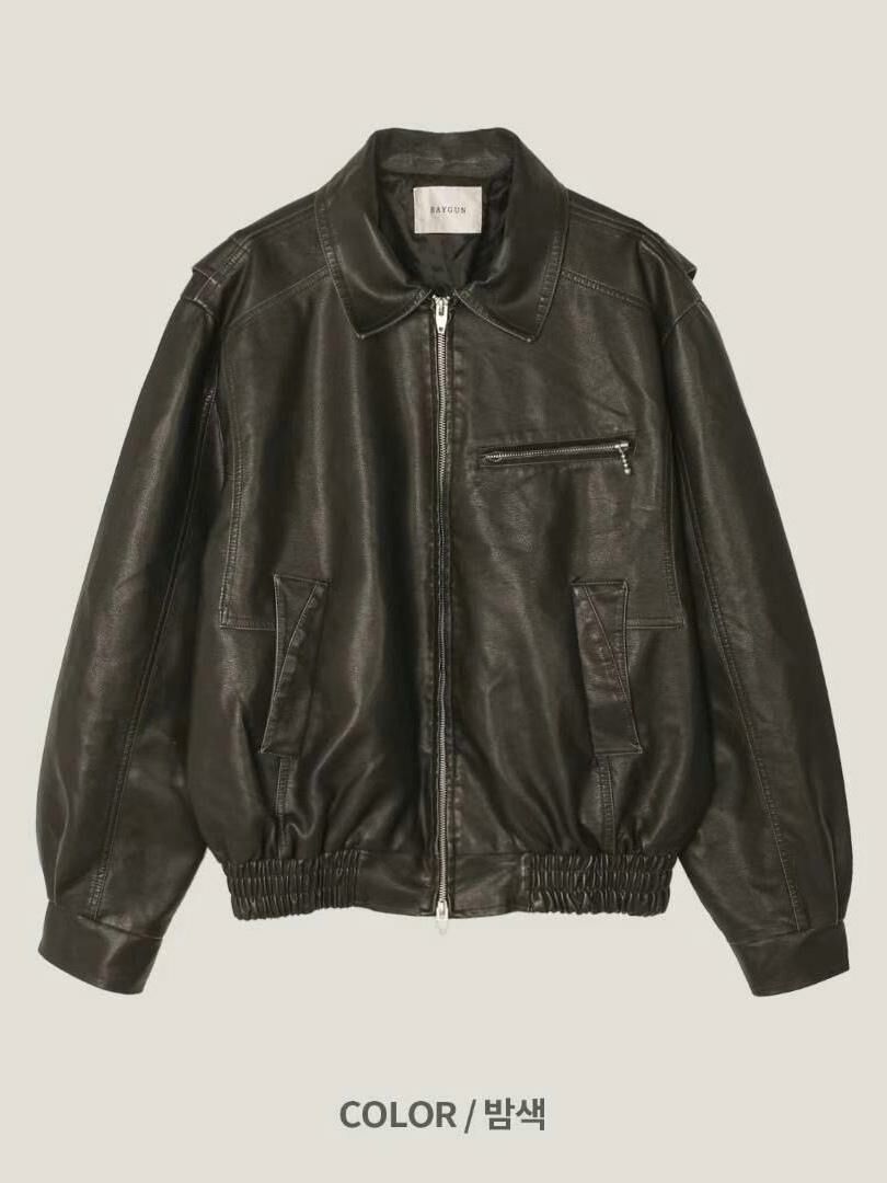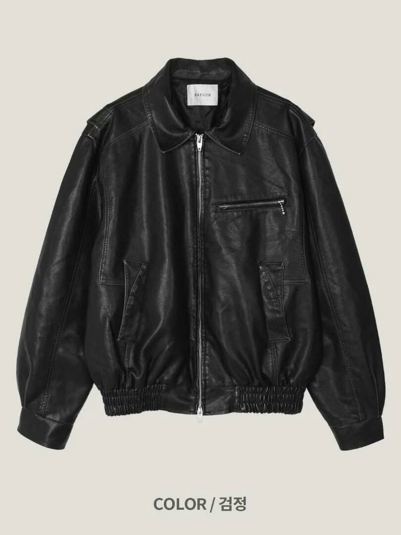 反領拉鍊合成皮褸 RAYGUN-015JK