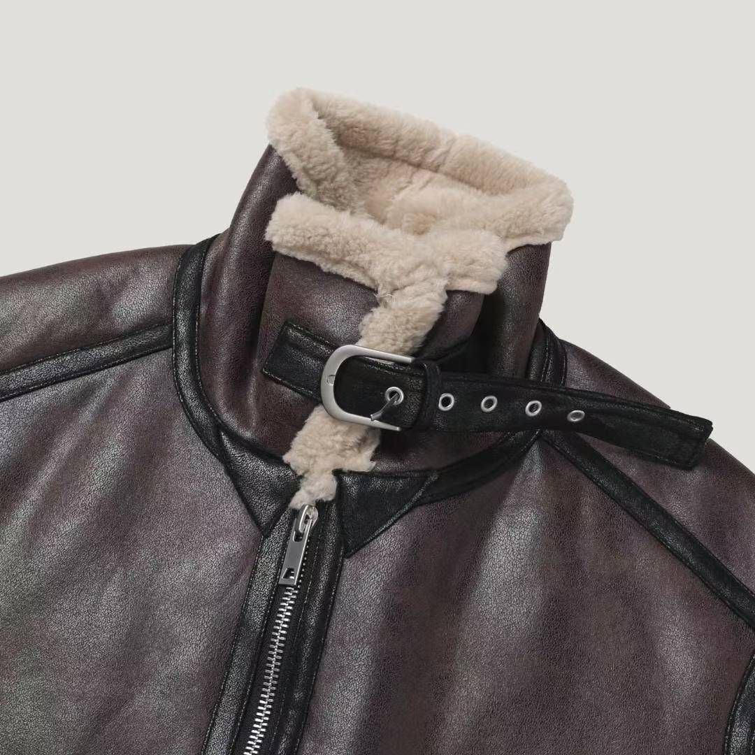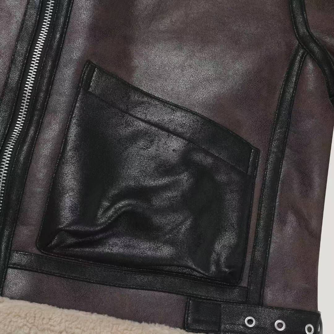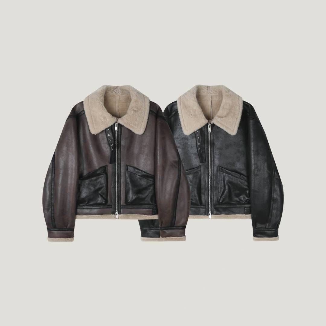 毛毛領拉鍊合成皮褸(絨毛底) RAYGUN-026JK
