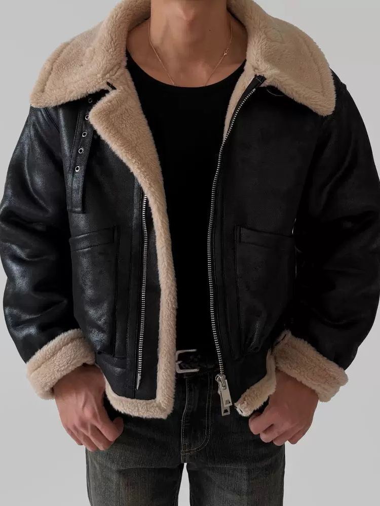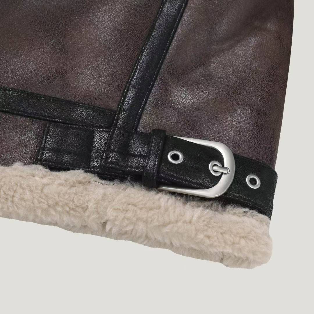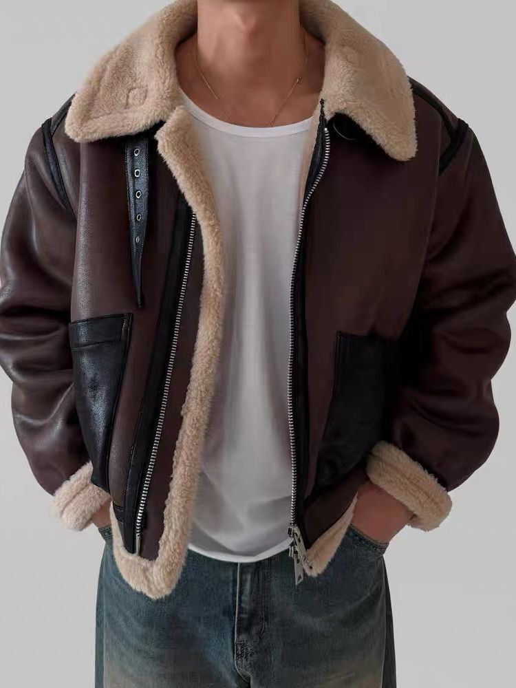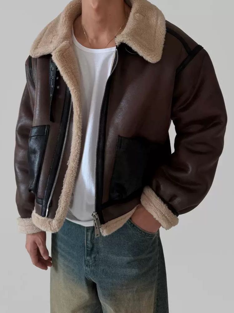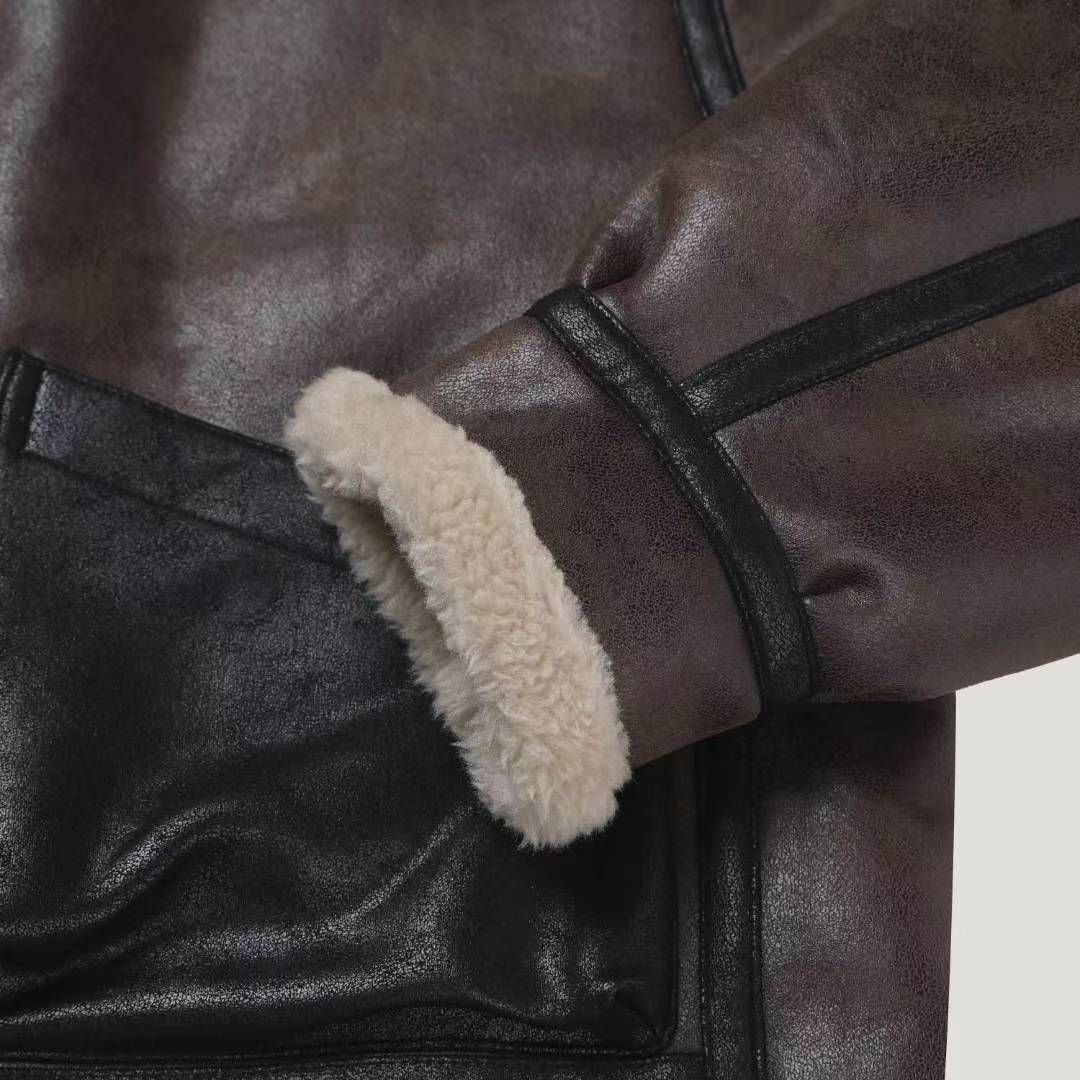 毛毛領拉鍊合成皮褸(絨毛底) RAYGUN-026JK