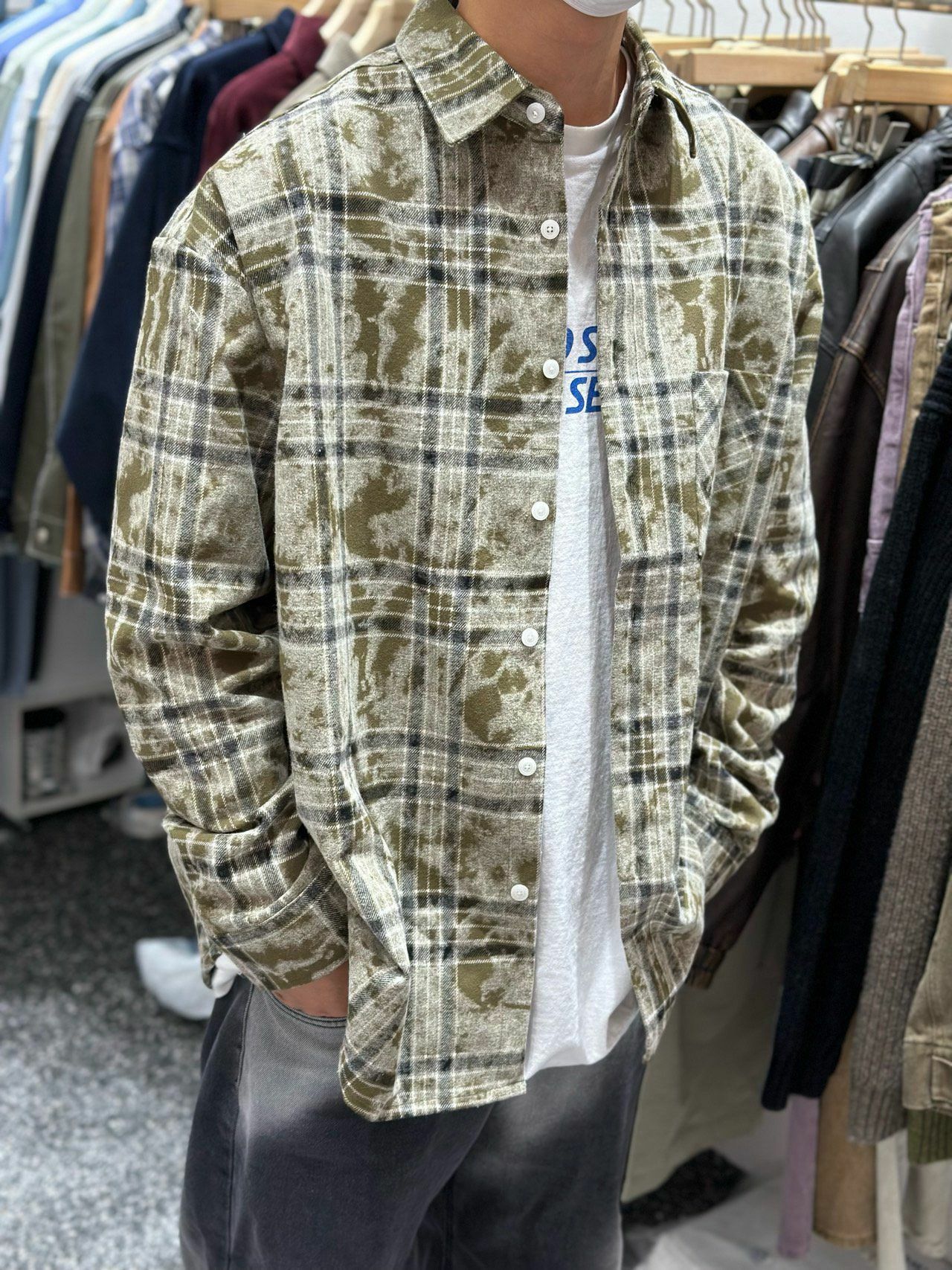 格仔長袖恤衫 RECOVER-014S