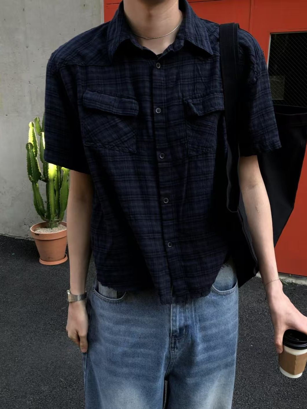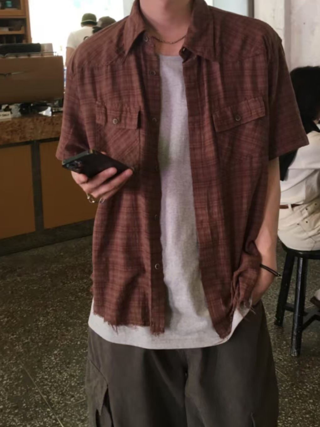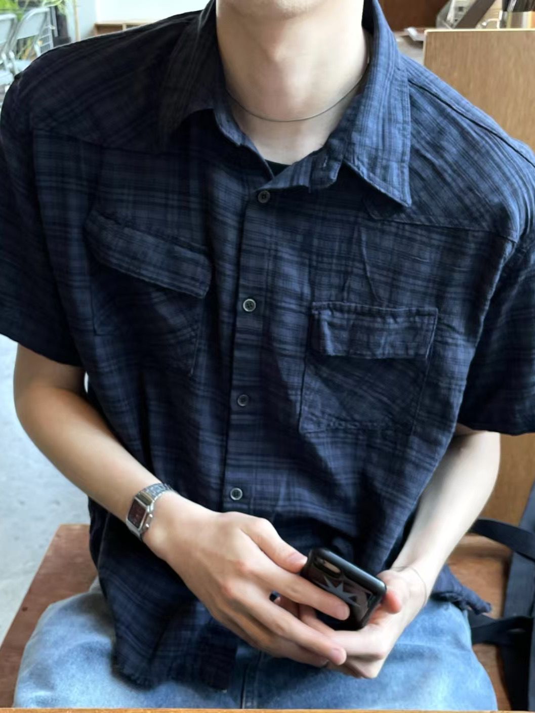格紋短袖恤衫 REMAIN-009S