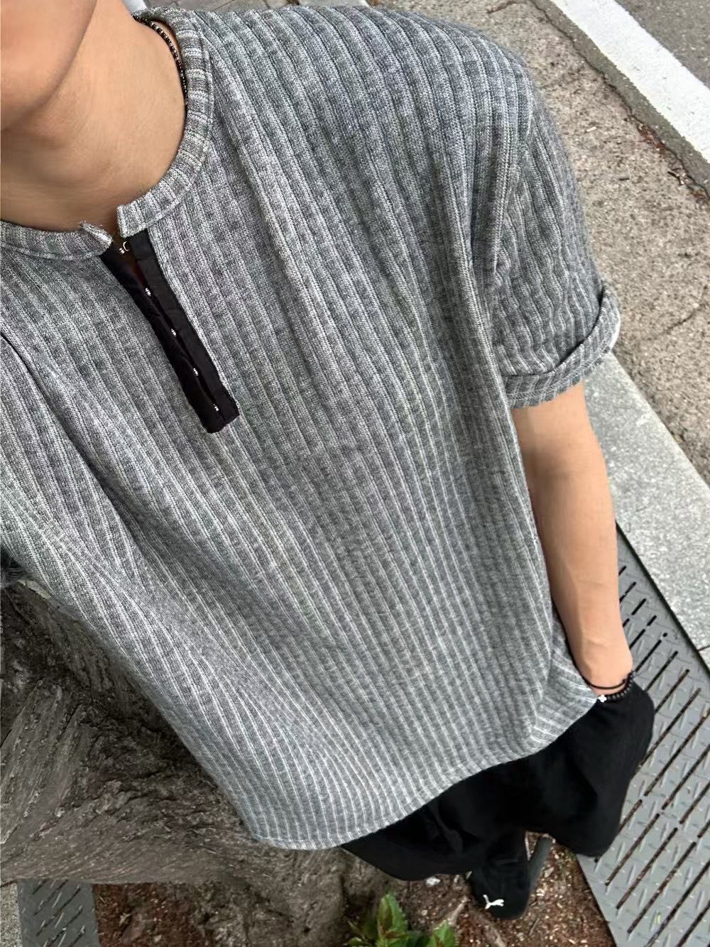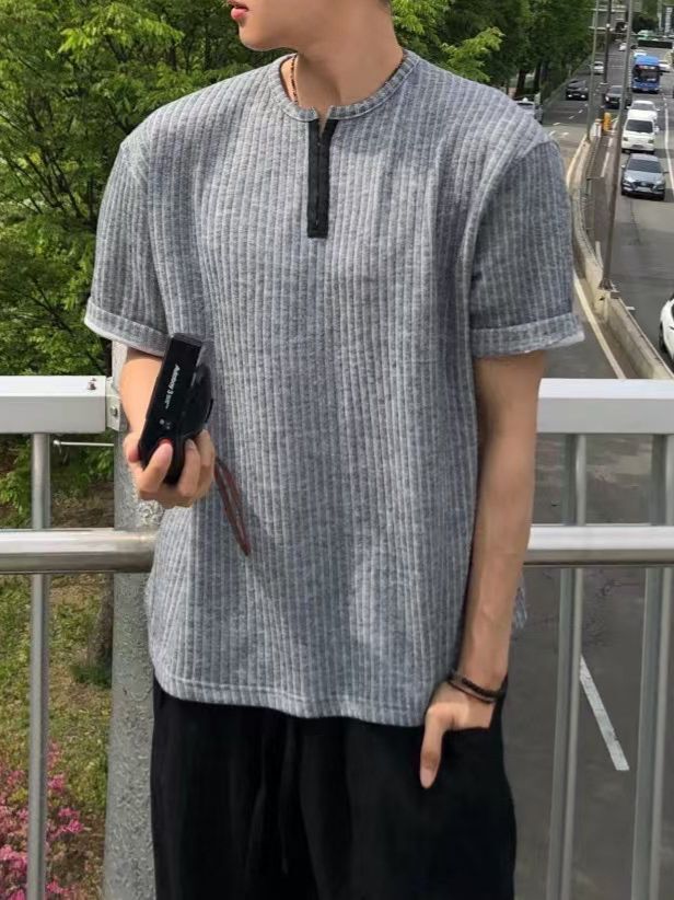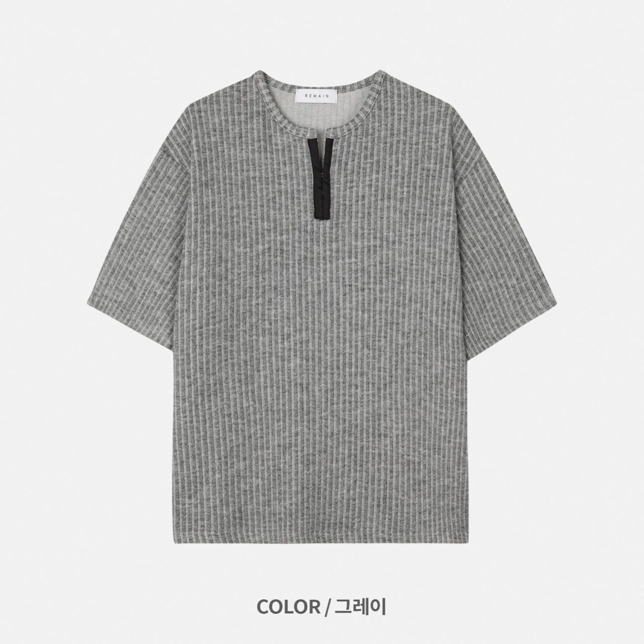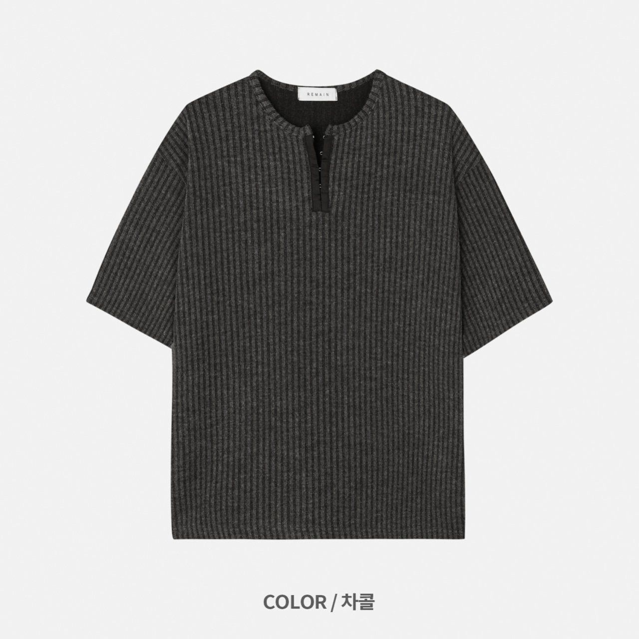 淨色暗直紋半開胸短袖Tee REMAIN-010T