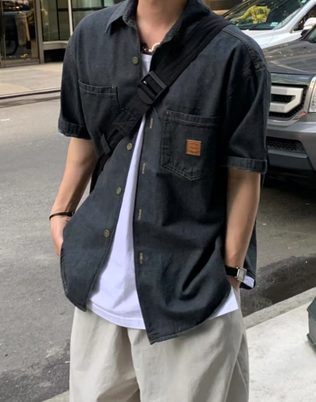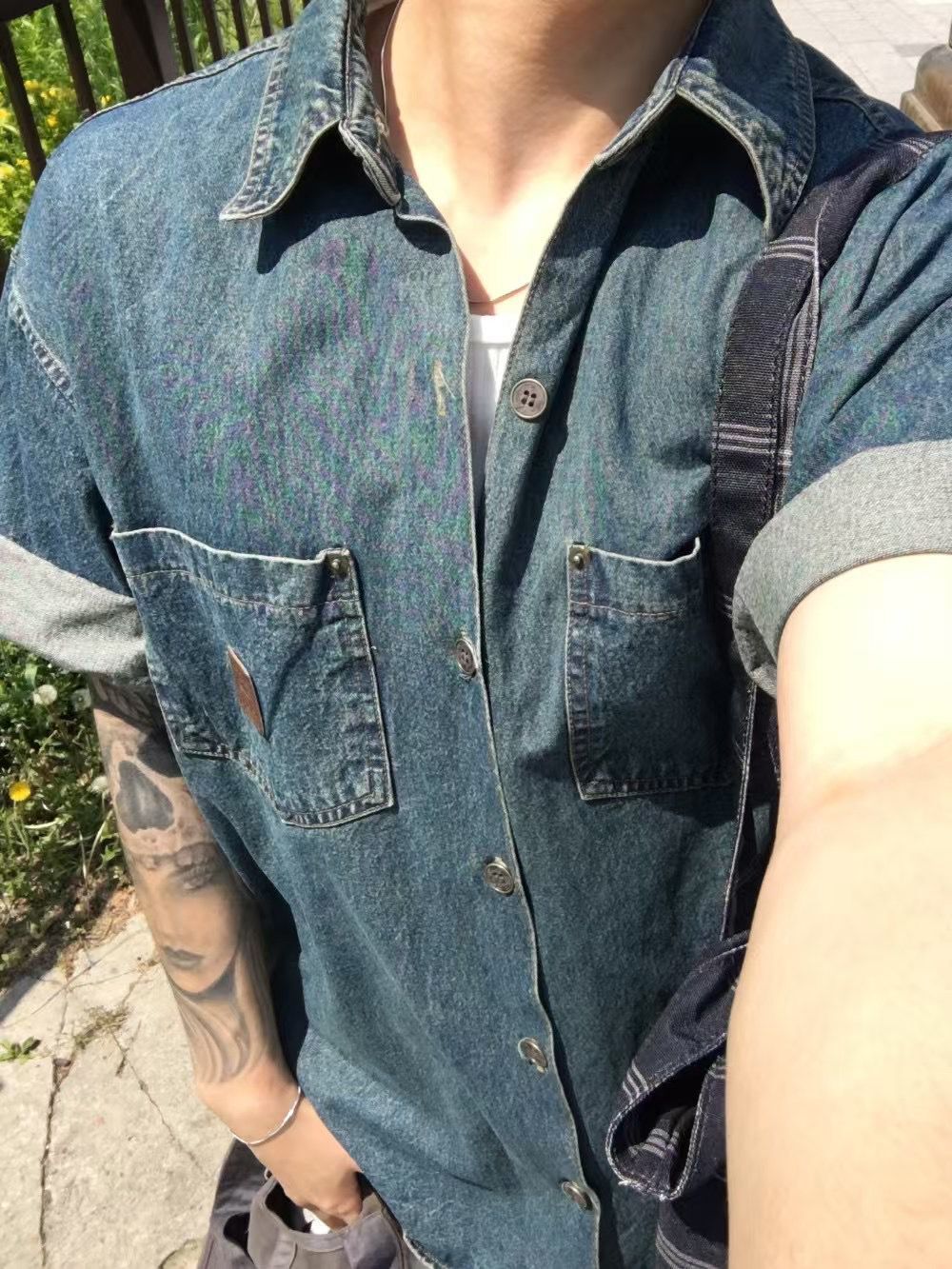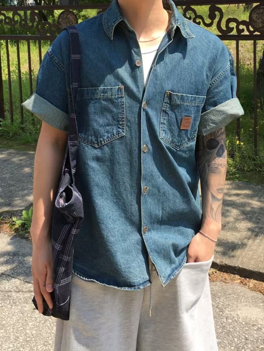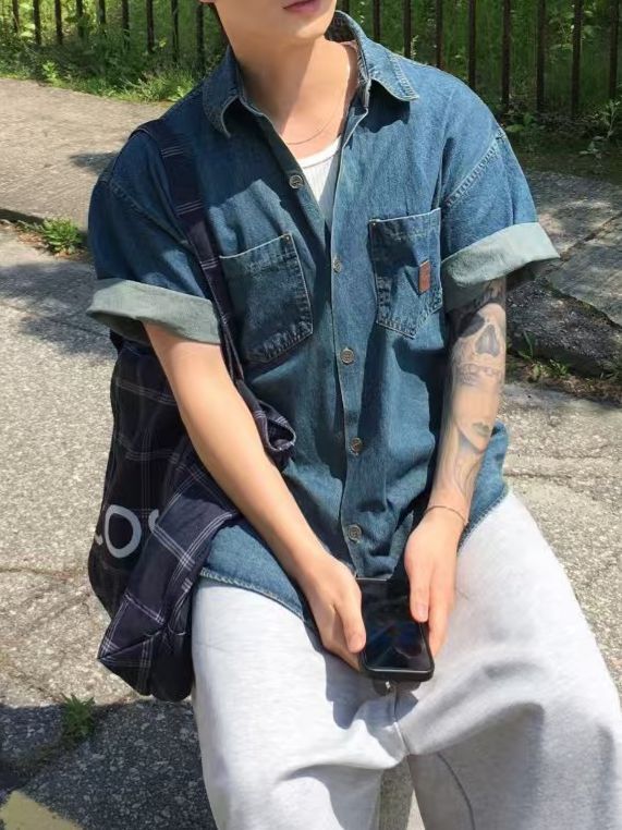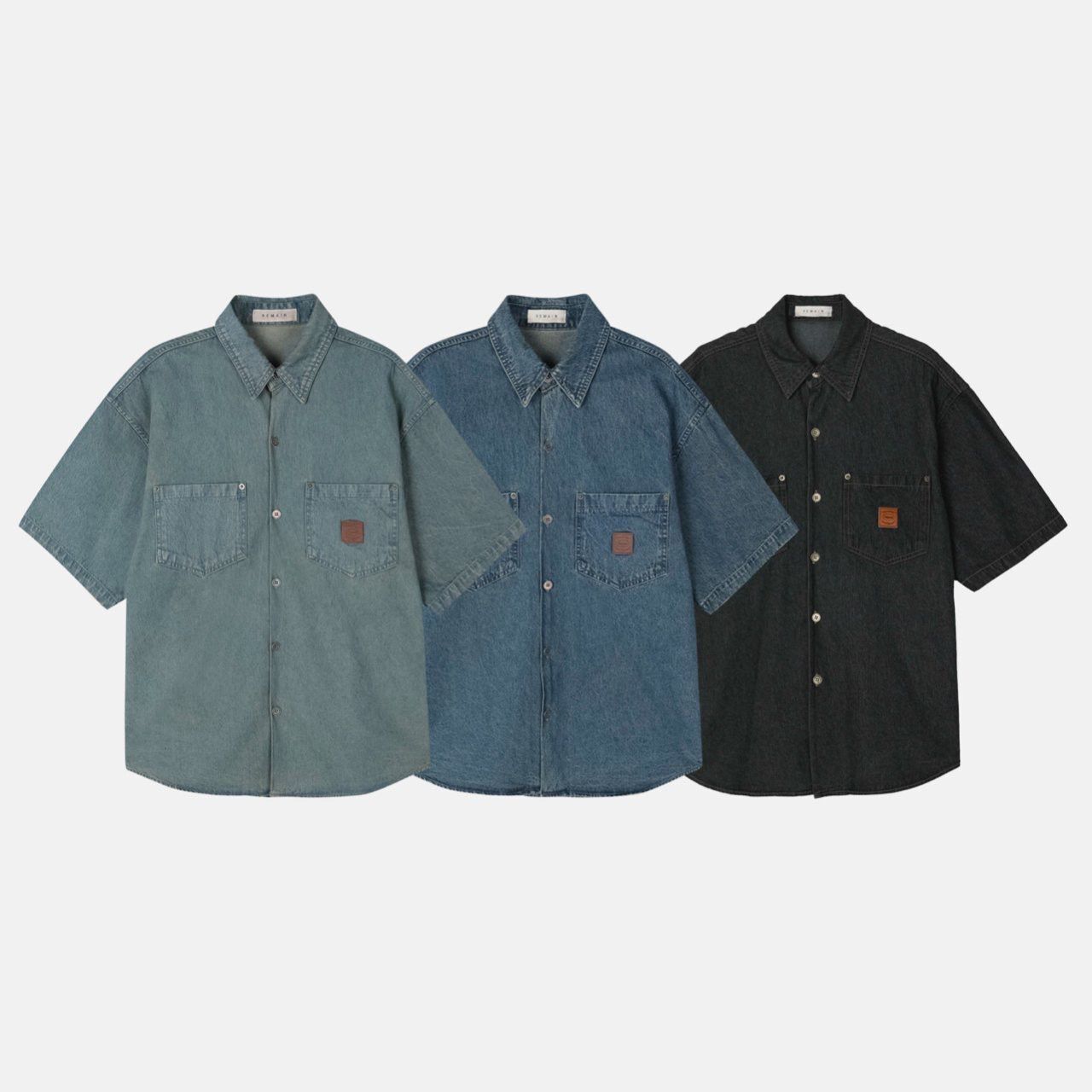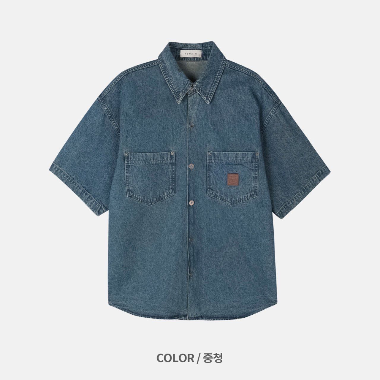 洗水牛仔短袖恤衫 REMAIN-013S