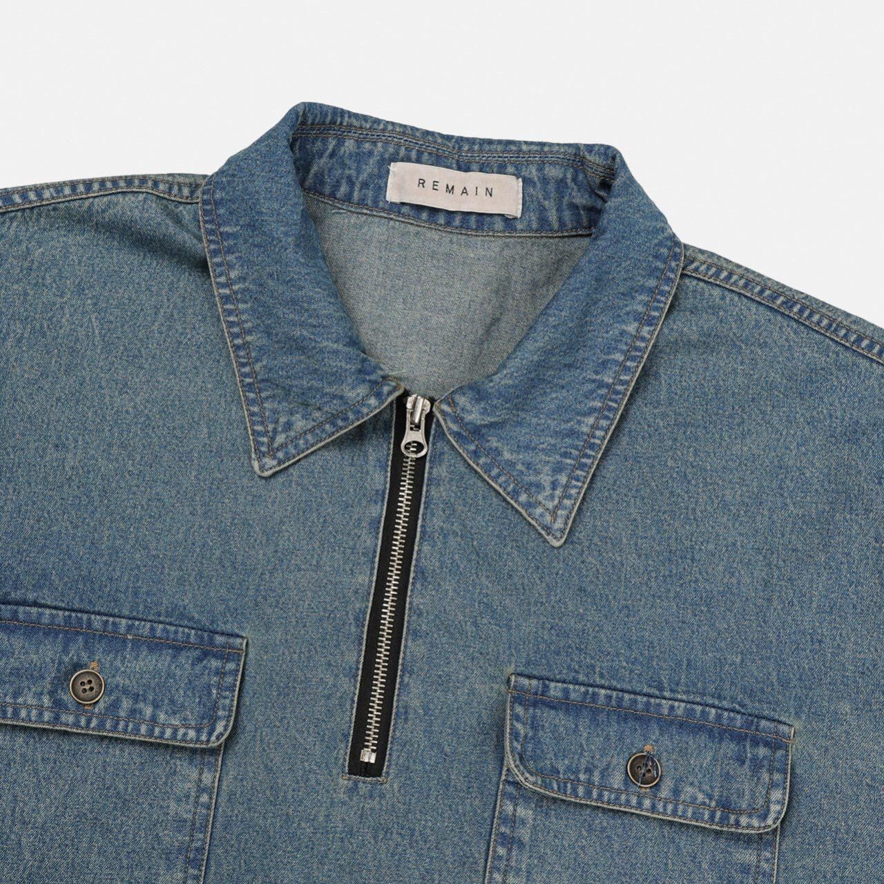 洗水牛仔半拉鍊短袖Tee REMAIN-018T